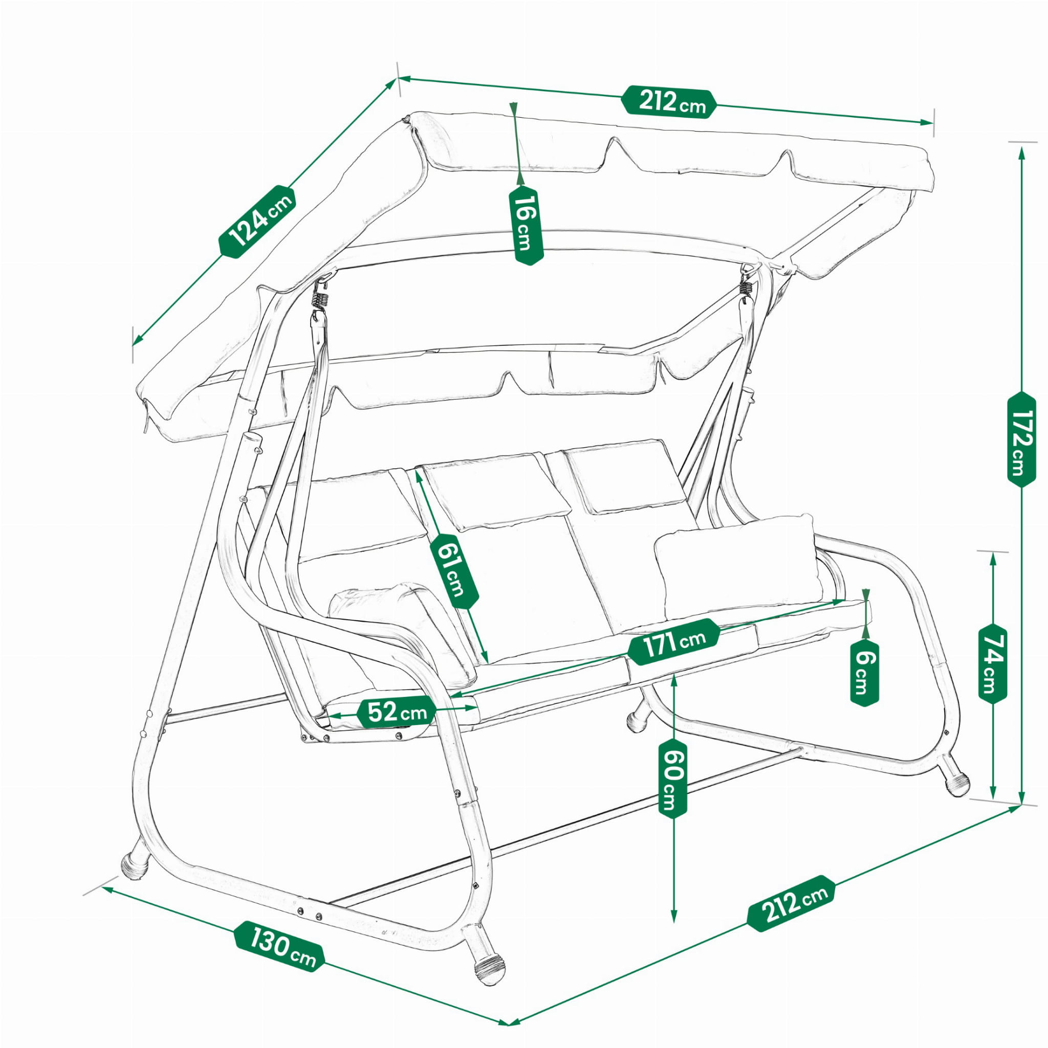 Trzyosobowa konstrukcja – przestronna huśtawka z wygodnym miejscem dla 3 dorosłych osób.