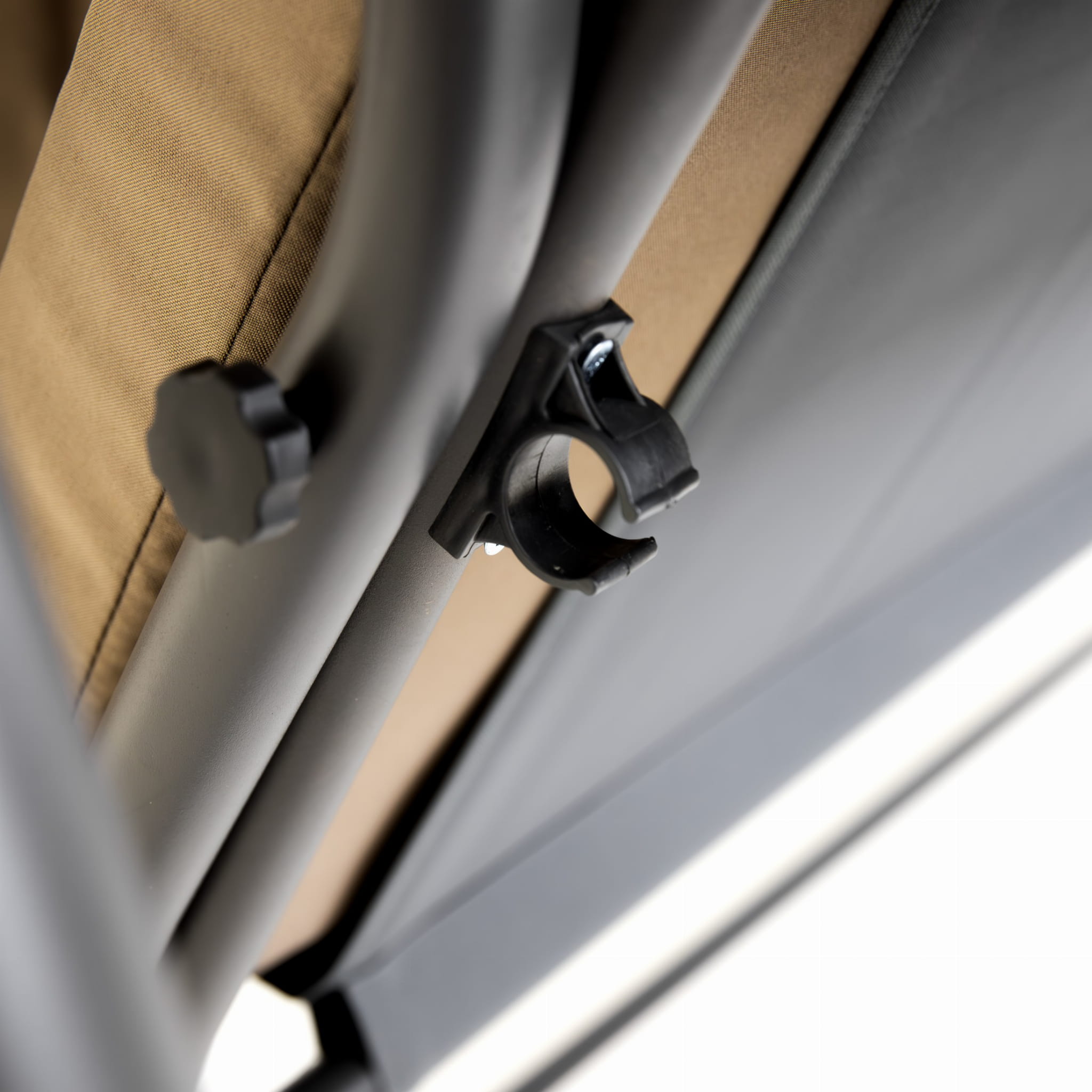 Wyposażona w moskitierę na zamek i regulowany daszek, zapewnia komfortowe warunki wypoczynku w cieniu i bez owadów.