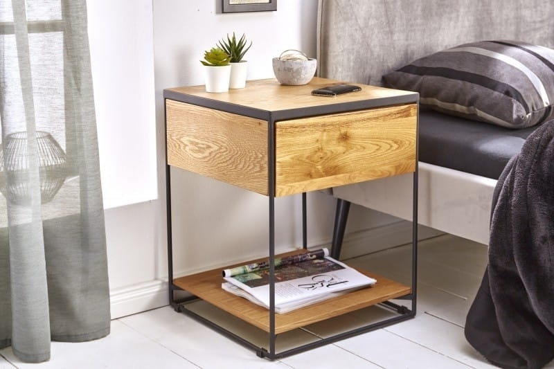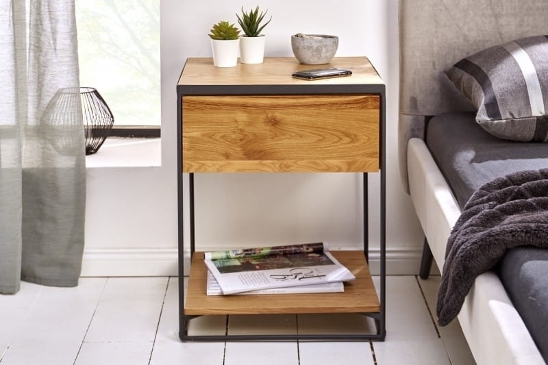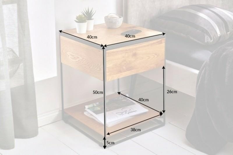 INVICTA stolik nocny SCORPION 40 cm dąb - lite drewno, metal