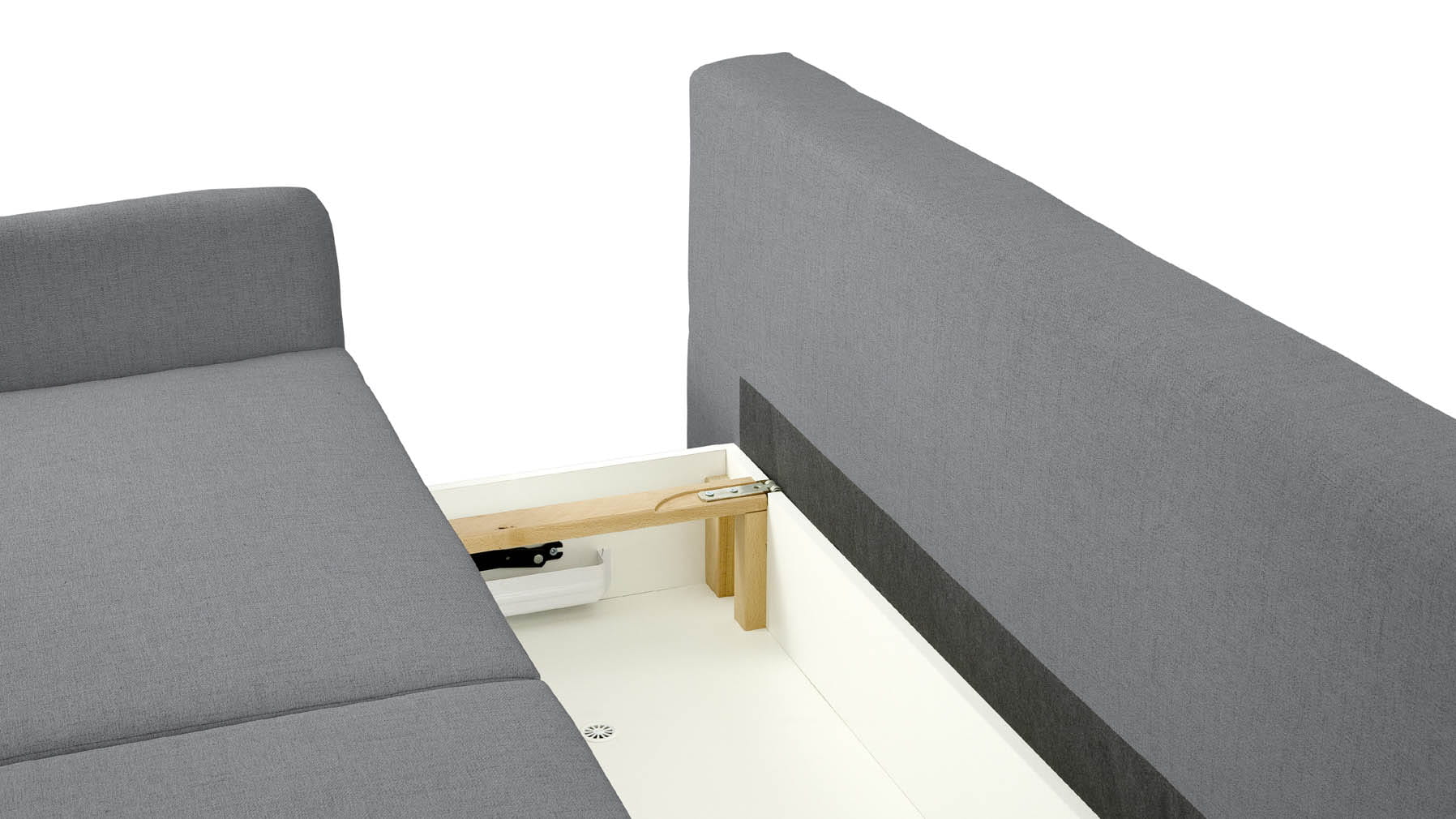 Dzięki pojemnikowi na pościel, kanapa oferuje wygodne miejsce do przechowywania, a solidna konstrukcja z ładownością do 120 kg na osobę zapewnia trwałość i stabilność, która sprosta codziennemu użytkowaniu.