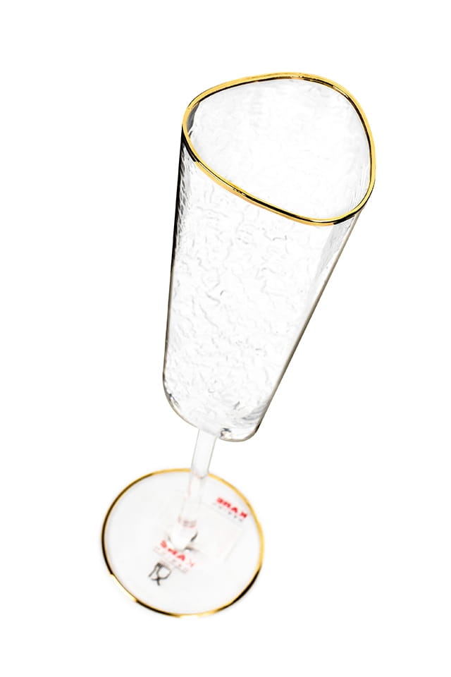 Kieliszek do szampana HOMMAGE od marki KARE Design to wyjątkowa propozycja dla miłośników stylu i wyrafinowanej formy. Wykonany ręcznie z transparentnego szkła, zachwyca subtelnym połyskiem i złotymi akcentami, które podkreślają jego ekskluzywny charakter.