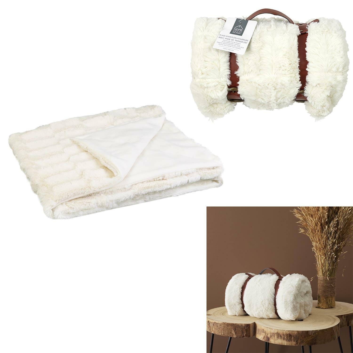 Praktyczna skóropodobna sprzączka umożliwia wygodne zwinięcie i przenoszenie koca, co sprawia, że jest idealnym towarzyszem podróży lub pikników.