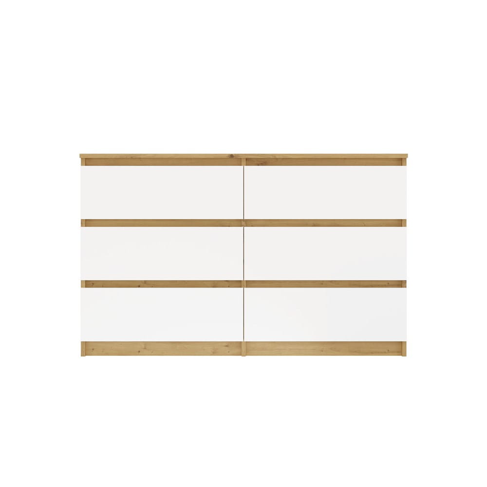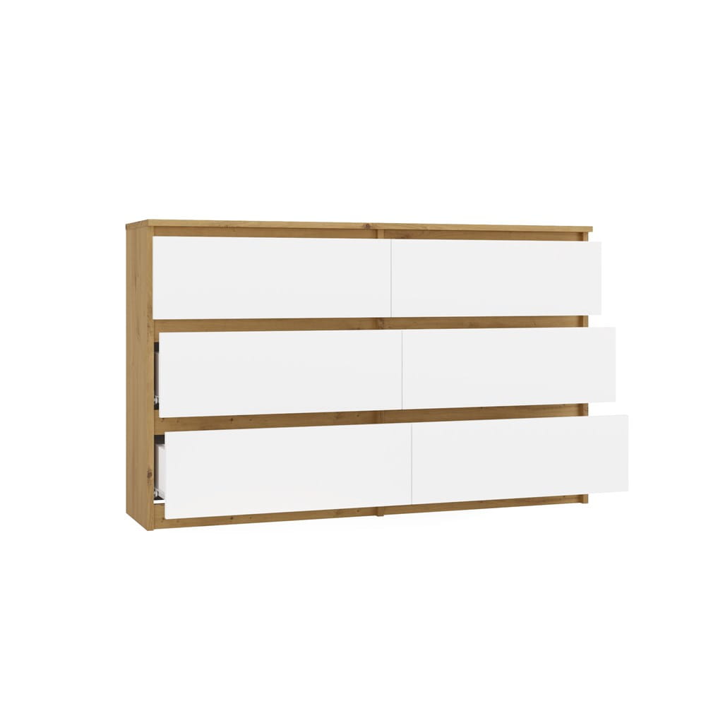 Komoda 120 cm, dąb artisan/biała z 6 szufladami Malwa M6