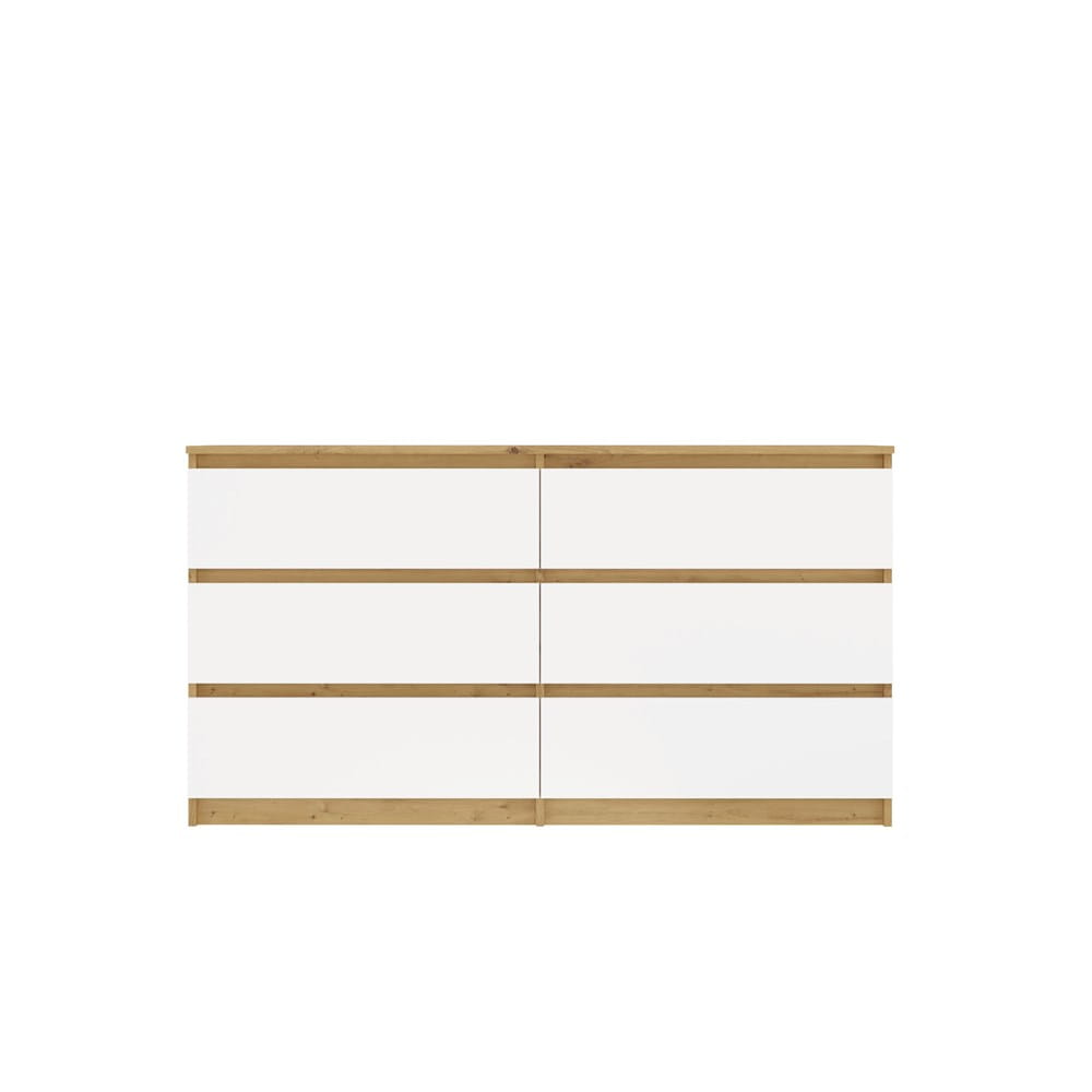 Sześć pojemnych szuflad ułatwia organizację ubrań, dokumentów i domowych akcesoriów.