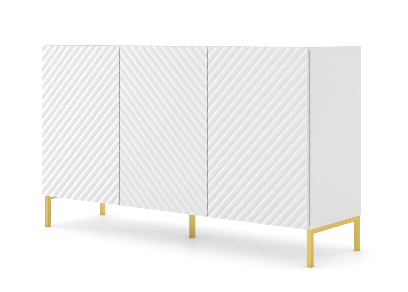 Komoda 150 cm biała matowa do salonu, ze złotymi nogami Surf 3D