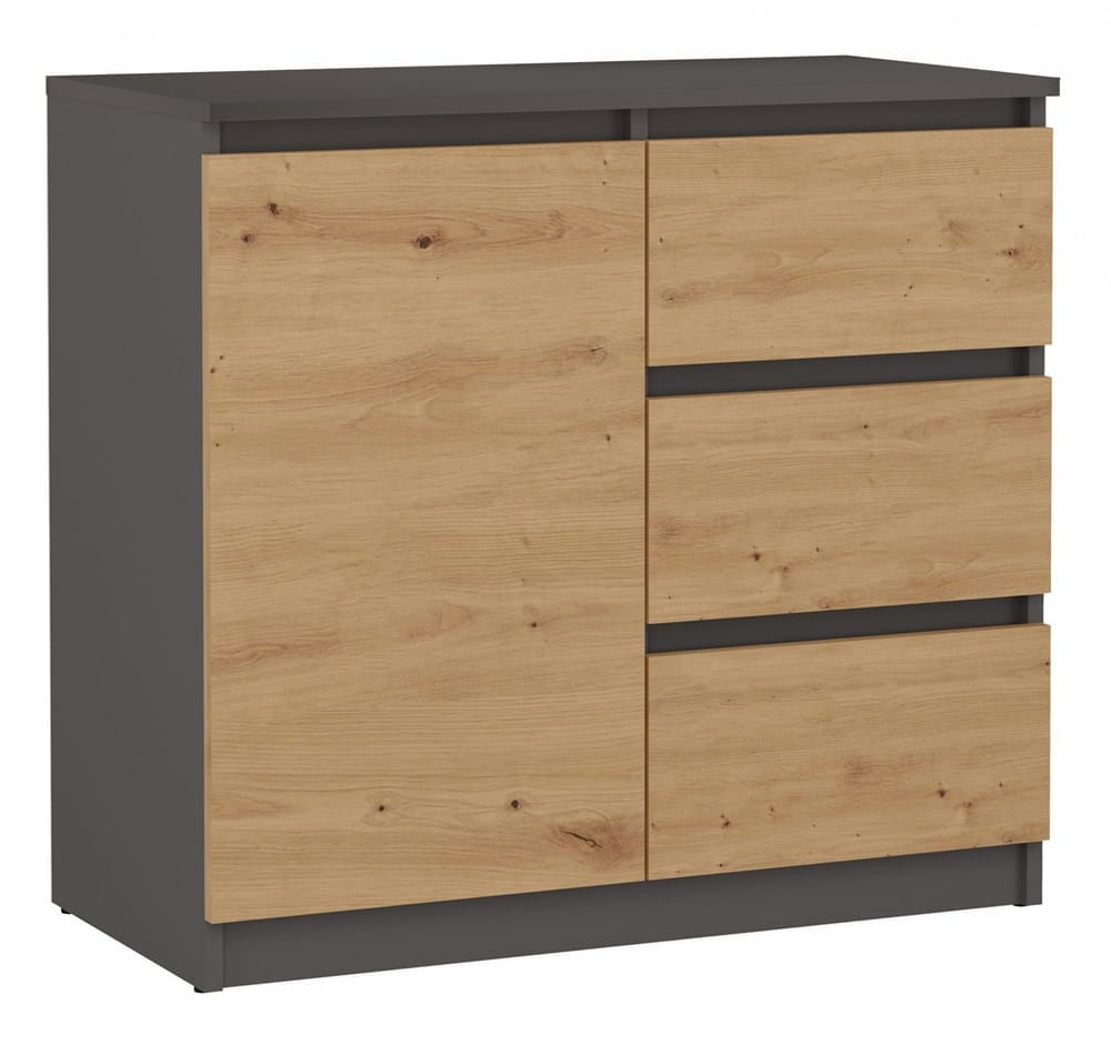 Komoda 80 cm, antracyt/dąb artisan 1D3S z szufladami i drzwiczkami