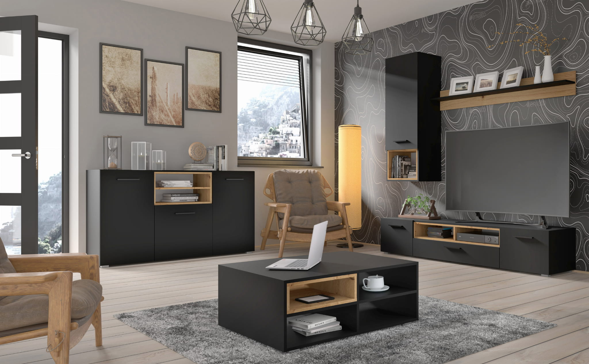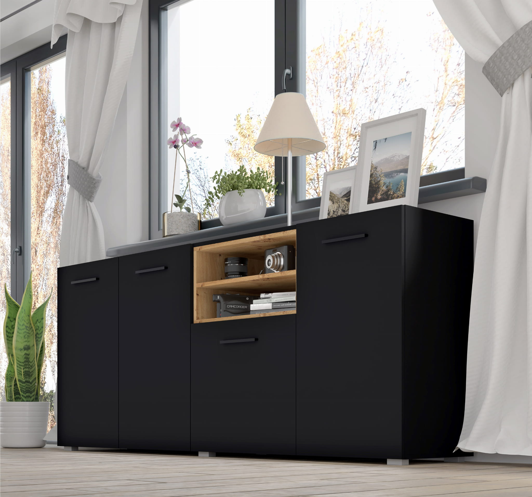 Komoda czarna 151 cm, z wstawką dąb artisan do salonu Anette