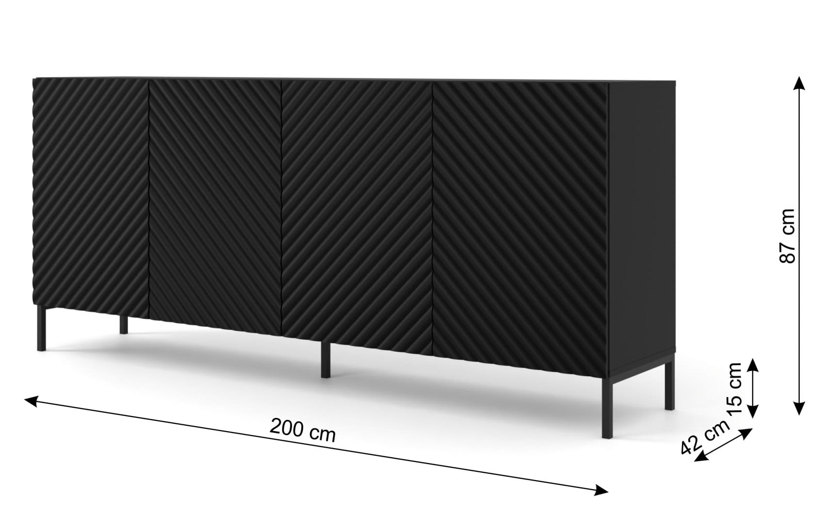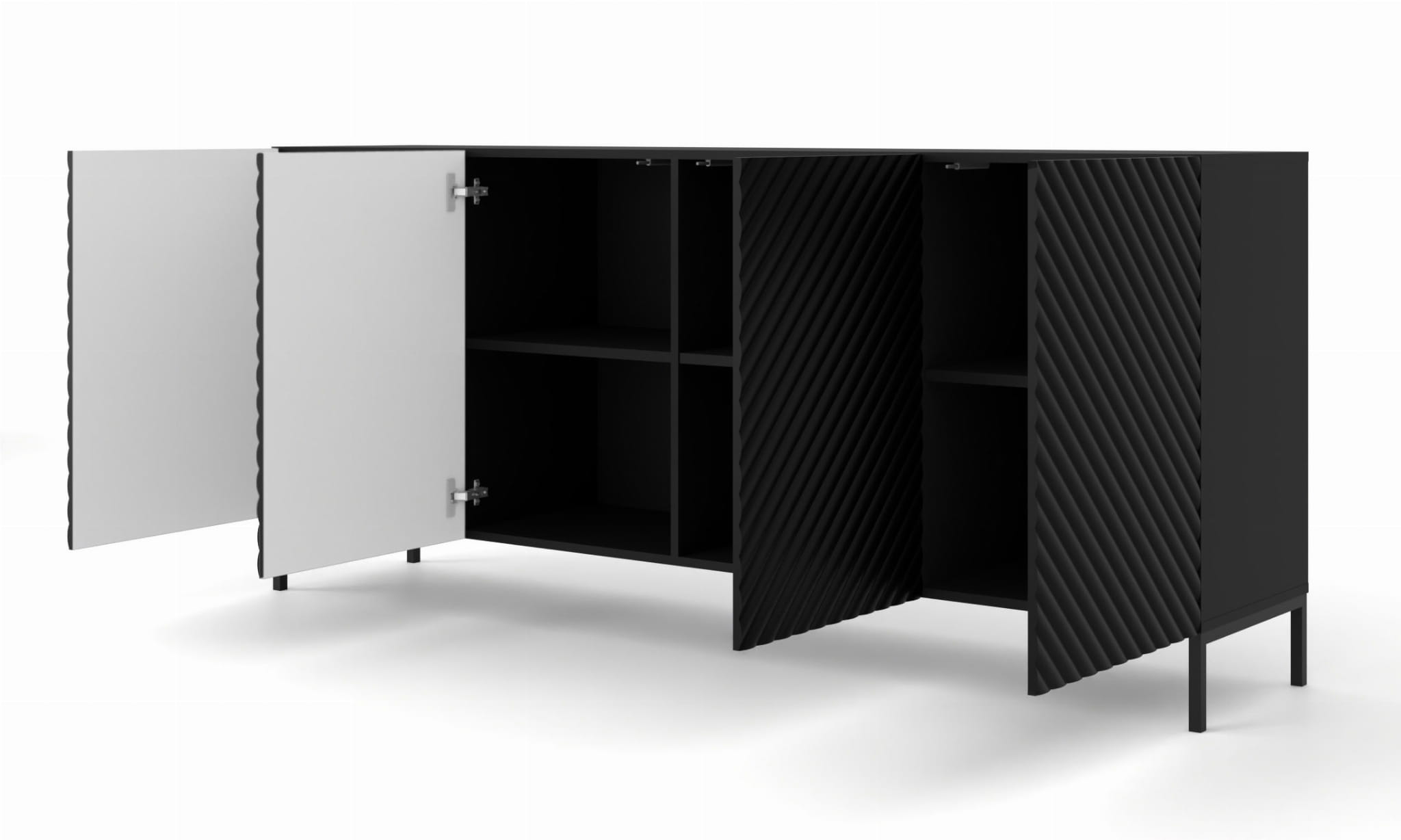 Komoda czarna matowa 200 cm, z frezowanym frontem do salonu Surf 4D
