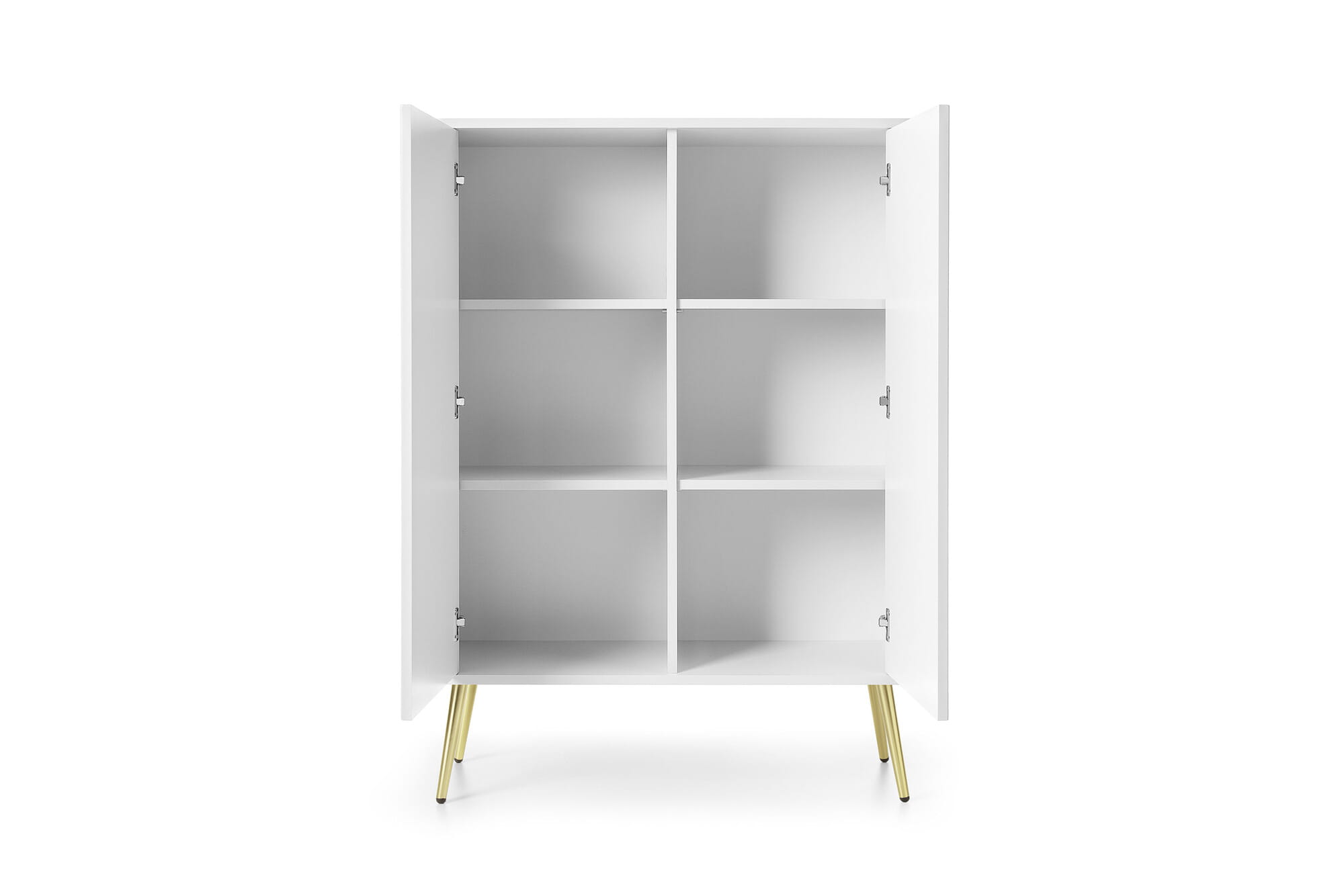 Elegancja i funkcjonalność spotykają się w białej komodzie wysokiej Zev, która zachwyca nowoczesnym designem i dbałością o detale.