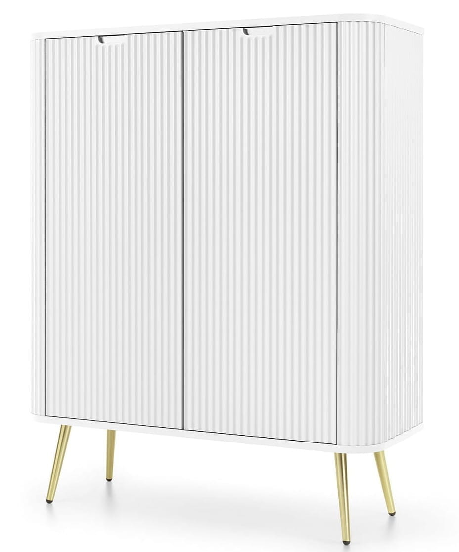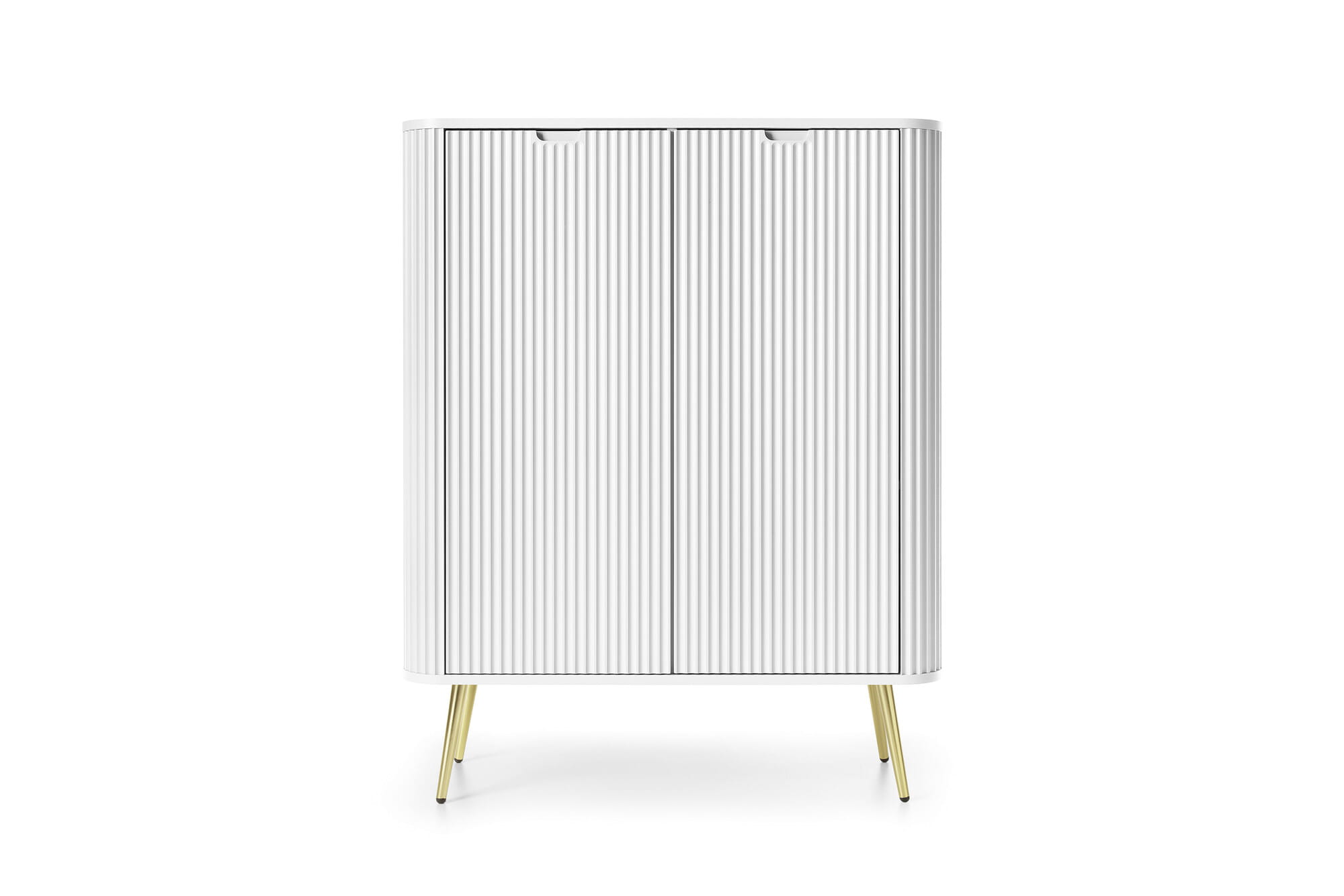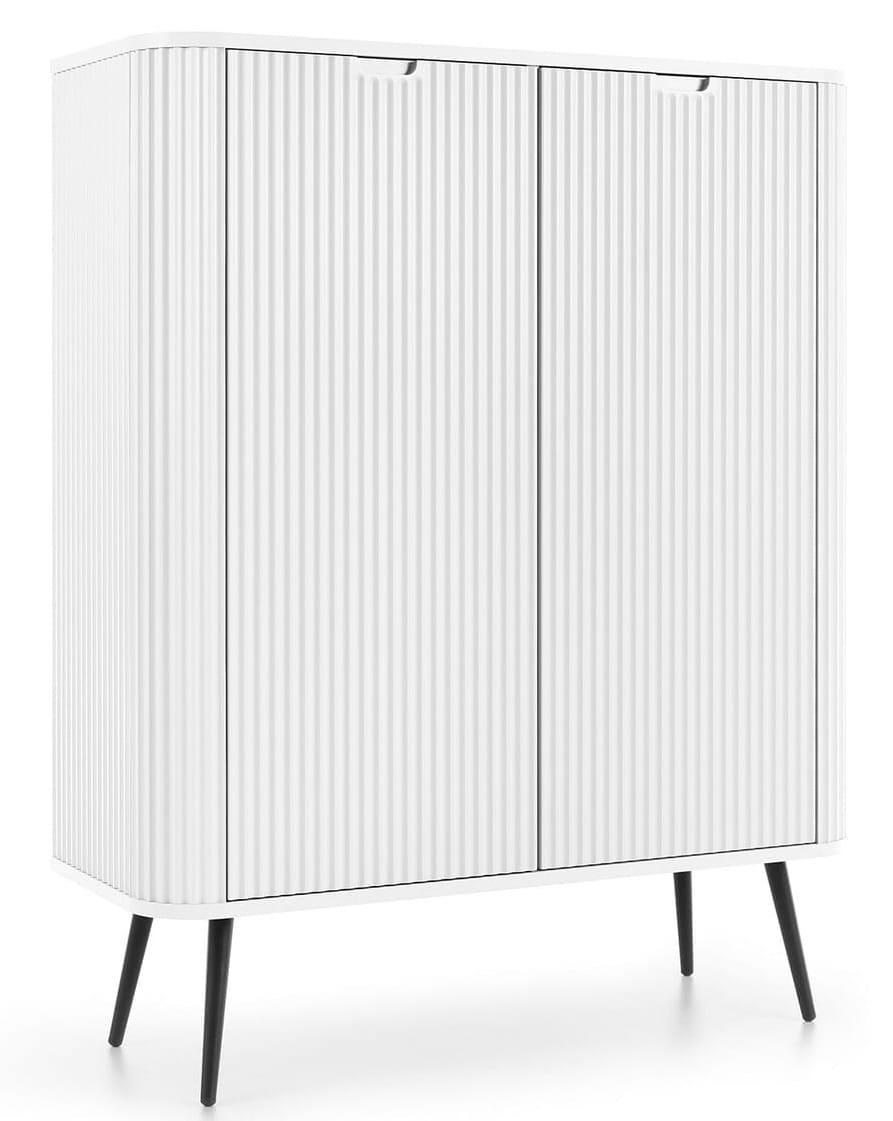Komoda wysoka biała 103 cm, dwudrziowa, frezowane fronty do salonu Zova