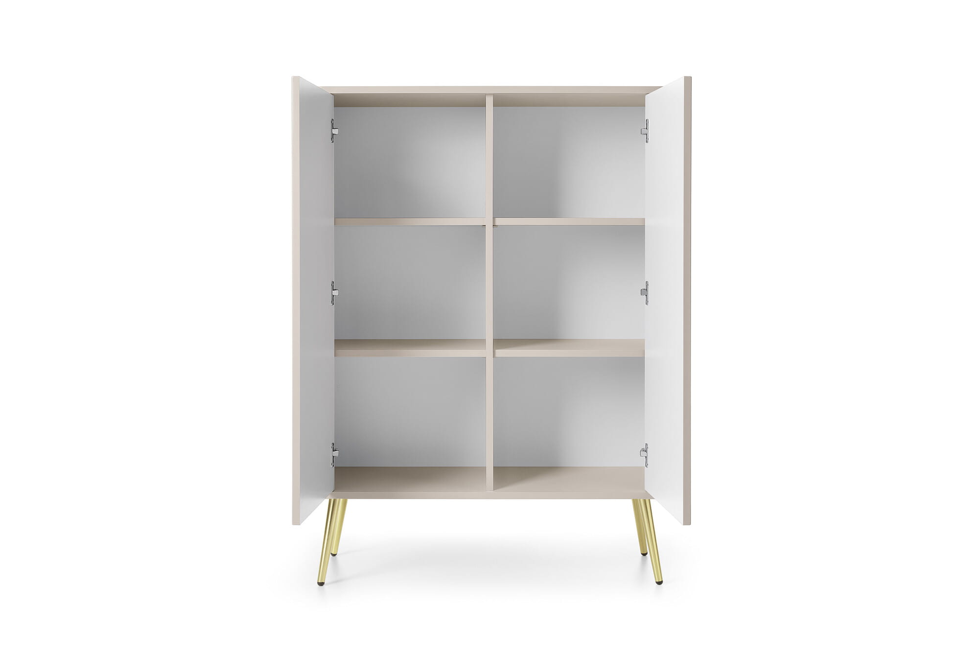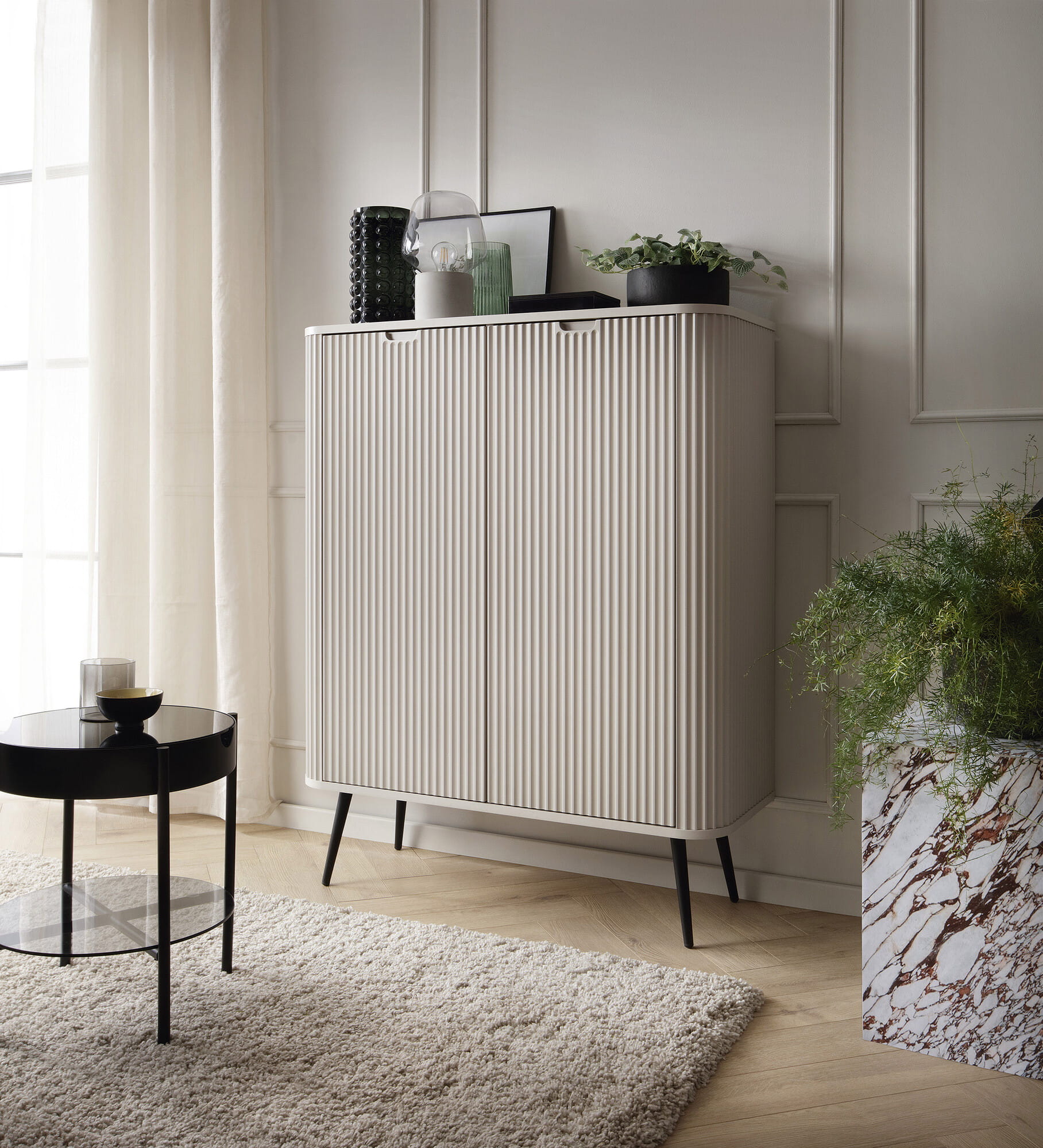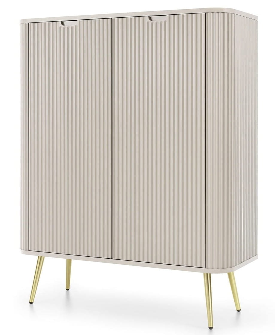 Komoda wysoka kaszmir 103 cm, dwudrzwiowa, frezowane fronty do salonu Zova