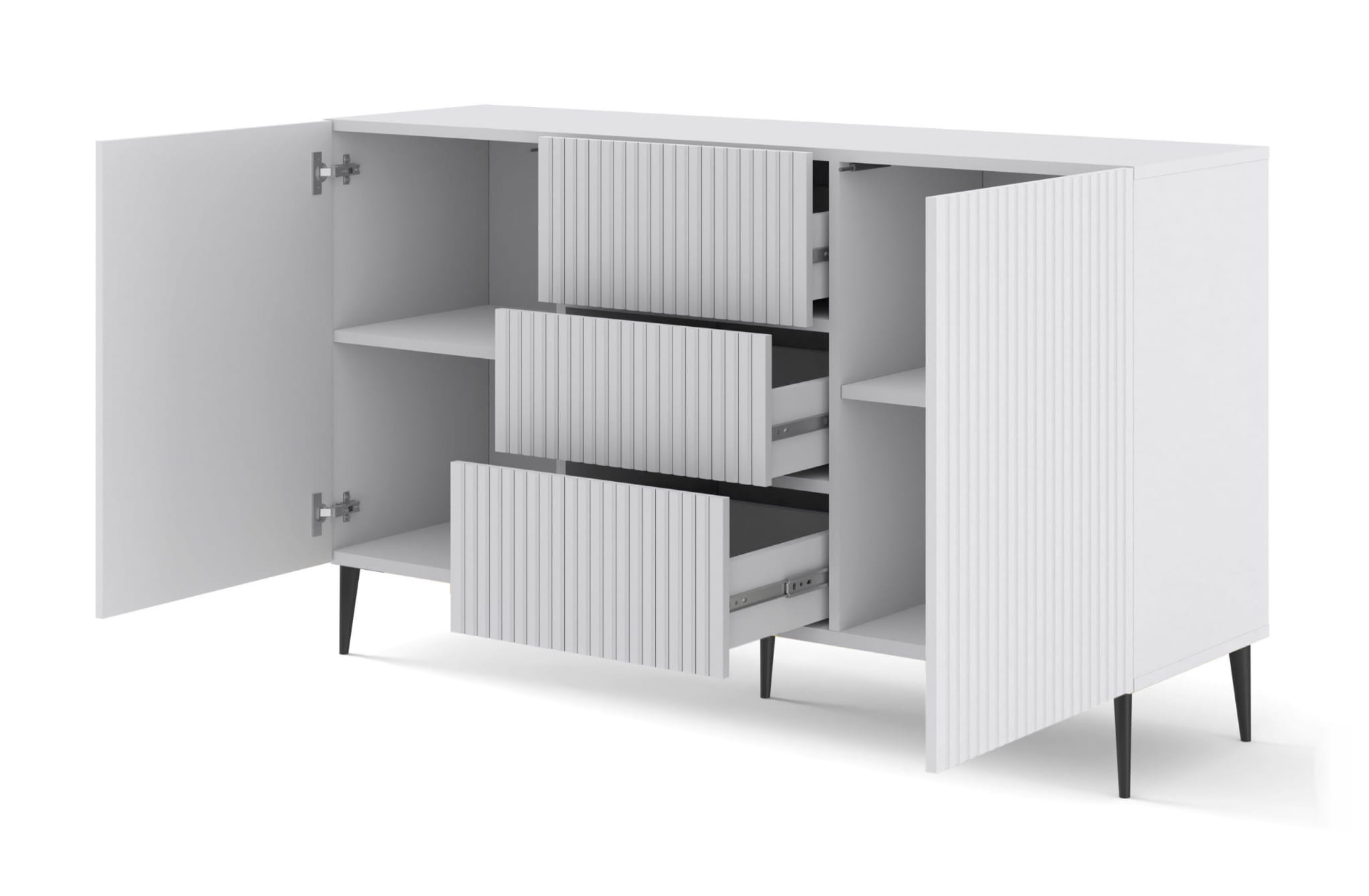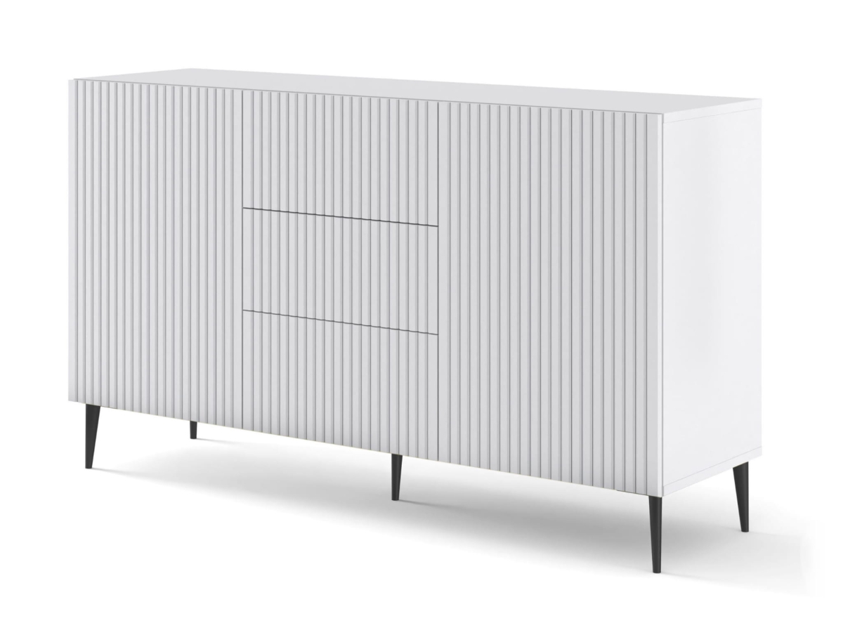 Komoda z białym frontem 150 cm, na czarnych szpilkach do salonu Ravenna B 2D3S