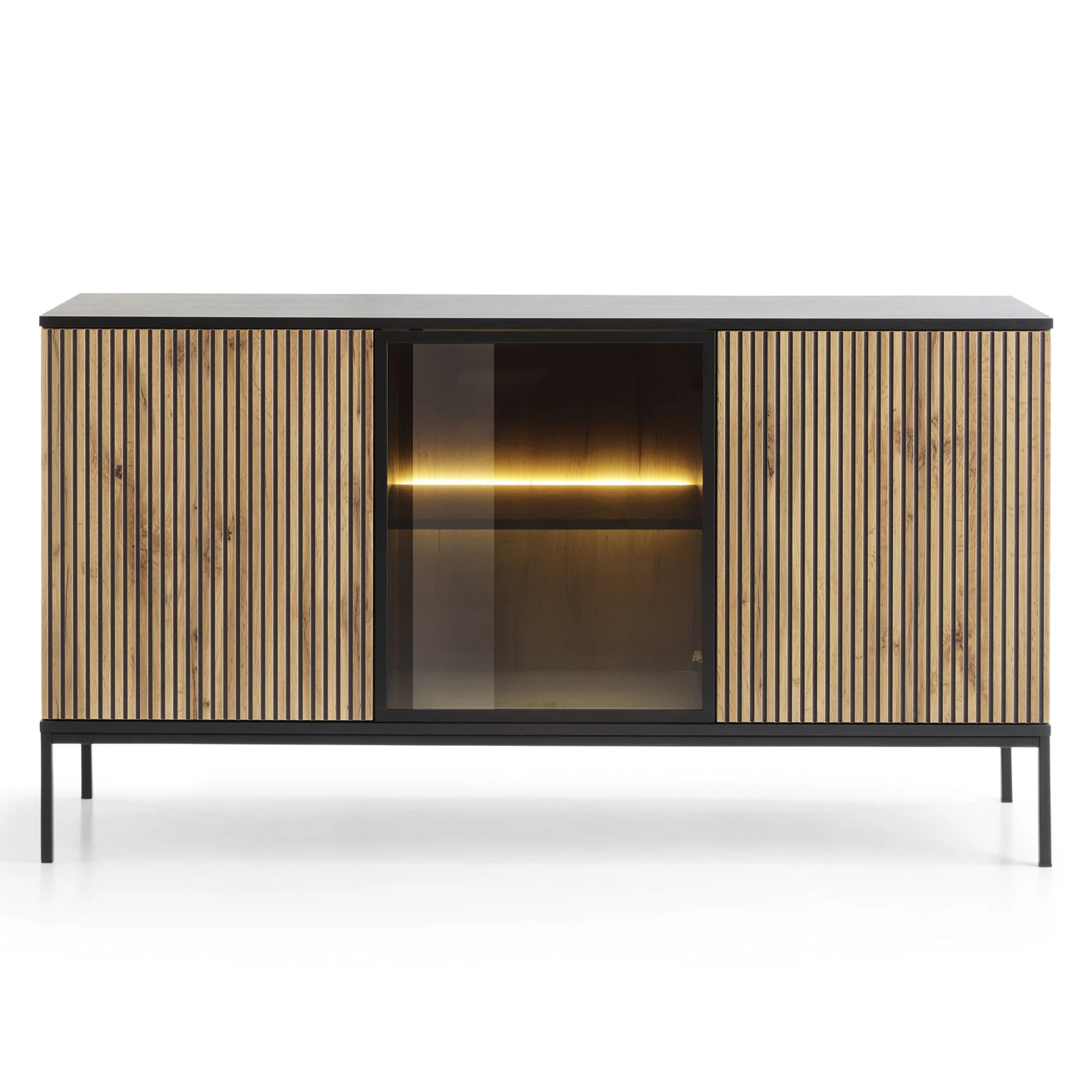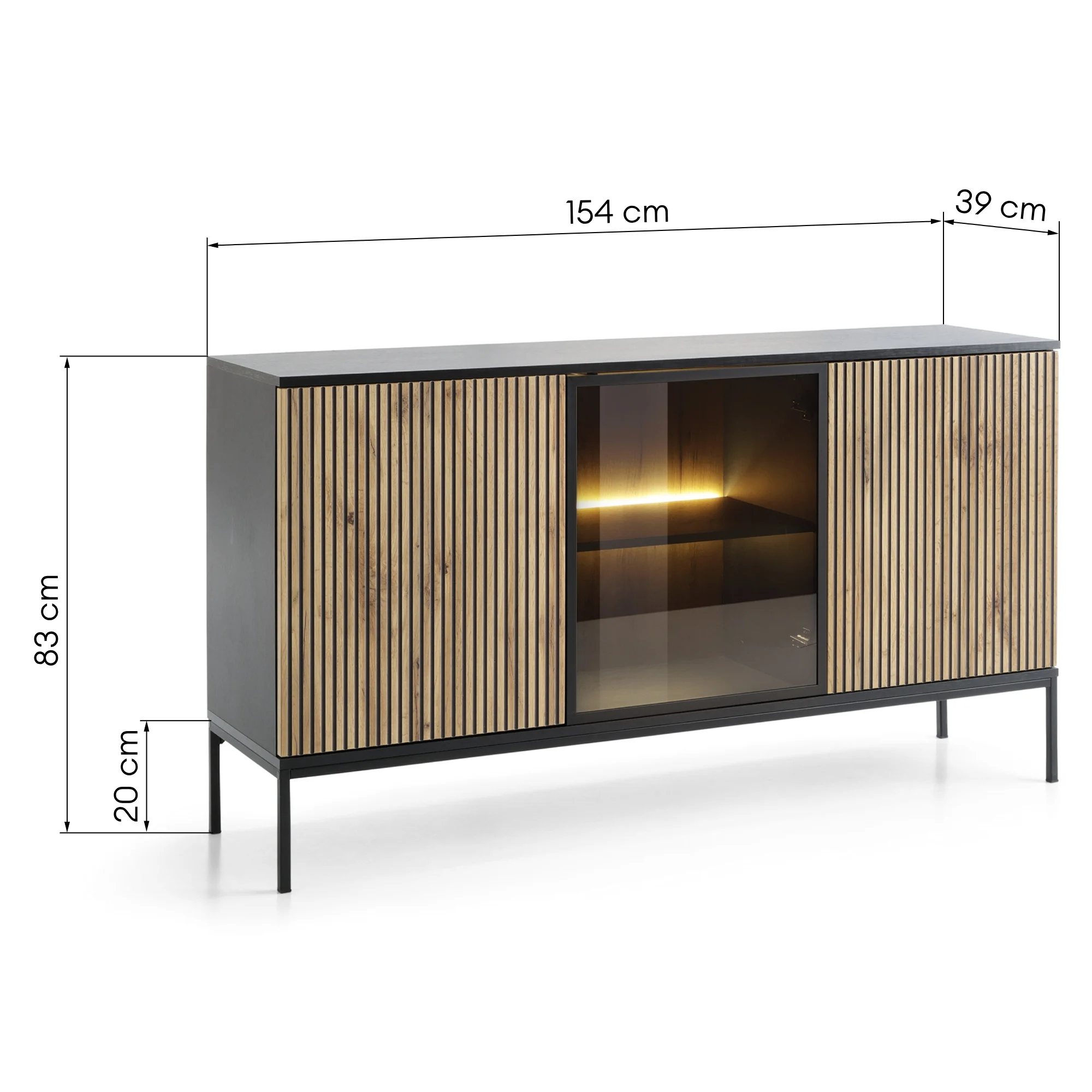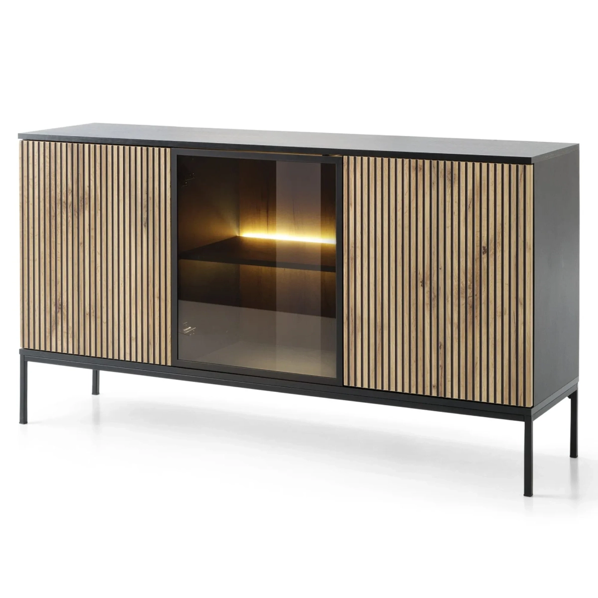 Komoda z drzwiczkami, oświetleniem led, frezowany front Sento