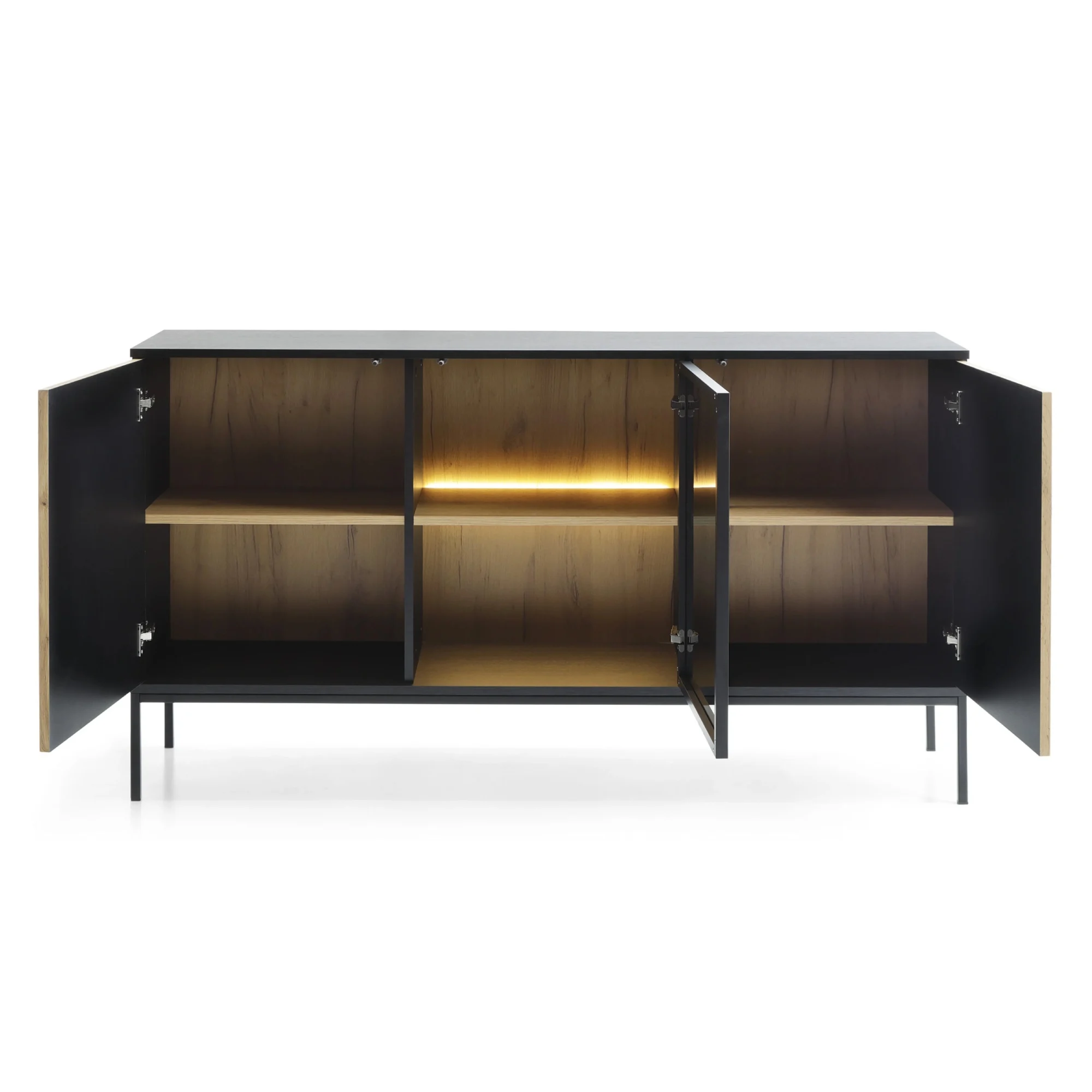 Kontrastujący czarny korpus nadaje meblowi nowoczesności i wyrafinowania, tworząc wyjątkowy efekt wizualny.