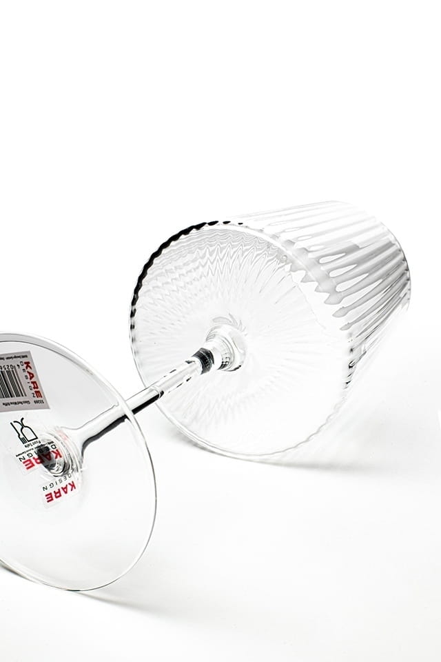 Kieliszki RIFFLE od marki KARE Design to stylowa propozycja dla miłośników nowoczesnego wzornictwa i wyrafinowanych detali. Przezroczyste szkło, z którego zostały wykonane, prezentuje się elegancko i subtelnie błyszczy w świetle, idealnie podkreślając barwę serwowanego wina.