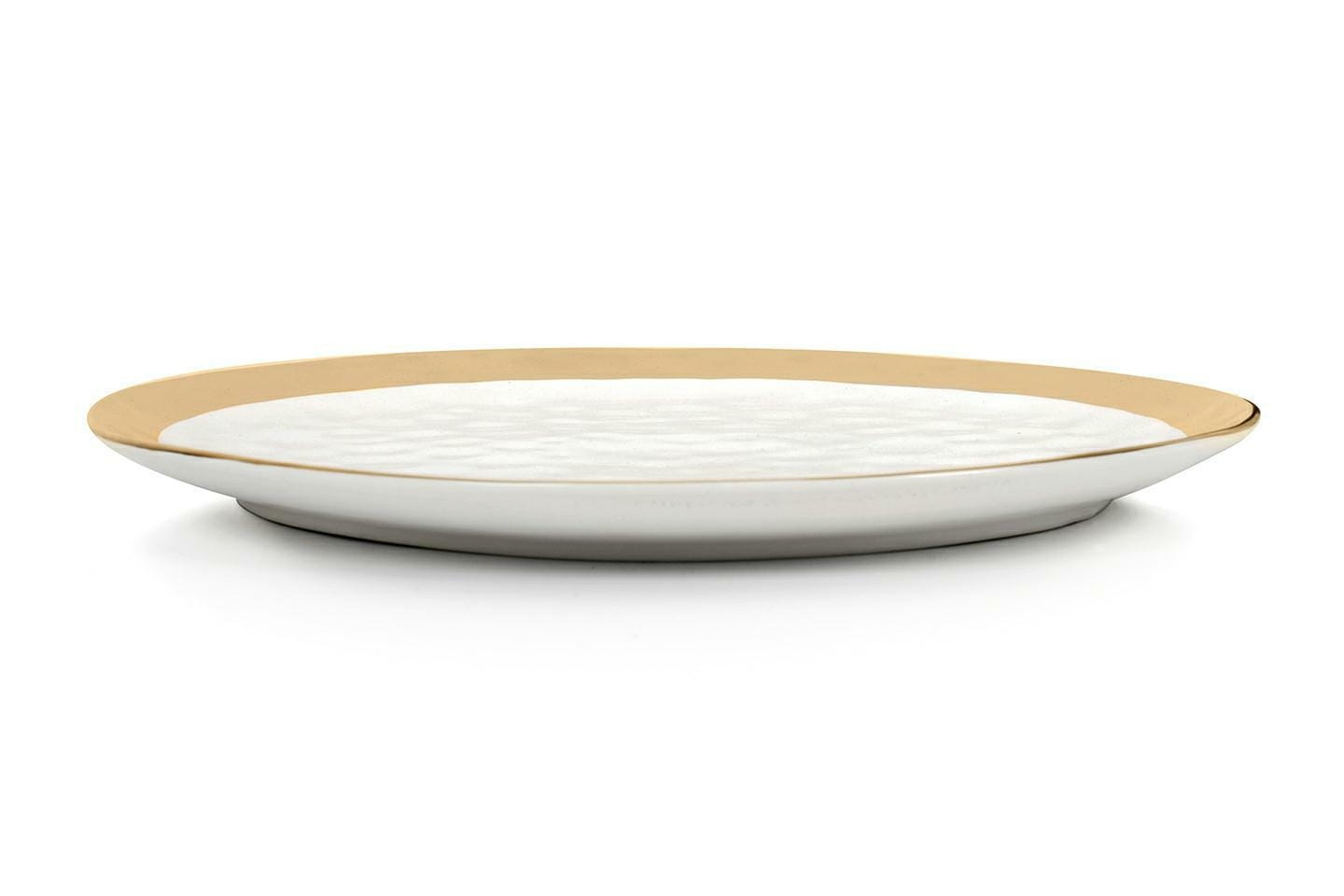 Komplet dwóch talerzy, biało-złotych 38 cm, Bell Kare