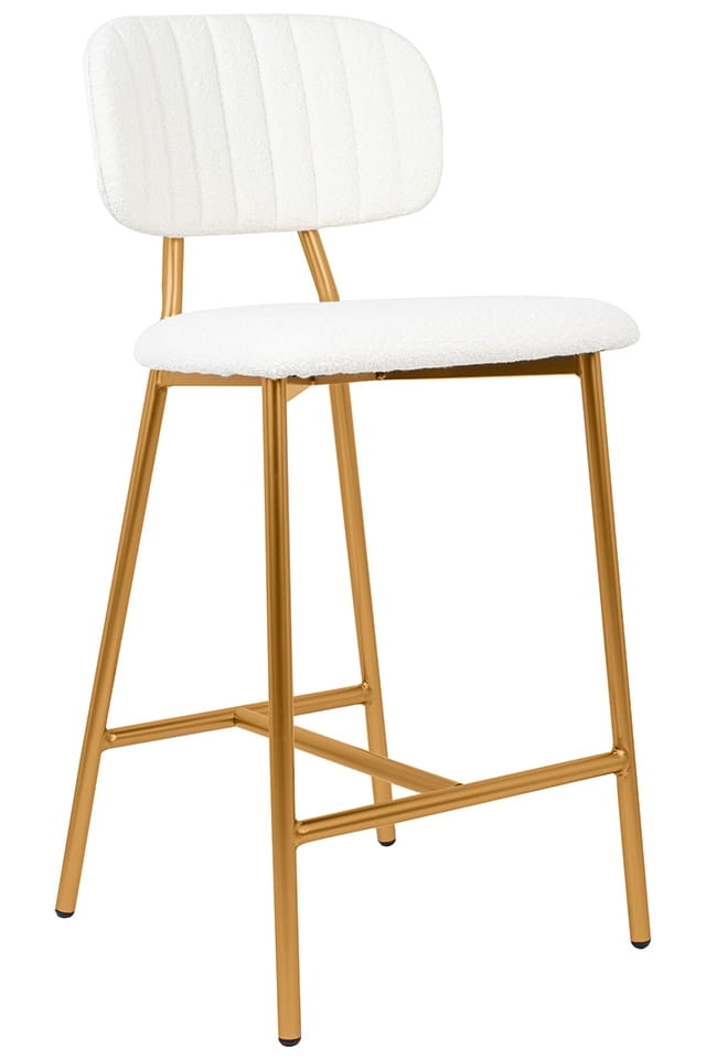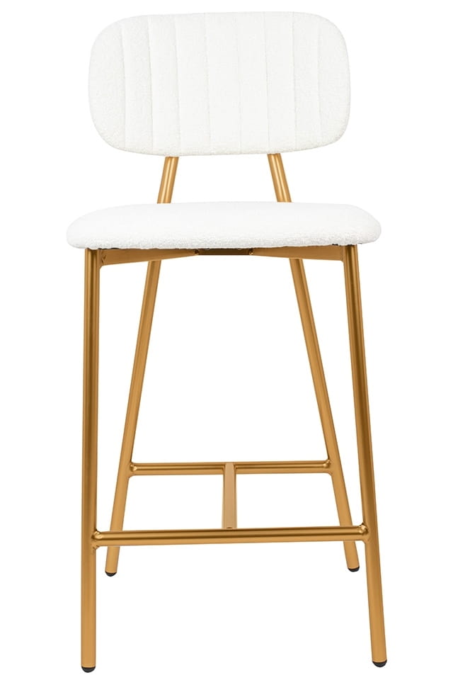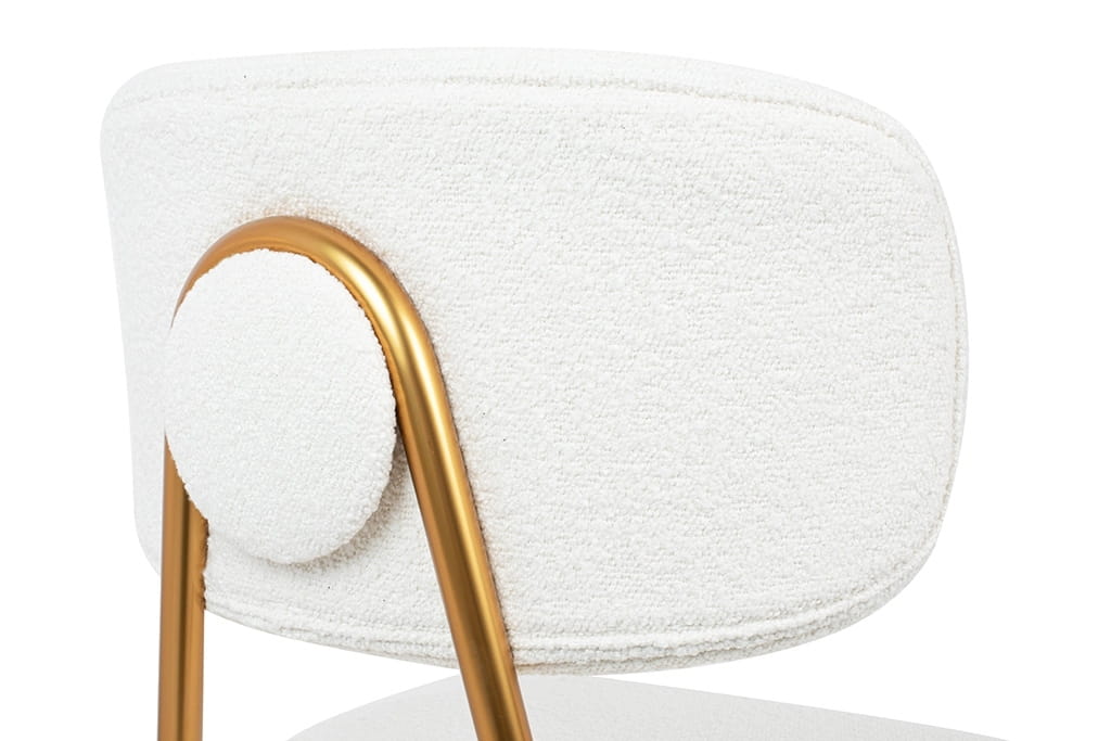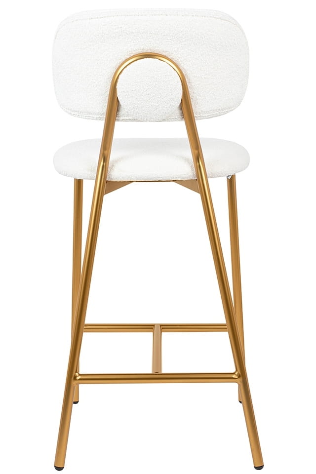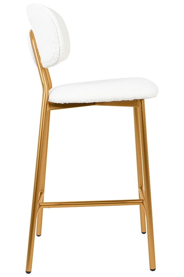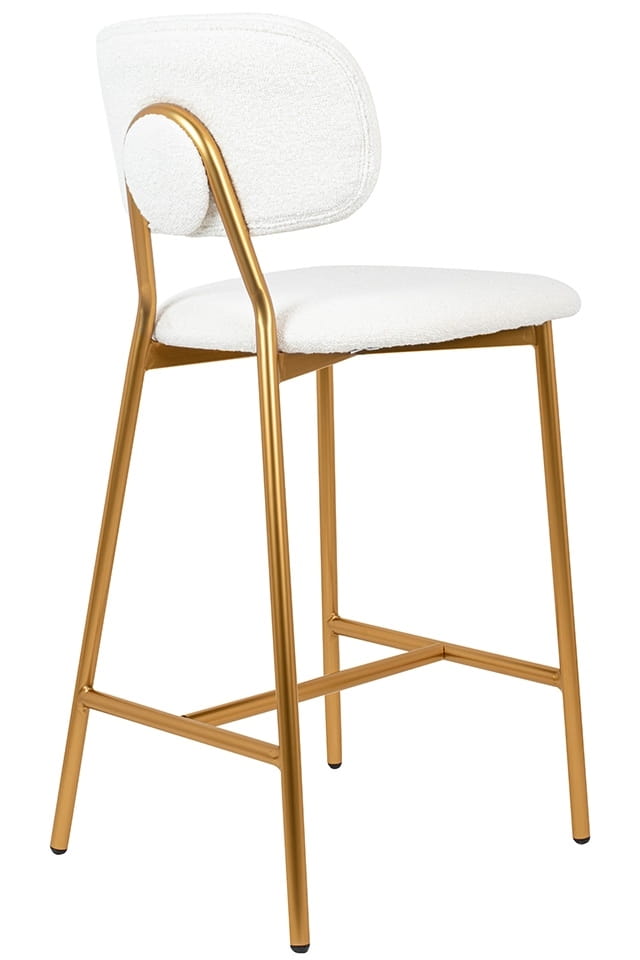 Krzesło barowe białe, w tkaninie boucle, ze złotymi nogami Fabiola Boucle