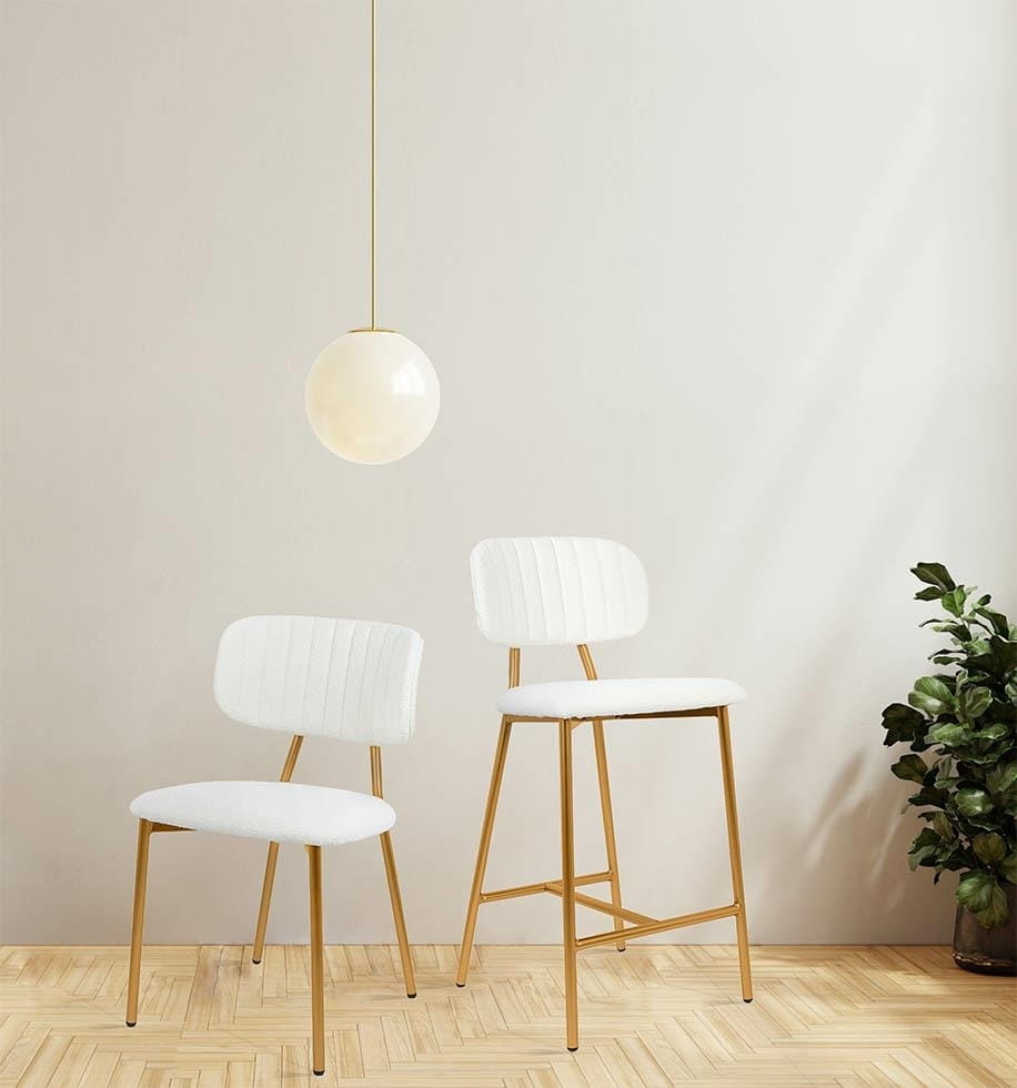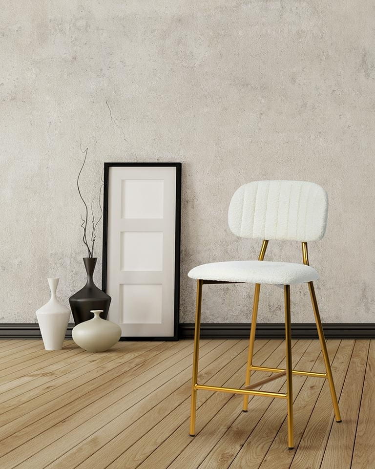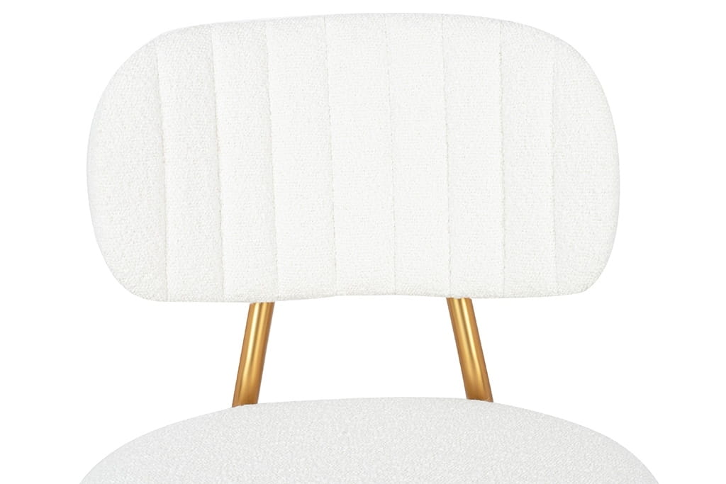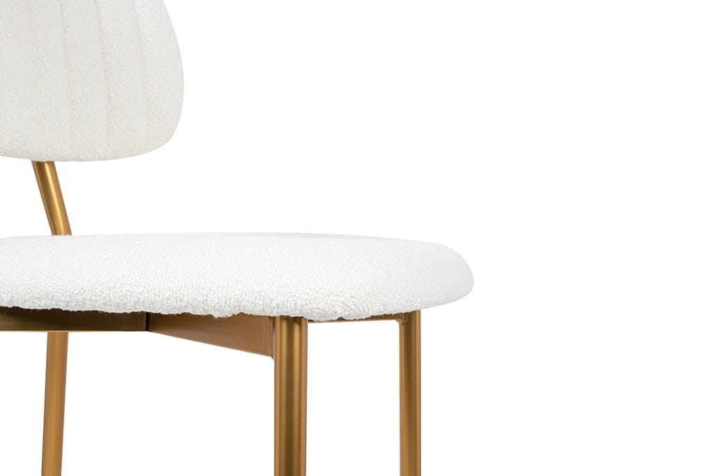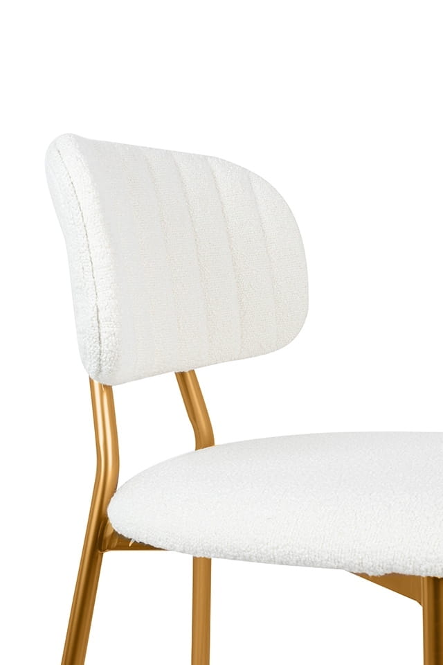 Krzesło barowe białe, w tkaninie boucle, ze złotymi nogami Fabiola Boucle