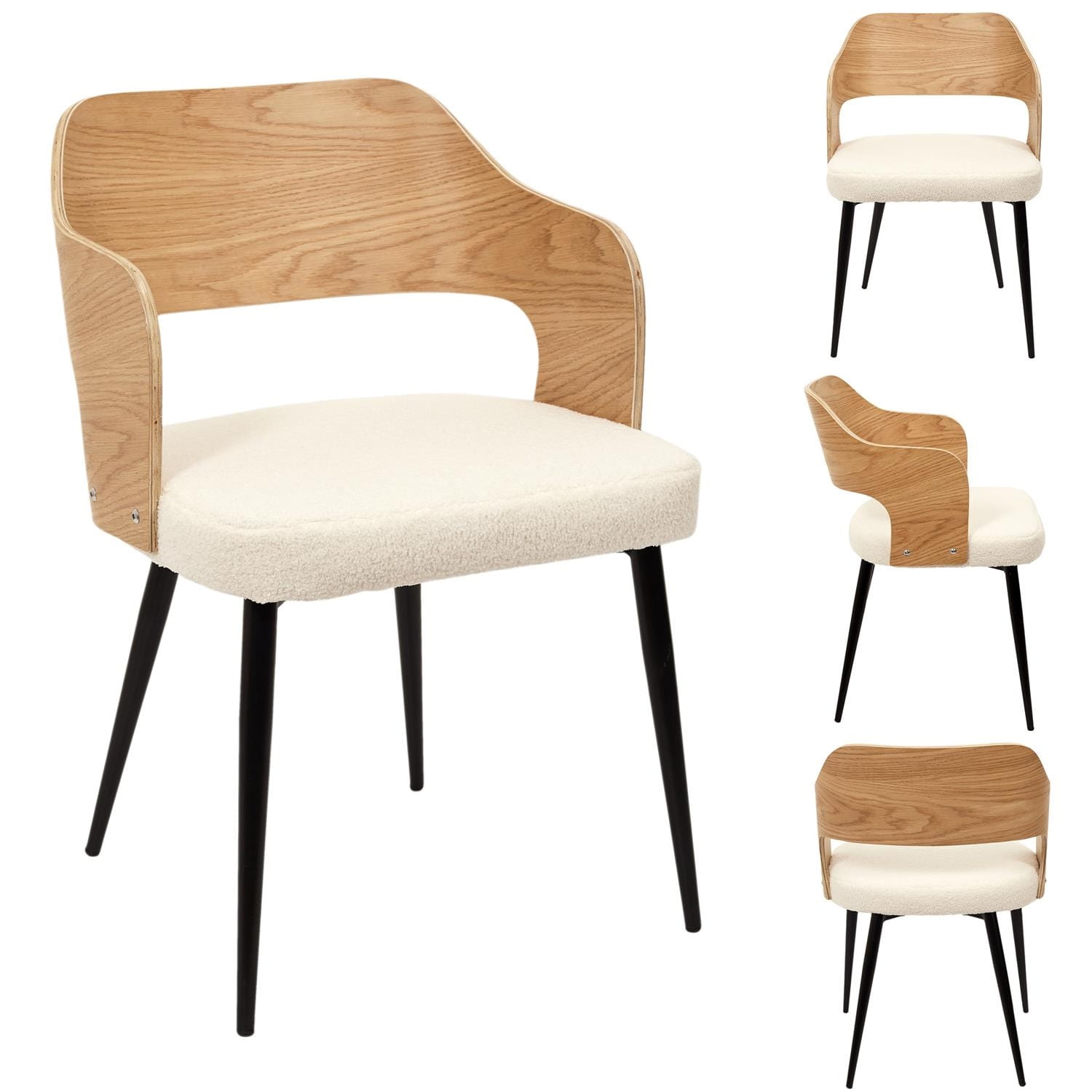 Tkanina boucle, o której trudno powiedzieć, czy jest bardziej luksusowa, czy przytulna, nadaje krzesłu wyjątkowy charakter.