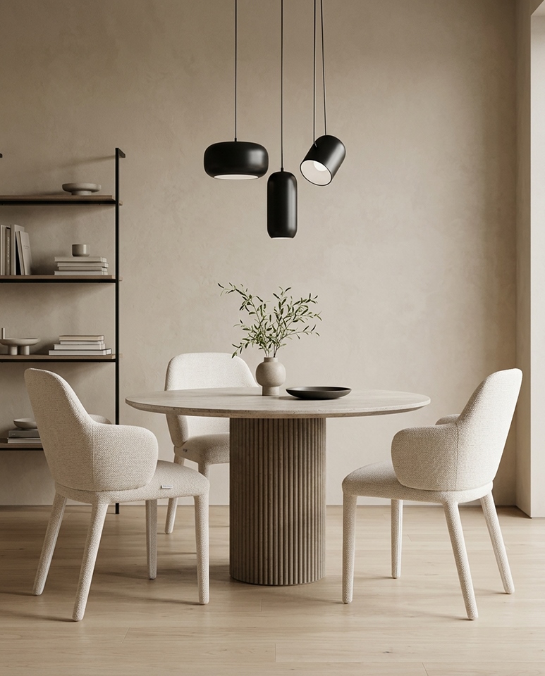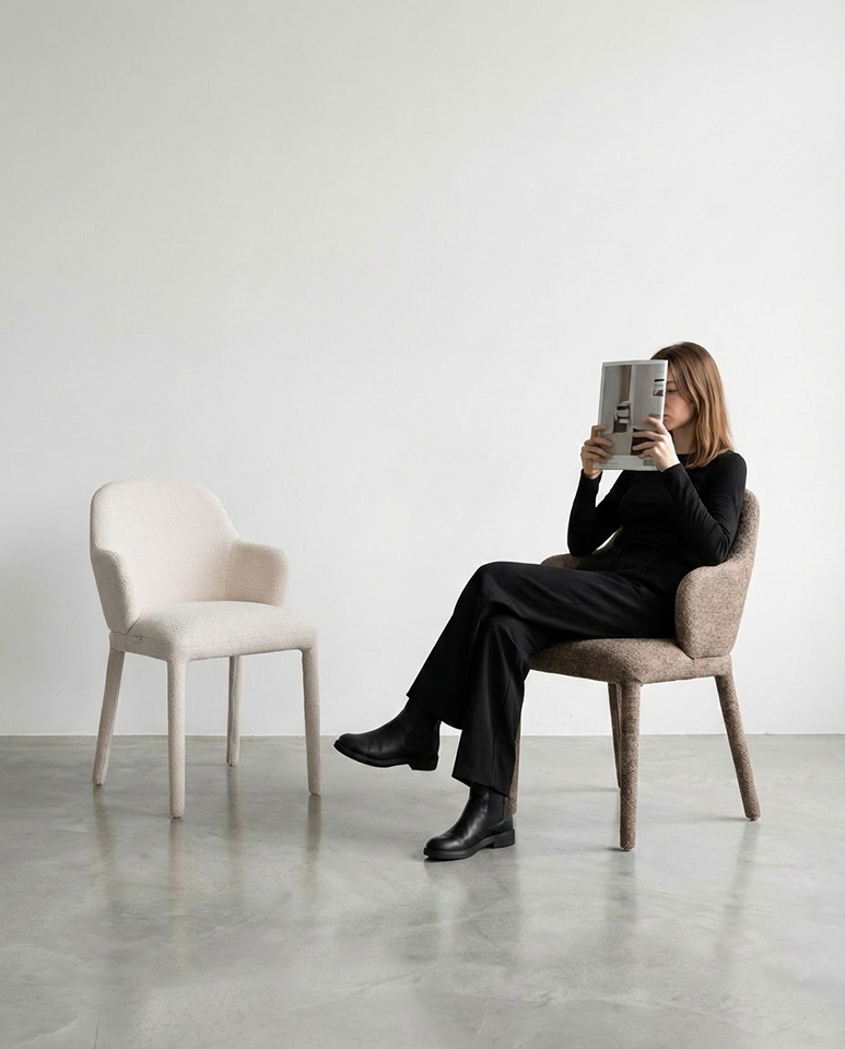 Wyprofilowane oparcie oraz delikatne podłokietniki zapewniają komfortowe podparcie podczas posiłków, spotkań i codziennego relaksu.