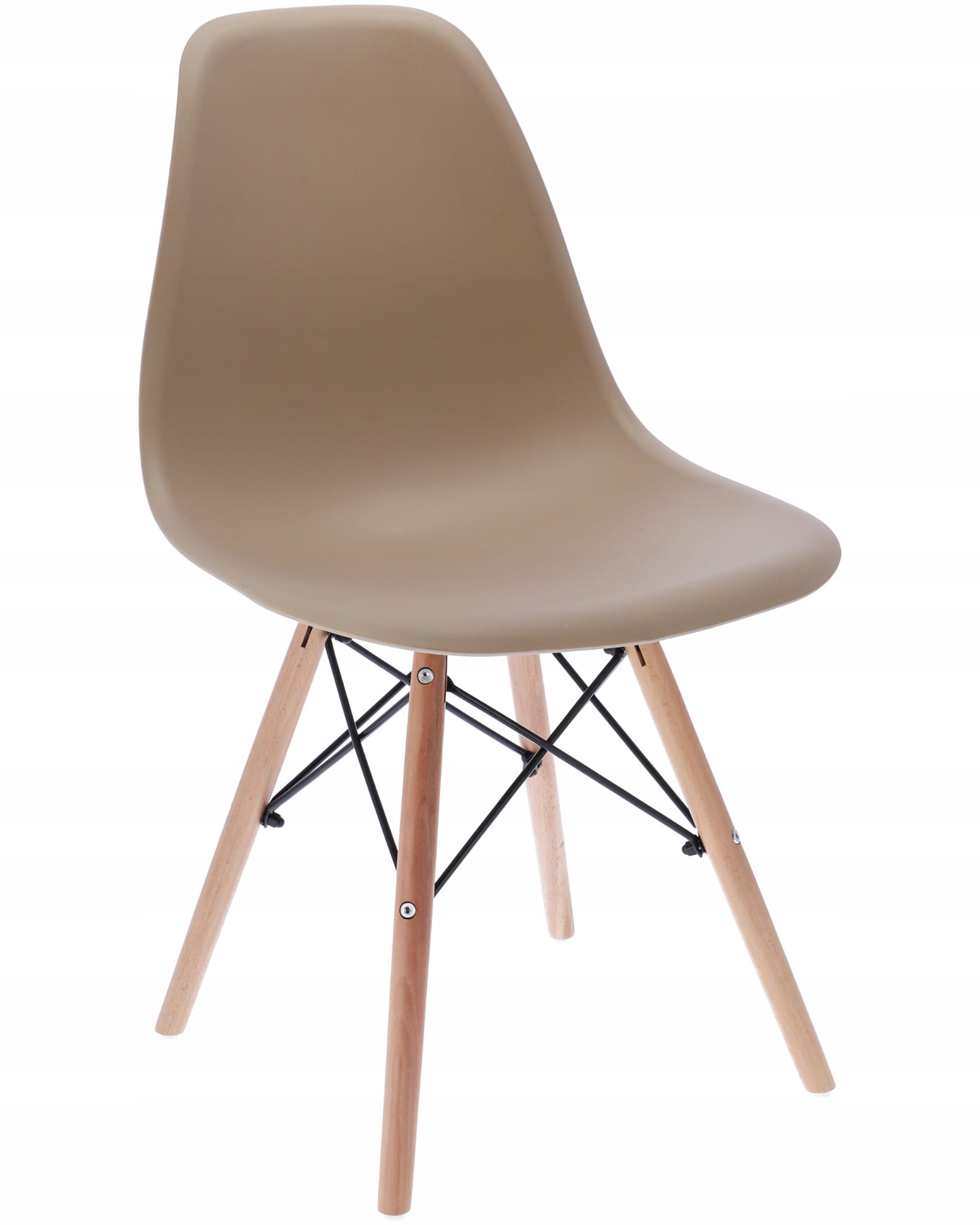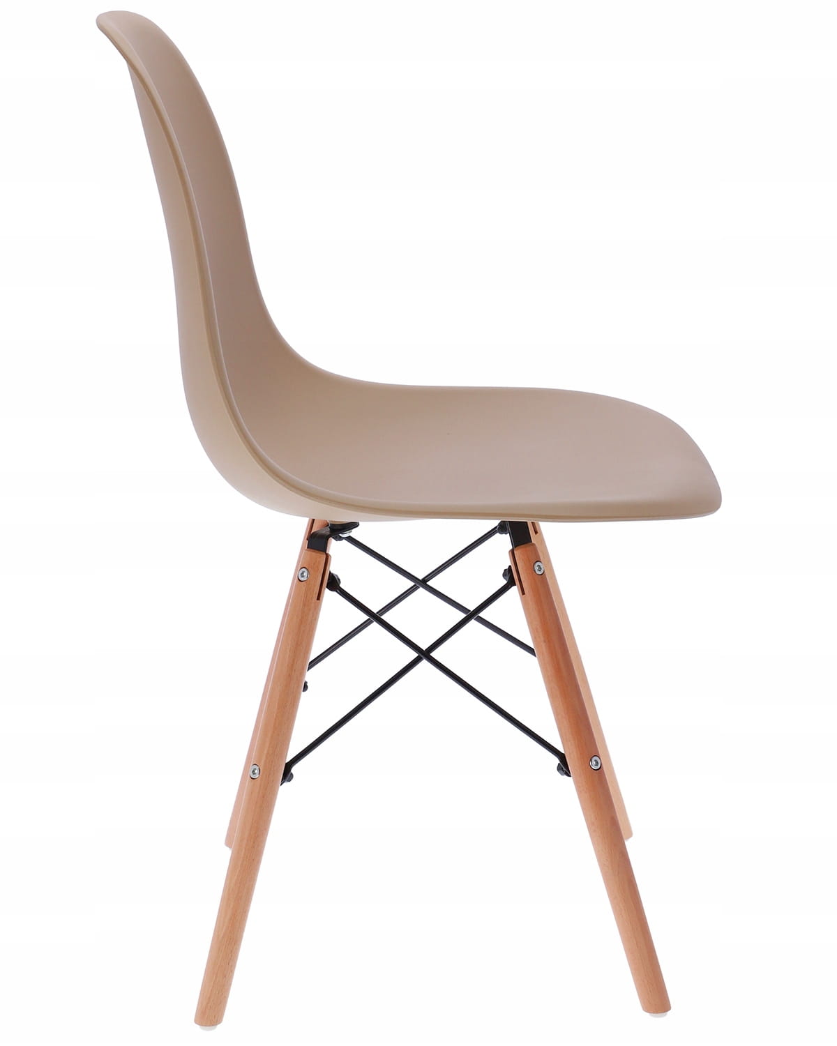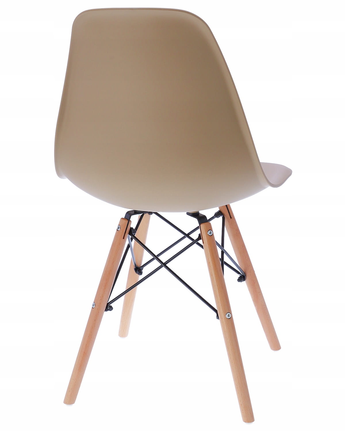 Krzesło beżowe plastikowe, nogi z drewna bukowego Eva