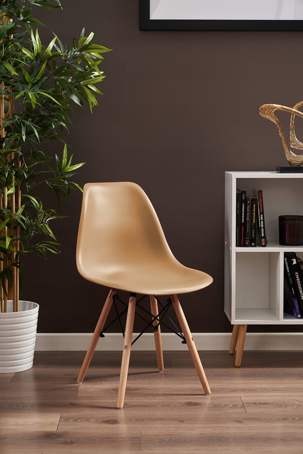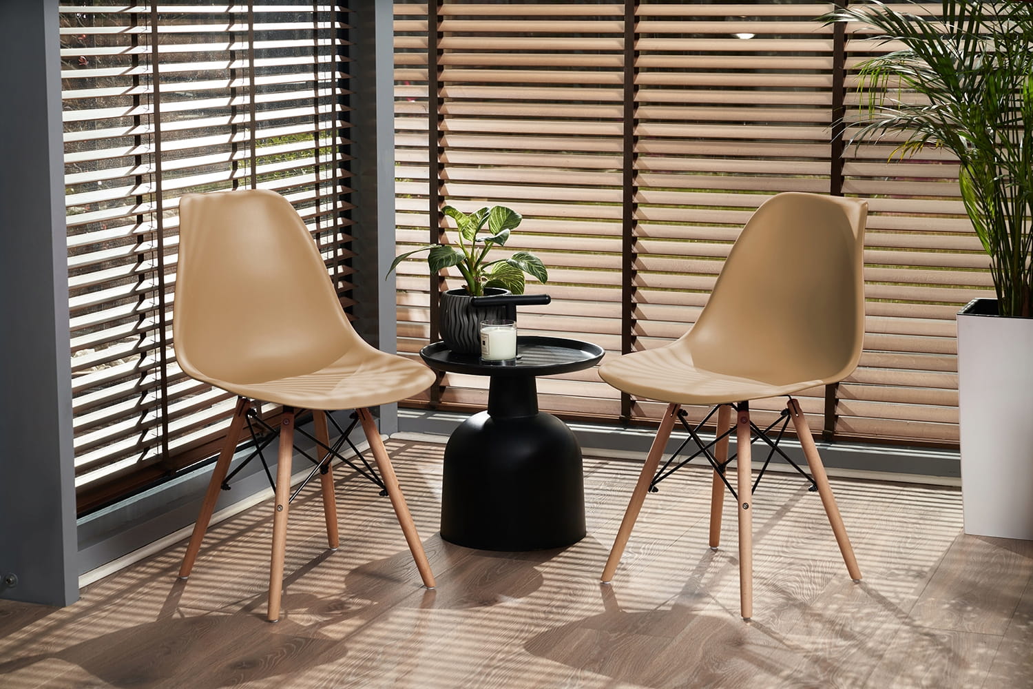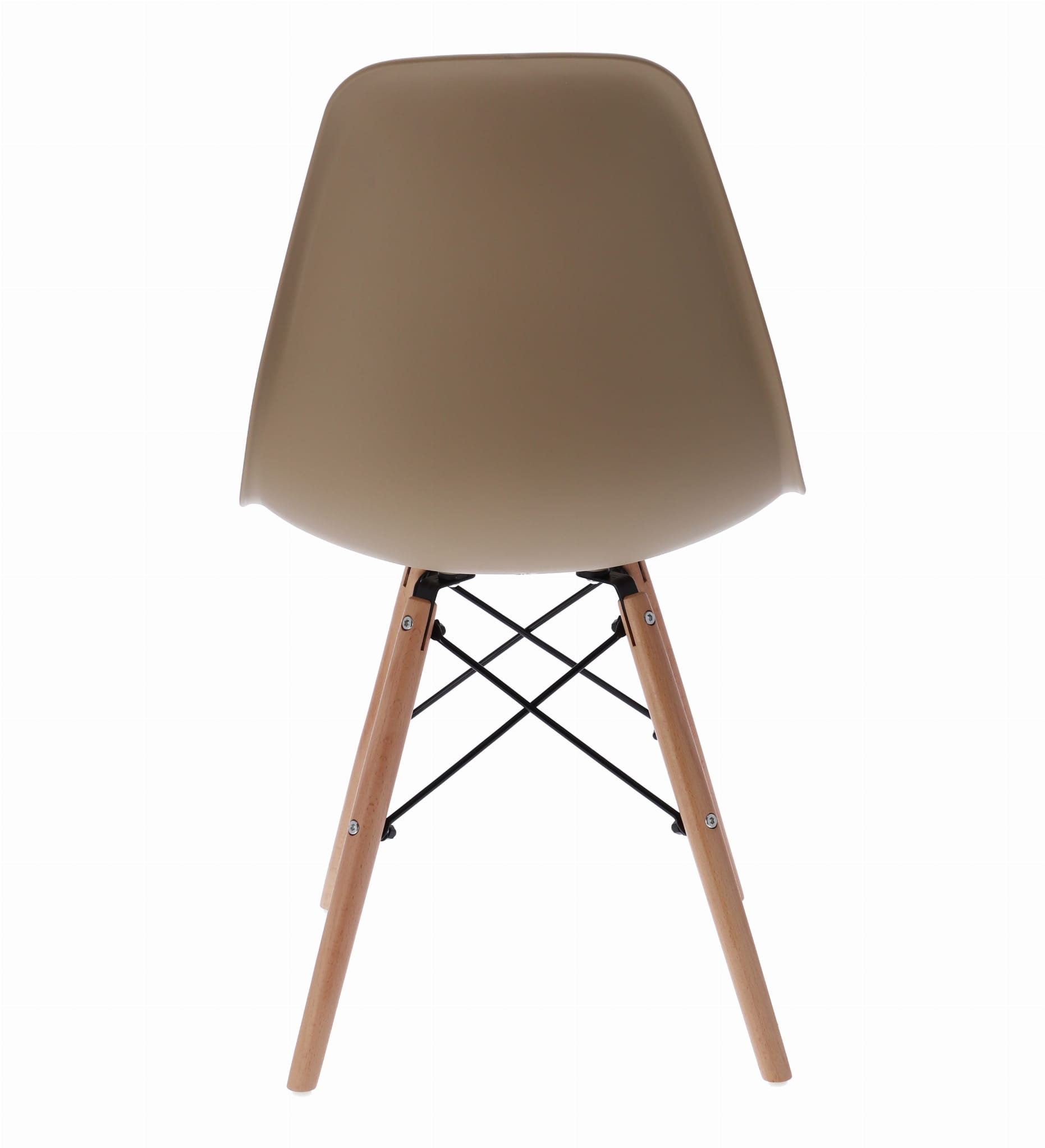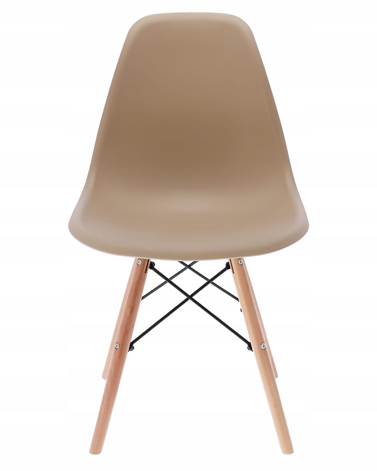 Krzesło beżowe plastikowe, nogi z drewna bukowego Eva