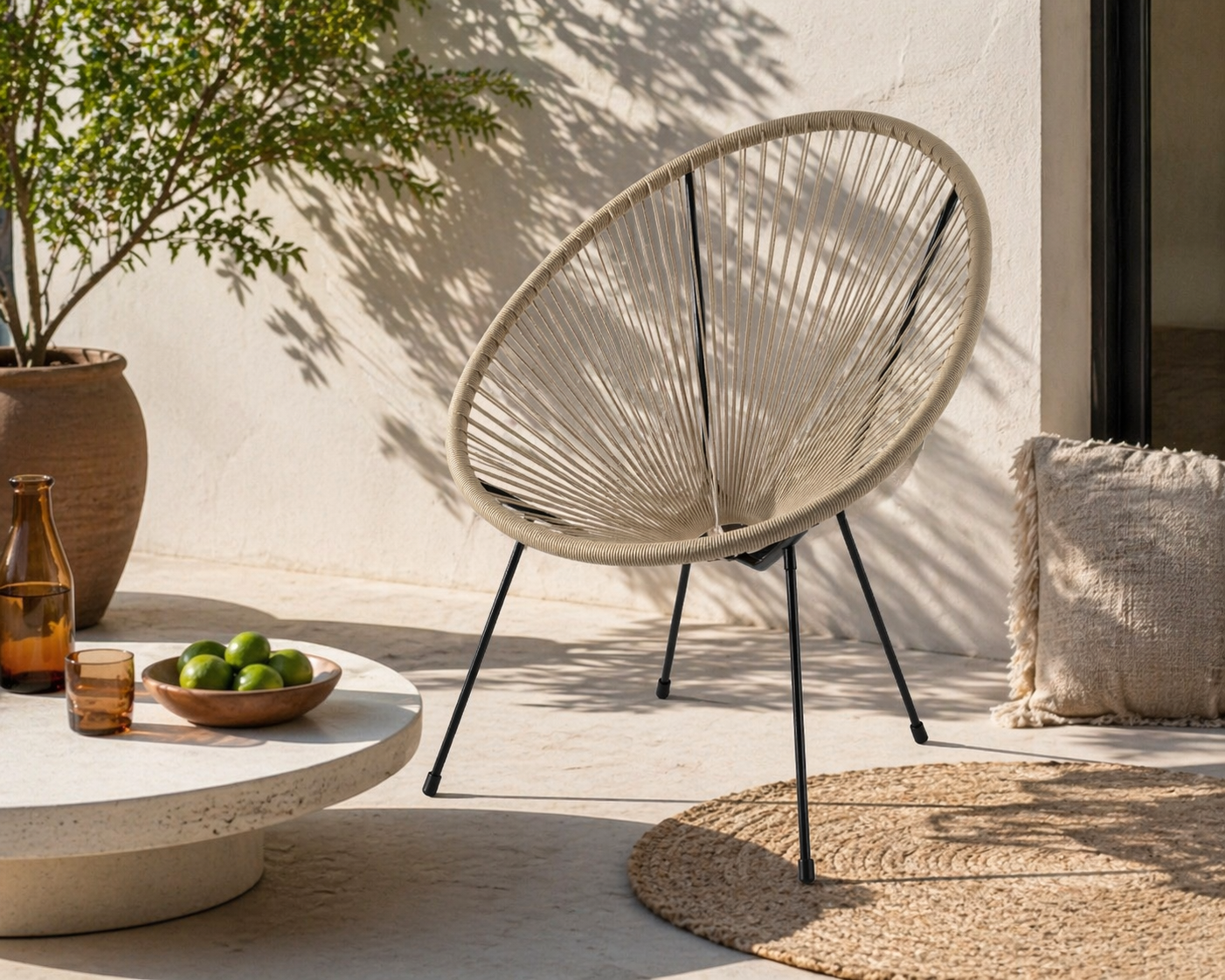 - Siedzisko: wykonane z technorattanu, odporne na warunki atmosferyczne
