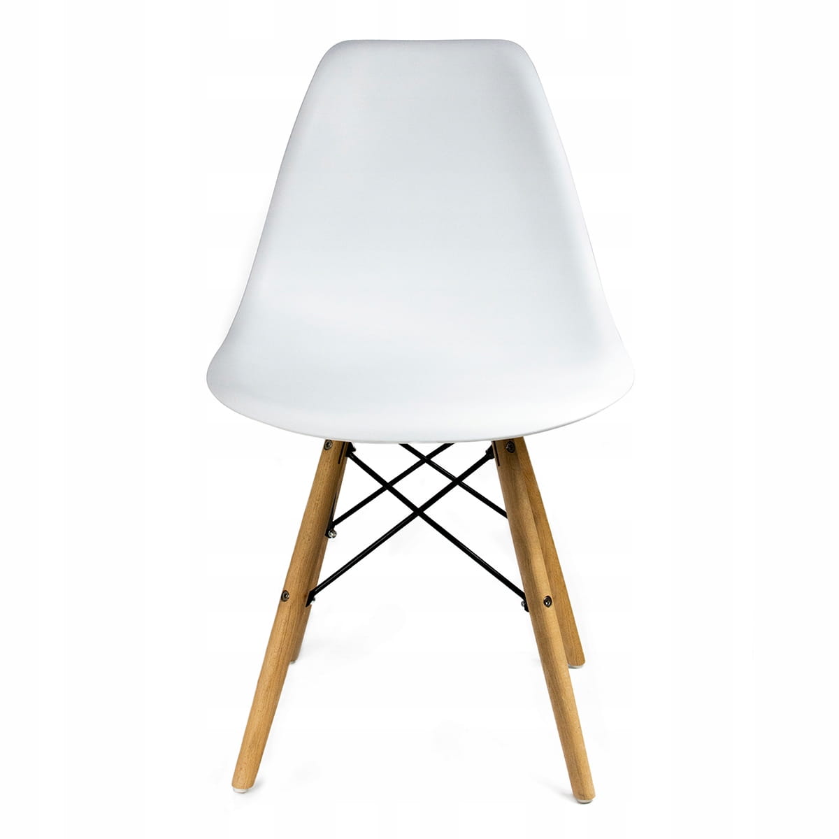 Krzesło białe plastikowe, nogi z drewna bukowego Eva