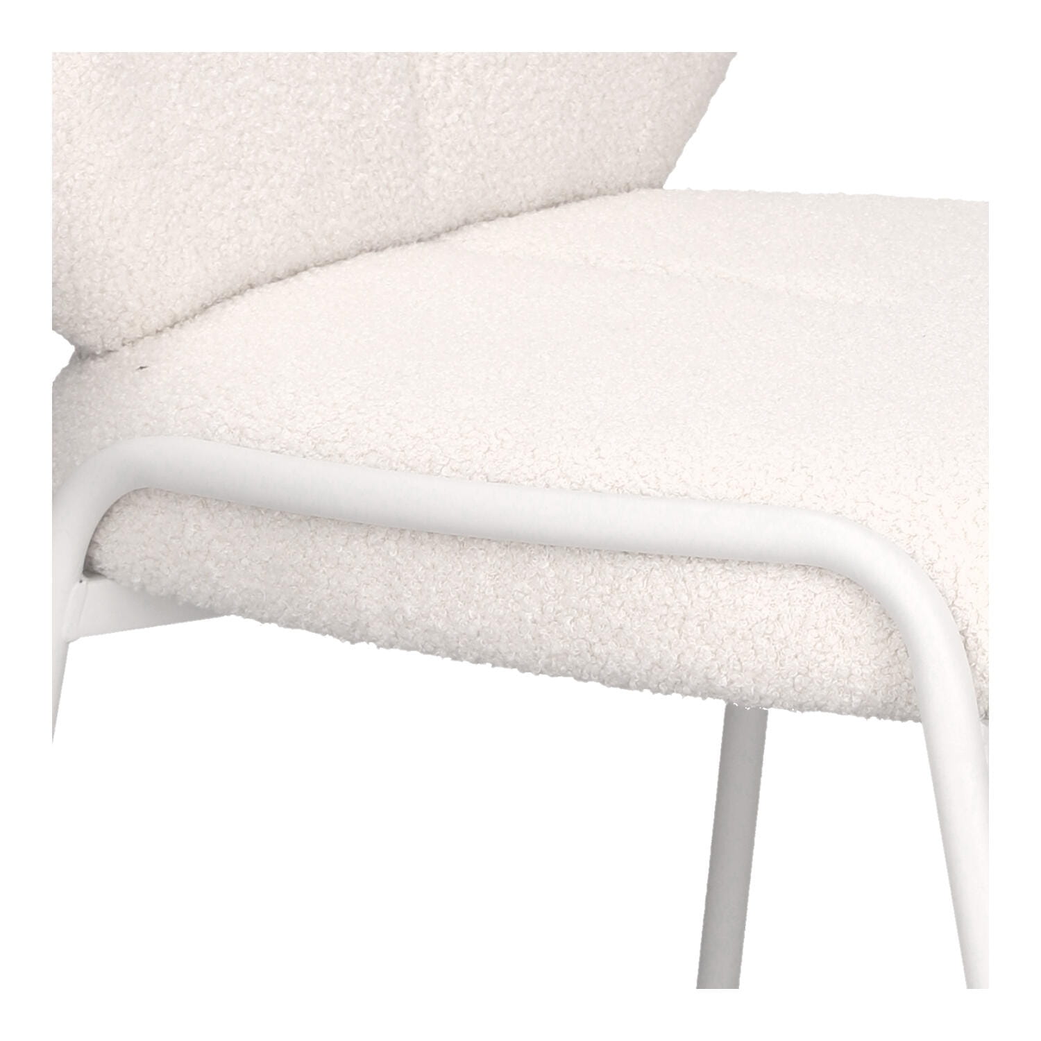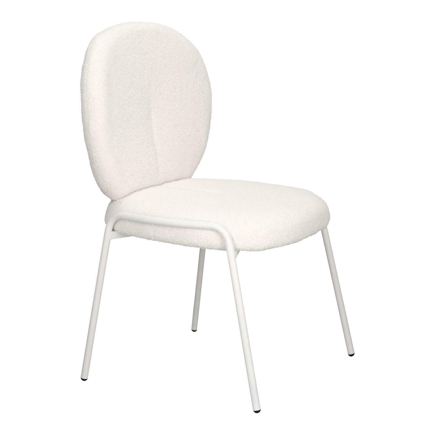 Stylowe krzesło Bianco to kwintesencja modnego, jasnego wnętrza w stylu boho. Cztery metalowe nogi malowane proszkowo na biało oraz miękka tapicerka boucle tworzą połączenie elegancji i komfortu, które wprowadzi do Twojego domu ciepły, przytulny klimat.