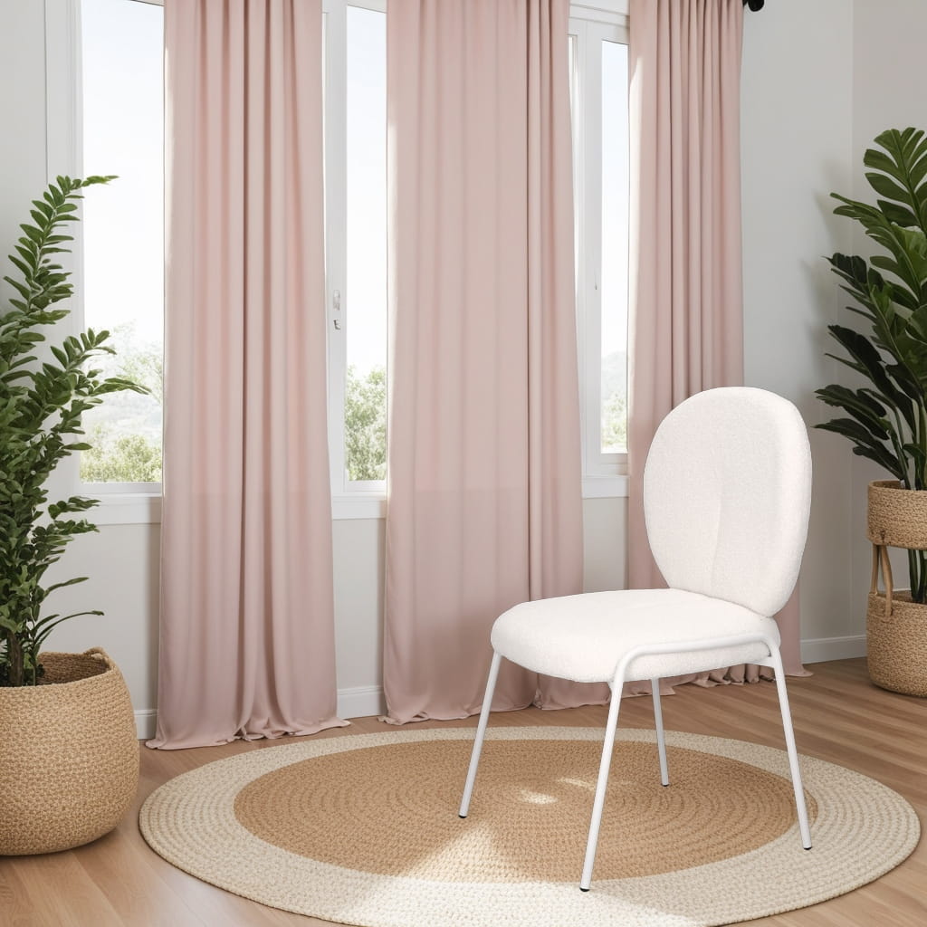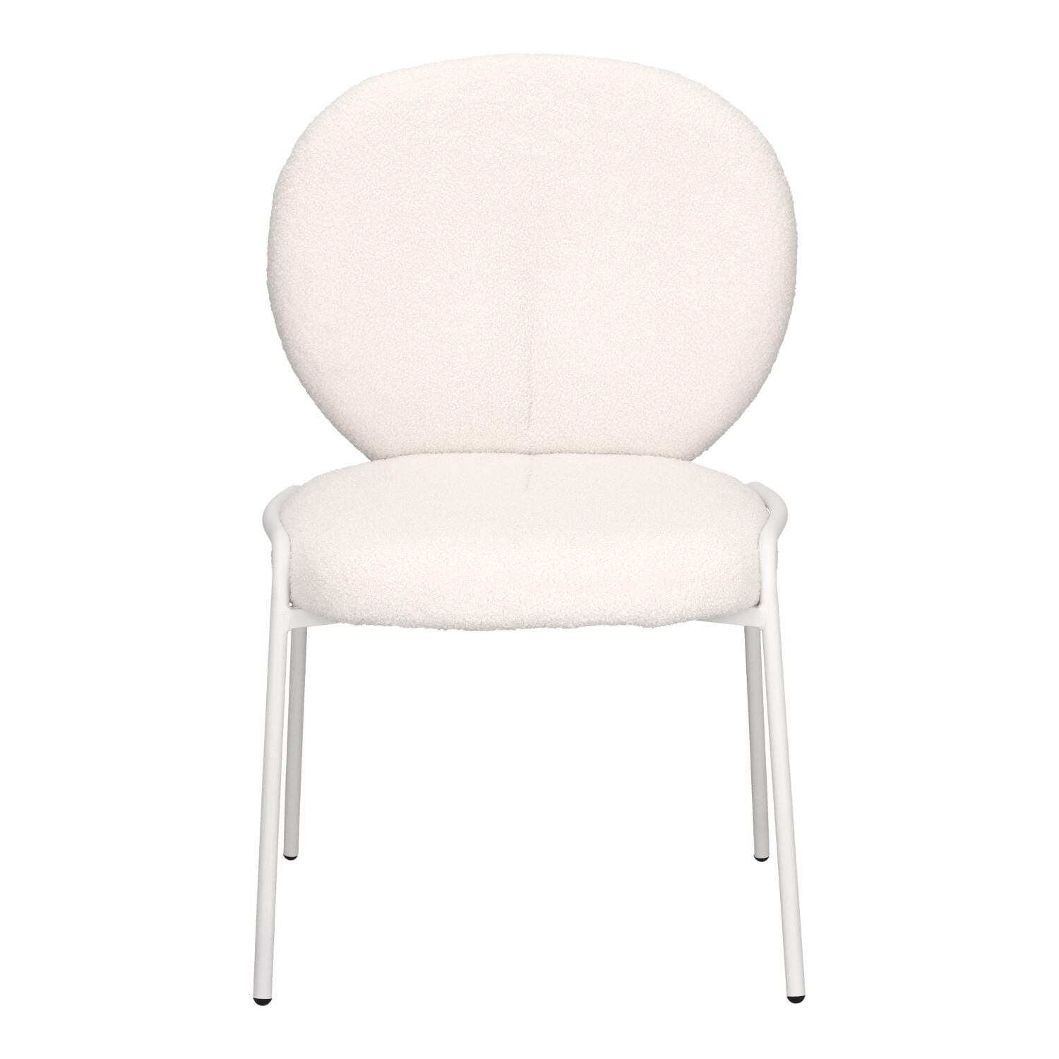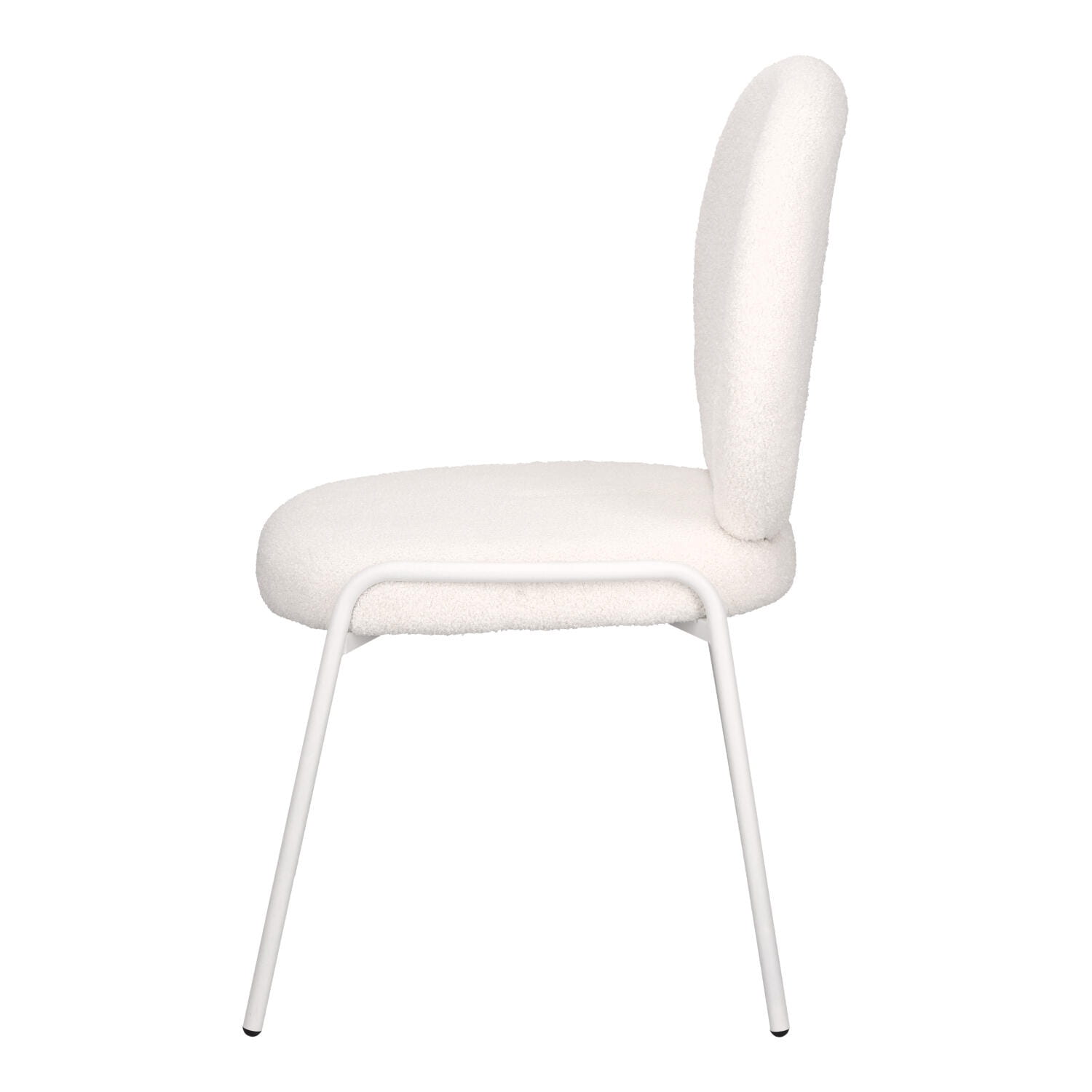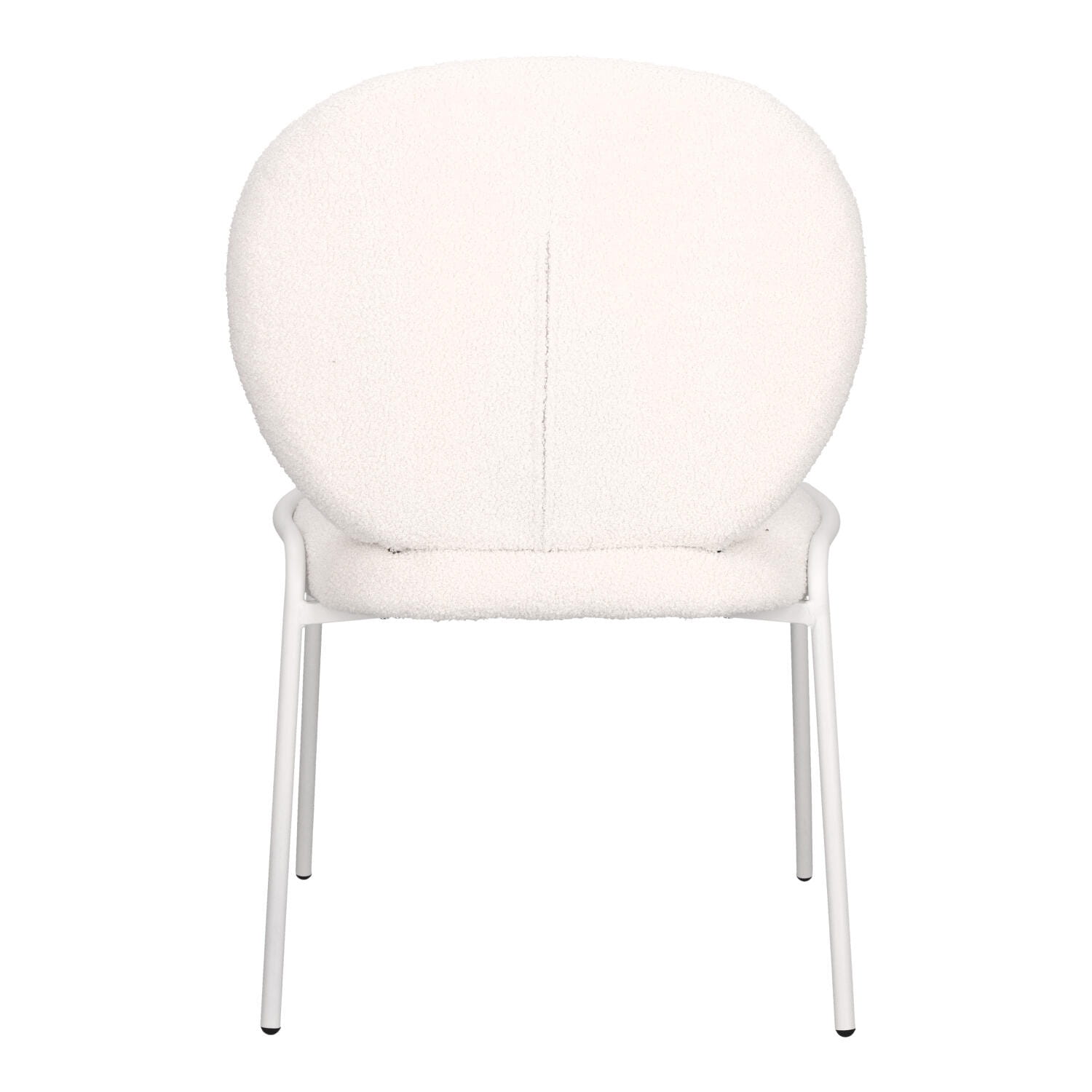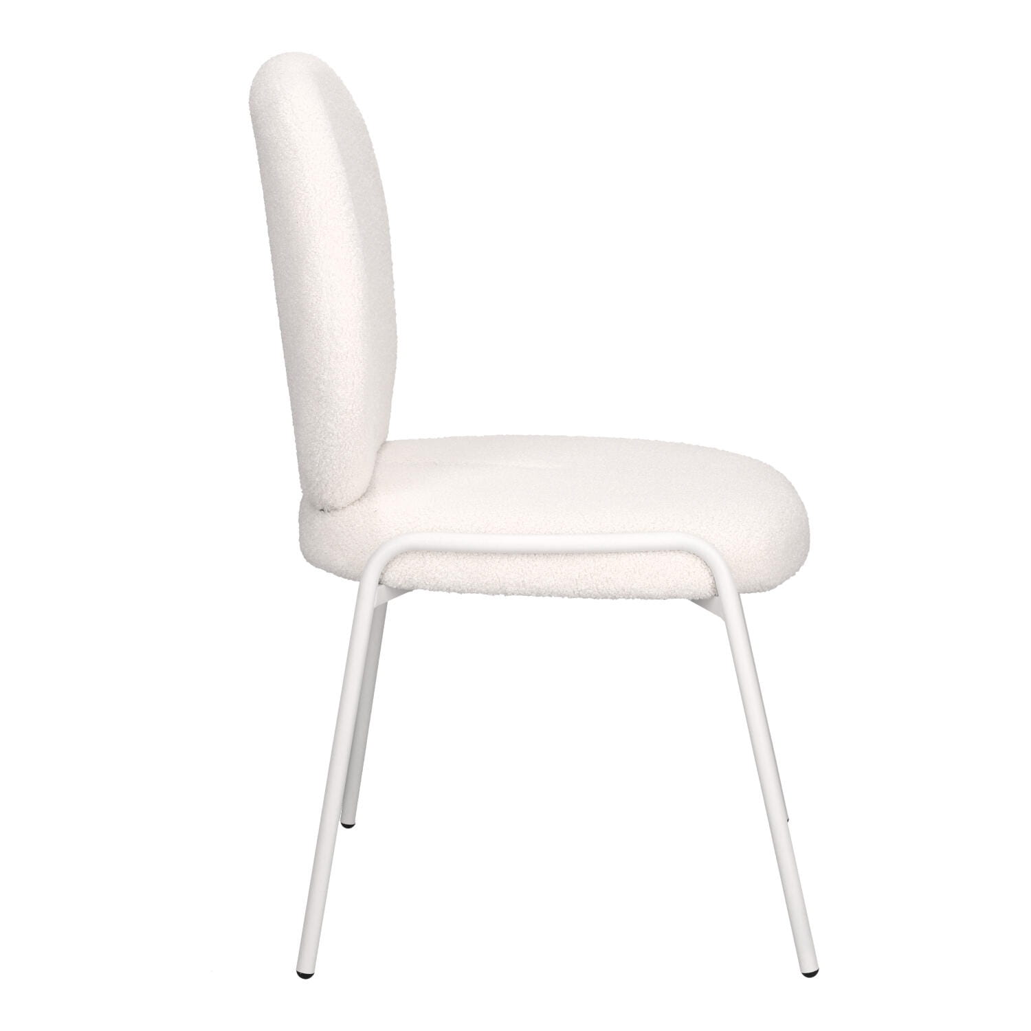 Miękka i stylowa tkanina boucle zapewnia wygodę podczas długiego siedzenia, a lekka forma krzesła sprawia, że świetnie komponuje się w jadalni, salonie czy sypialni. Idealne do aranżacji w naturalnych, jasnych i beżowych odcieniach.