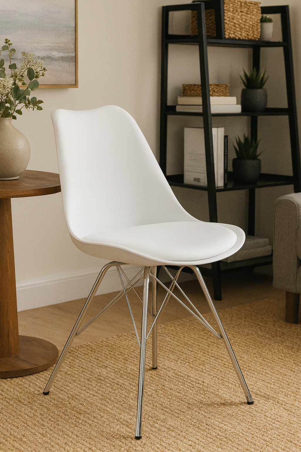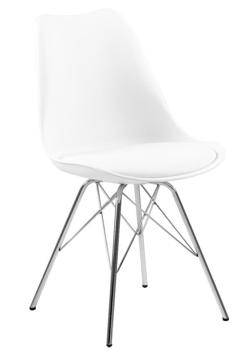 Krzesło białe z siedziskiem ze skóra ekologiczną, chromowana podstawa Eris PP