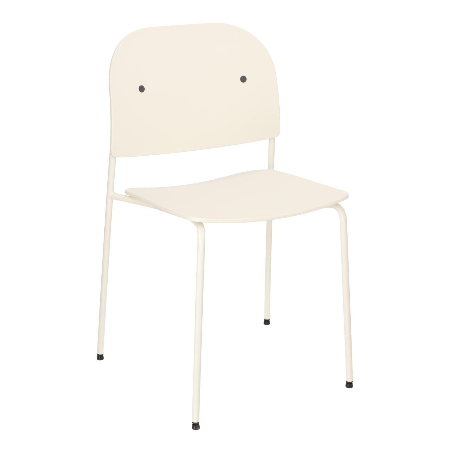Siedzisko oraz oparcie wykonano z trwałego tworzywa PP, które jest lekkie, praktyczne w codziennym użytkowaniu i łatwe do utrzymania w czystości.