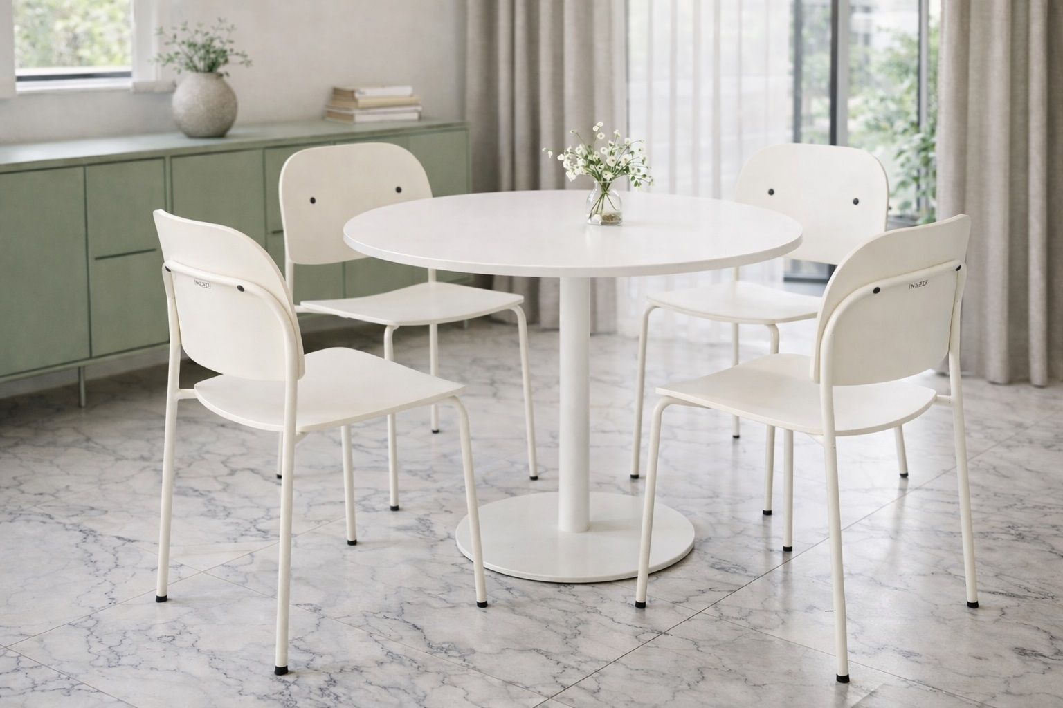 - Siedzisko i oparcie z tworzywa PP – lekkie, trwałe i łatwe do utrzymania w czystości