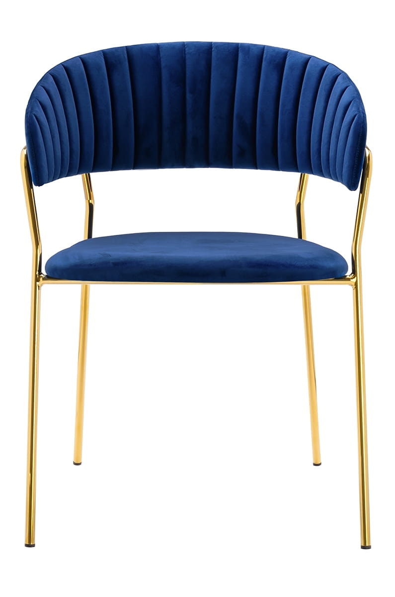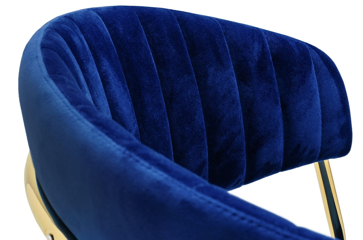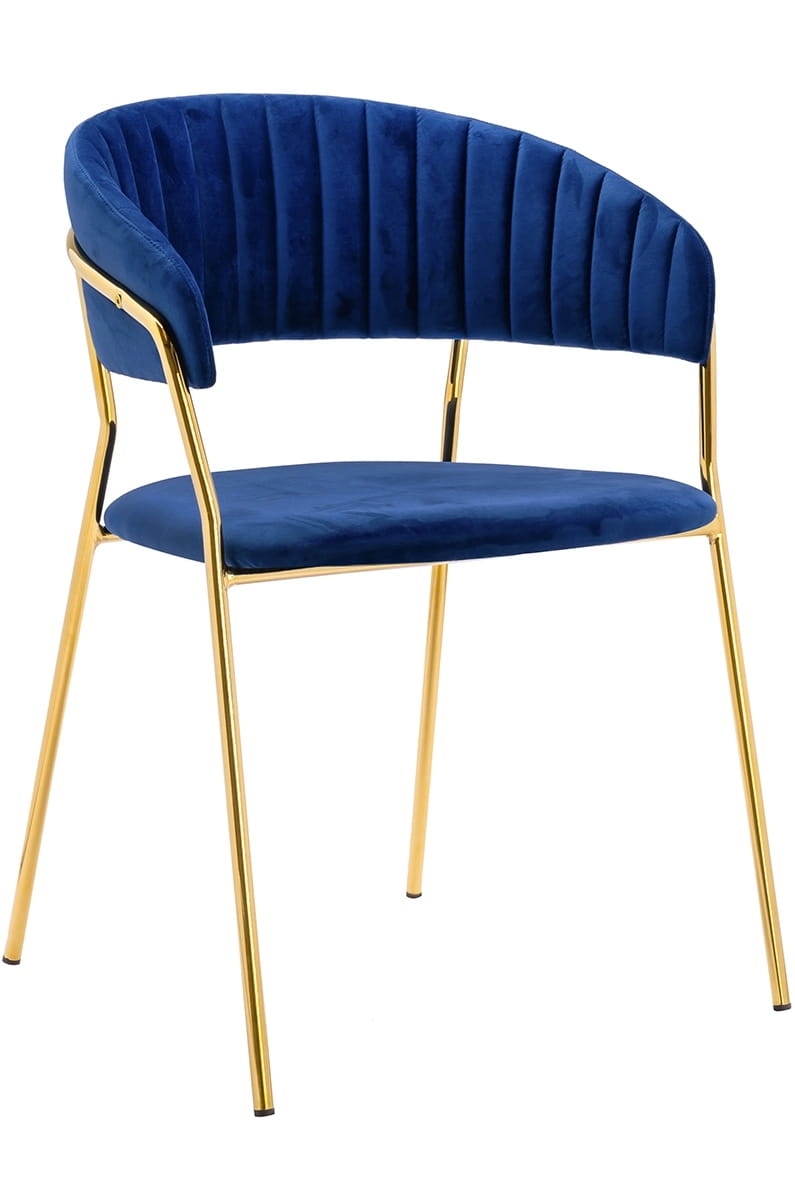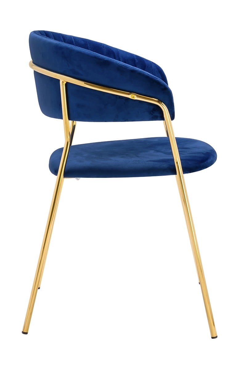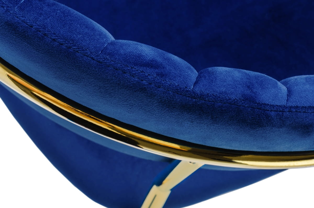 Krzesło ciemne niebieskie, welurowe, złota podstawa Margo