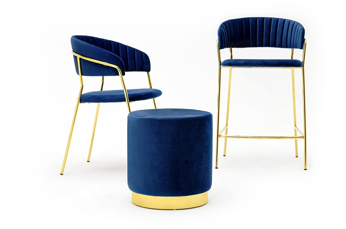 Tapicerowane miękkim i przyjemnym w dotyku welurem w ciemnym niebieskim odcieniu, Margo emanuje luksusem i wyrafinowaniem.