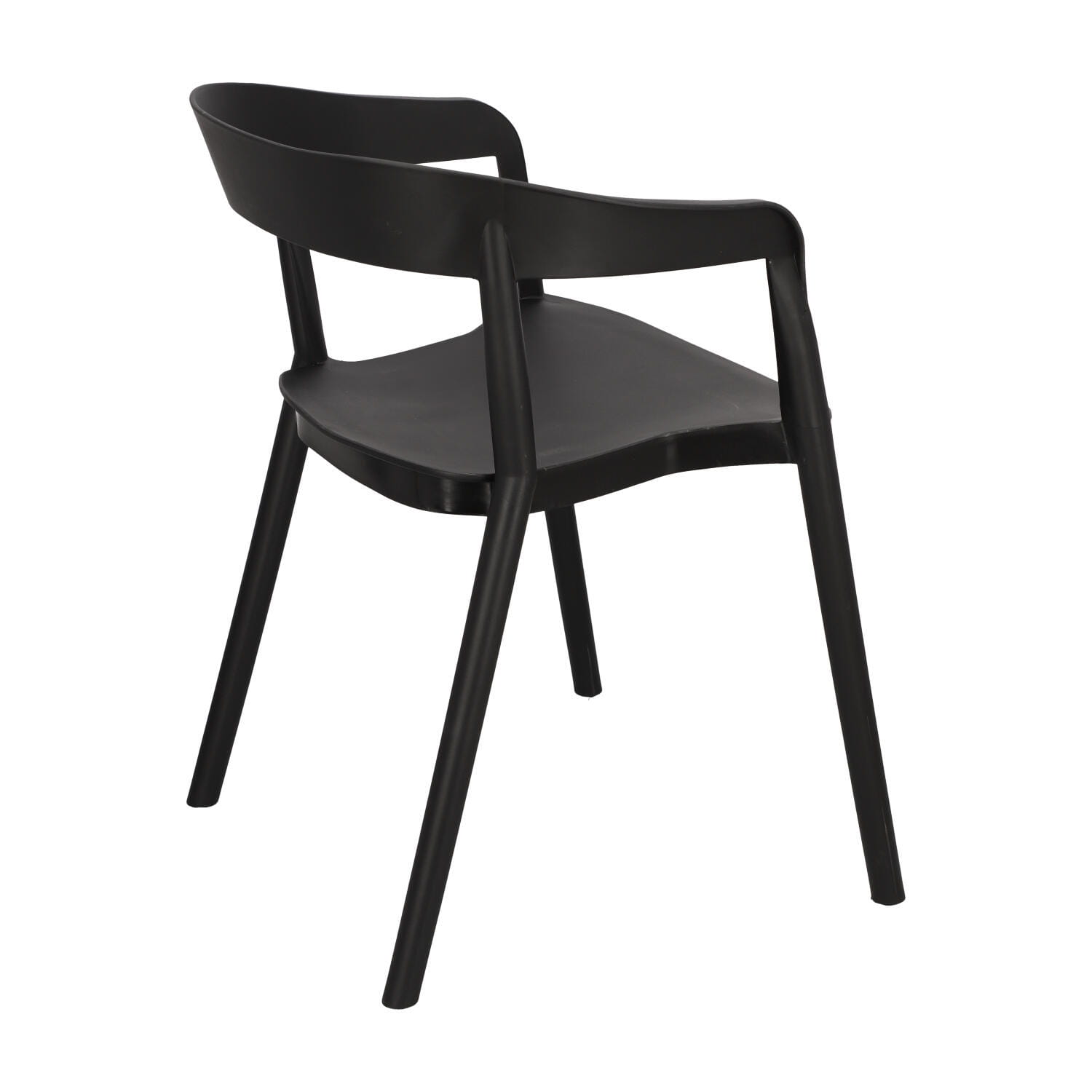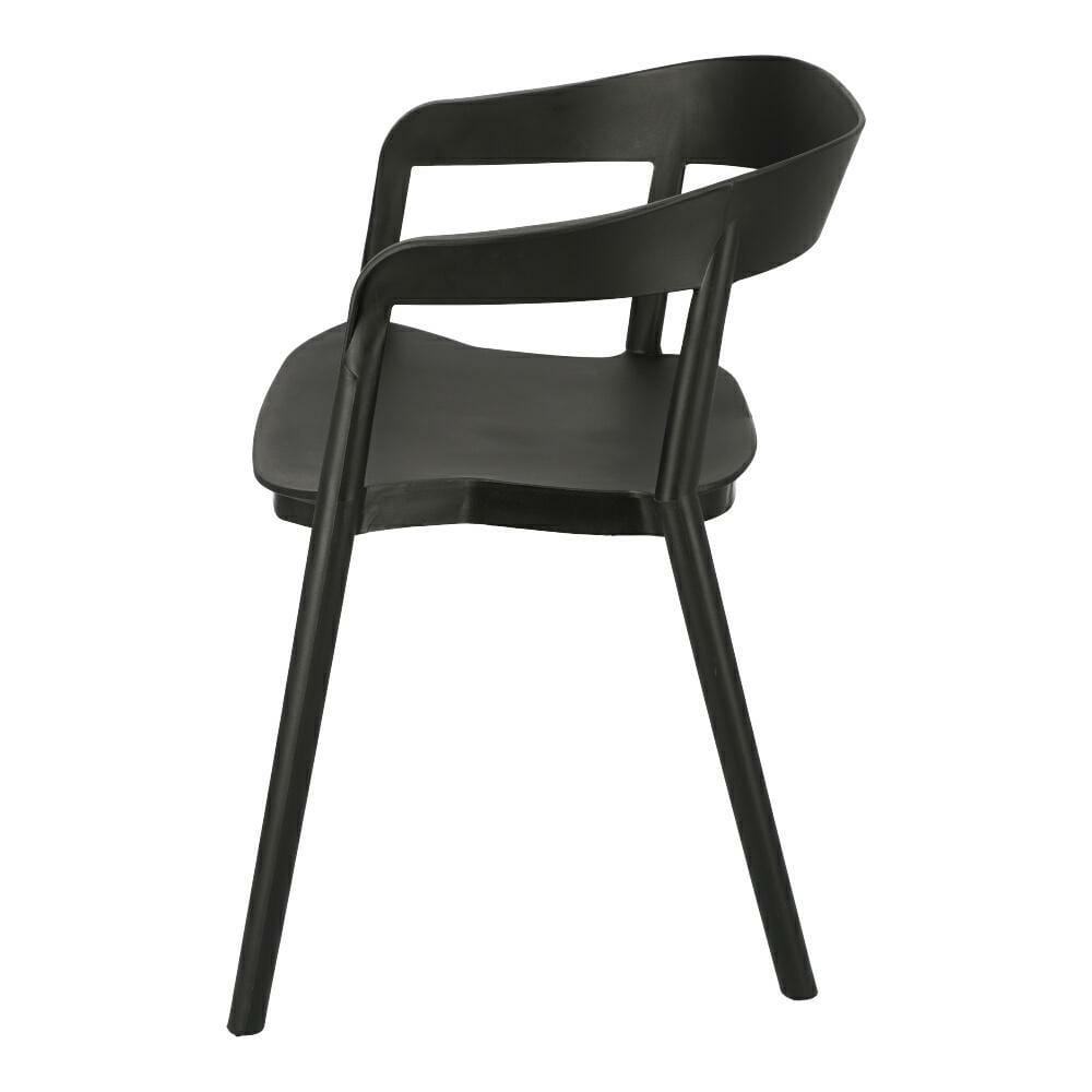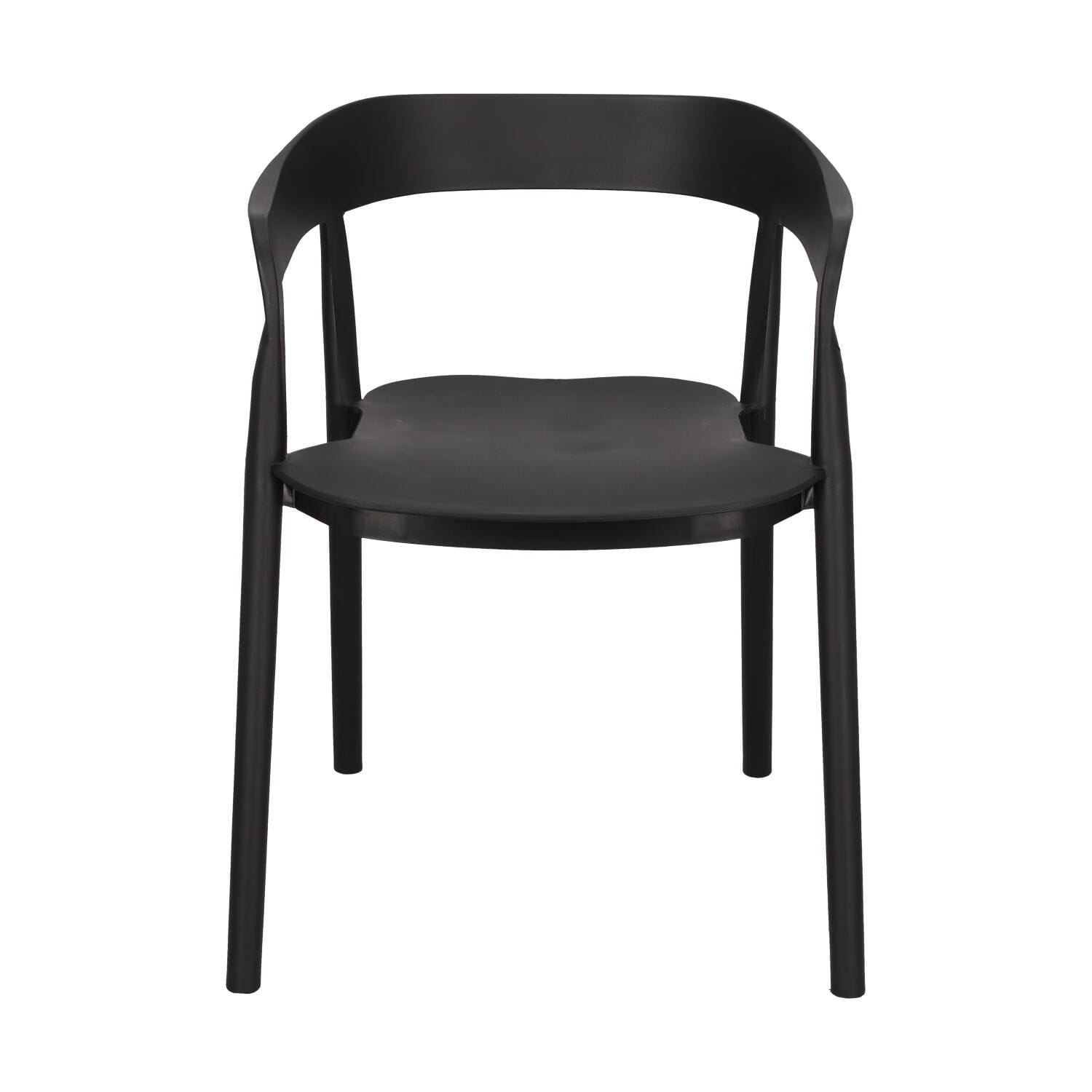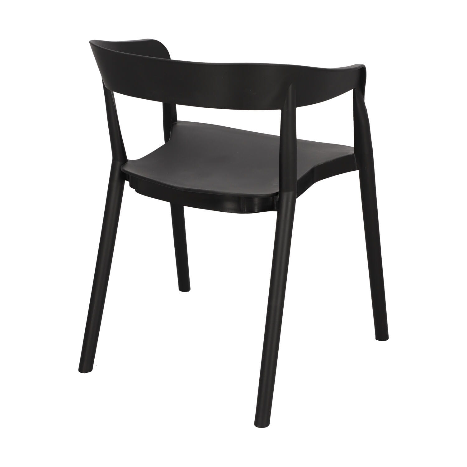 Całe krzesło zostało zrobione z tworzywa w kolorze czarnym.