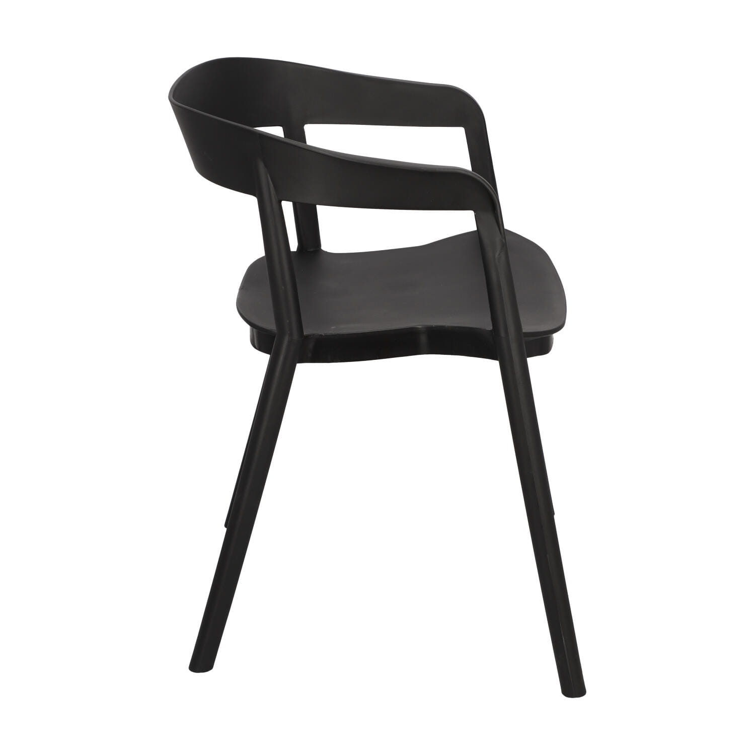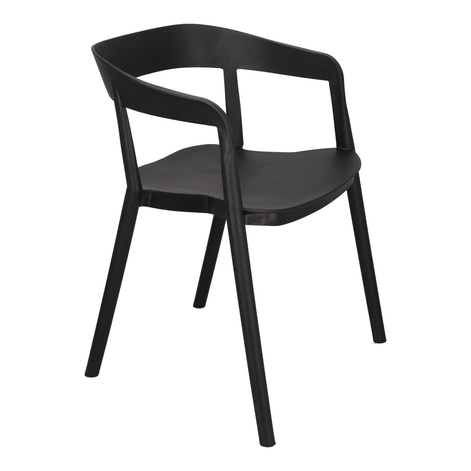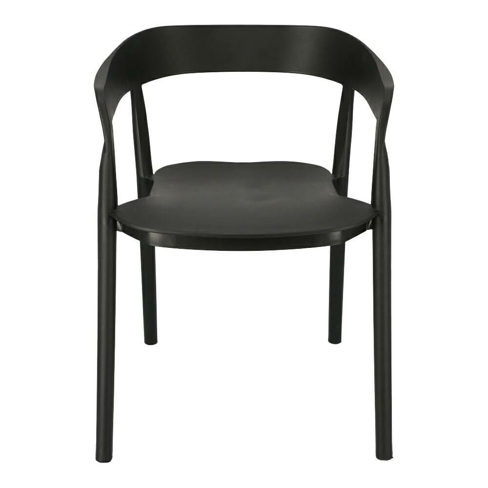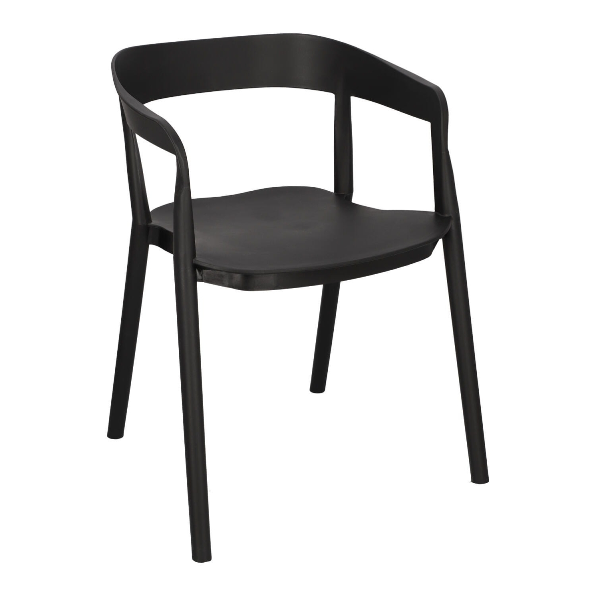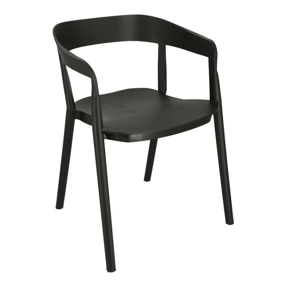 Całe krzesło zostało zrobione z tworzywa w kolorze czarnym.