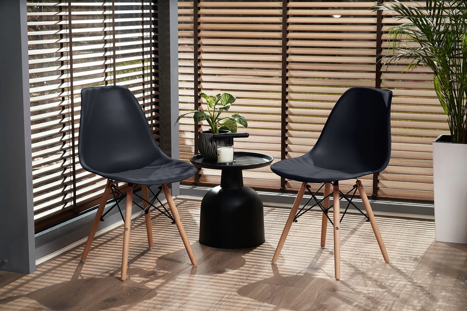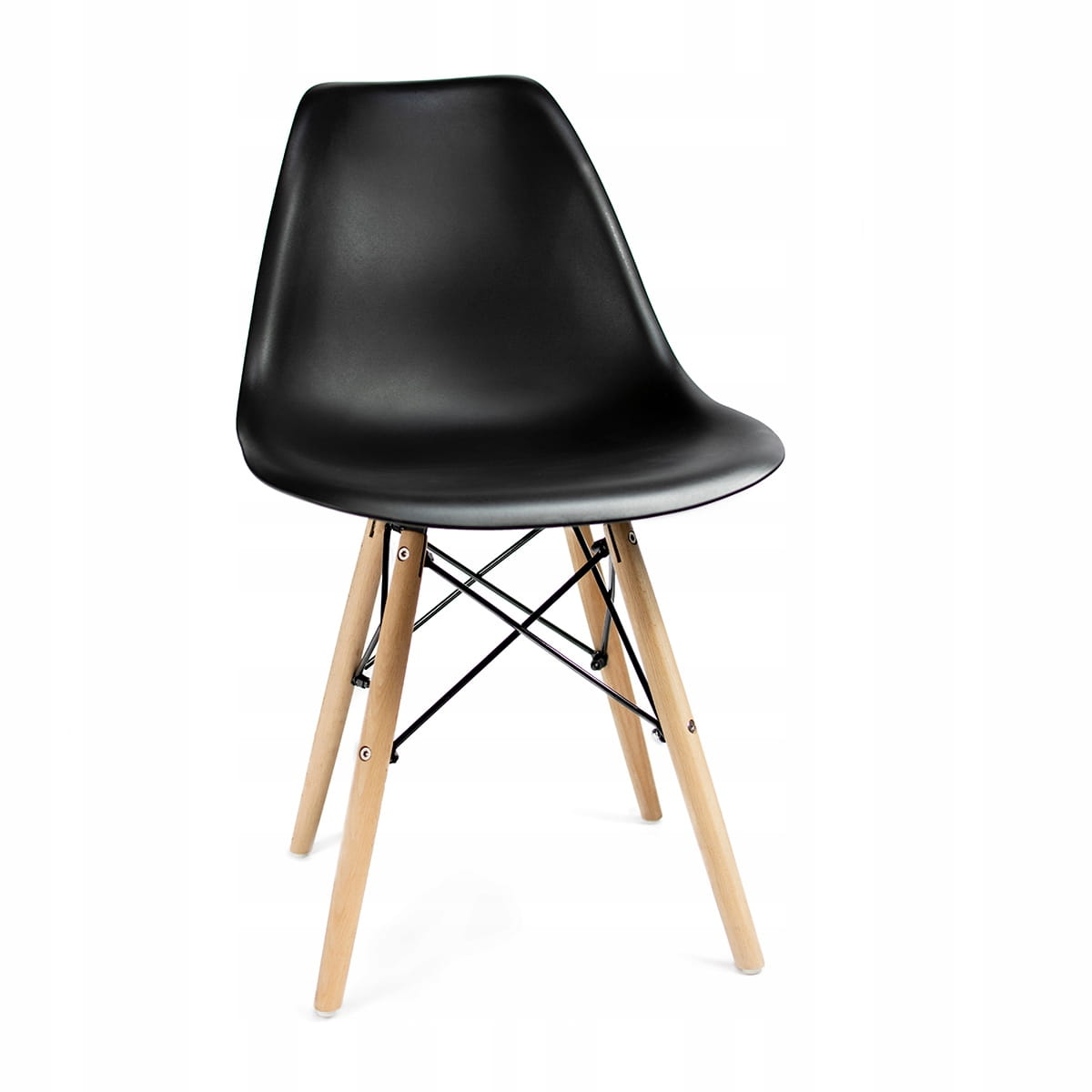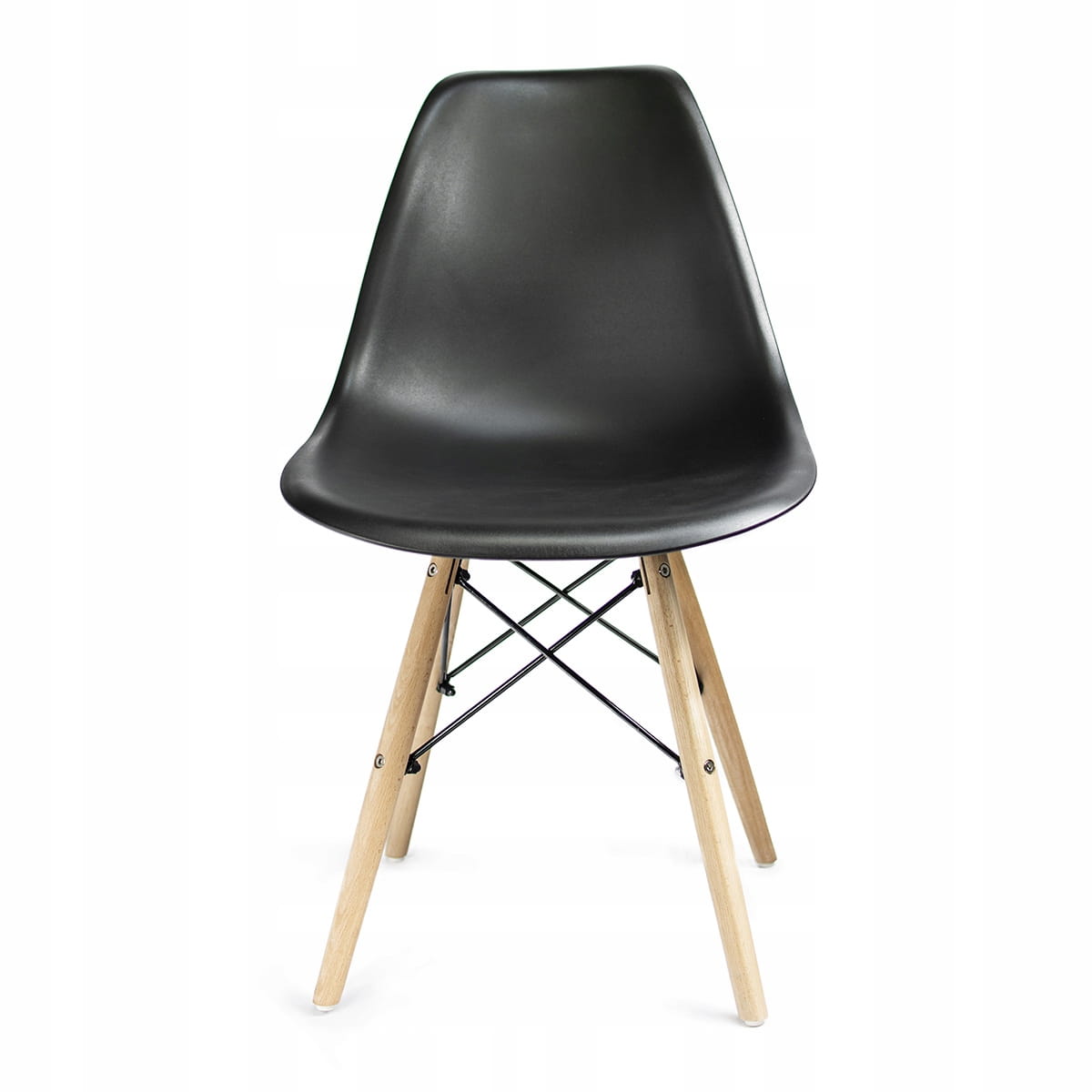 Krzesło czarne plastikowe, nogi z drewna bukowego Eva