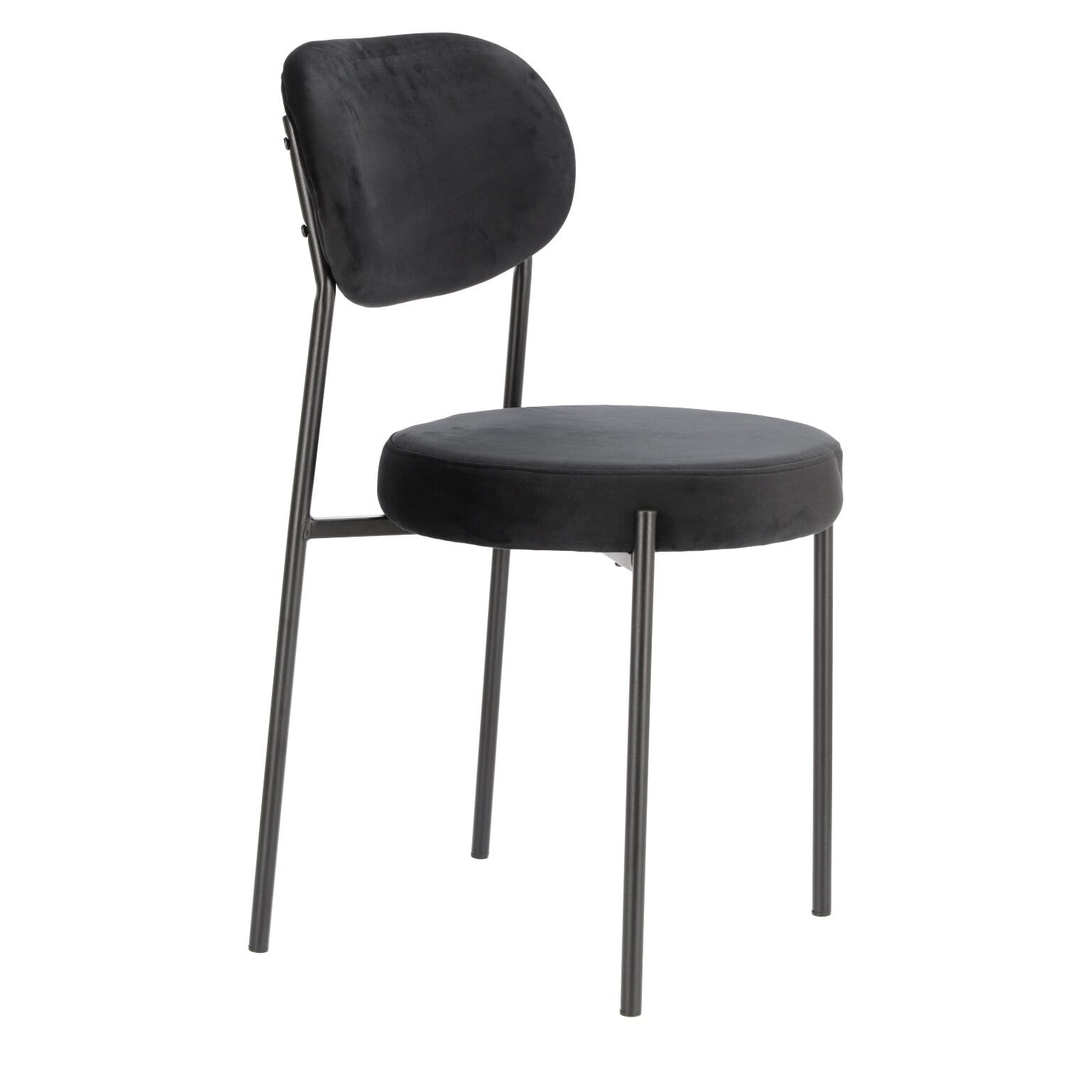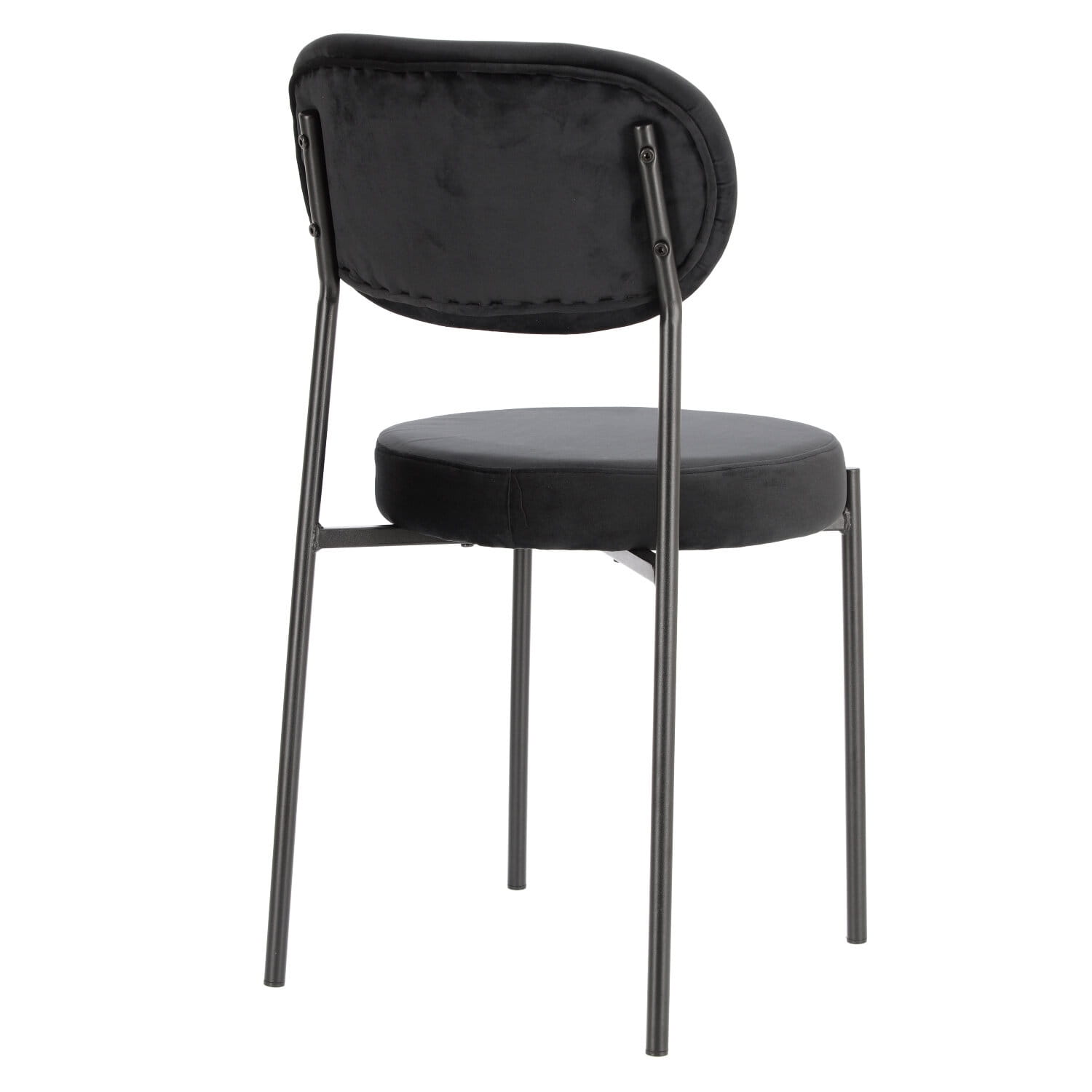 Okrągłe siedzisko oraz wyprofilowane oparcie zapewniają komfort nawet podczas długiego siedzenia, a miękka tkanina velvet nadaje mu luksusowy charakter.