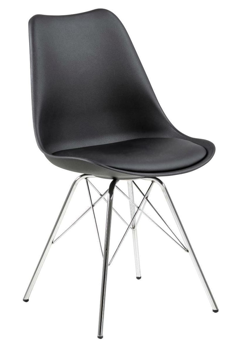 Krzesło czarne z siedziskiem ze skóra ekologiczną, chromowana podstawa Eris PP
