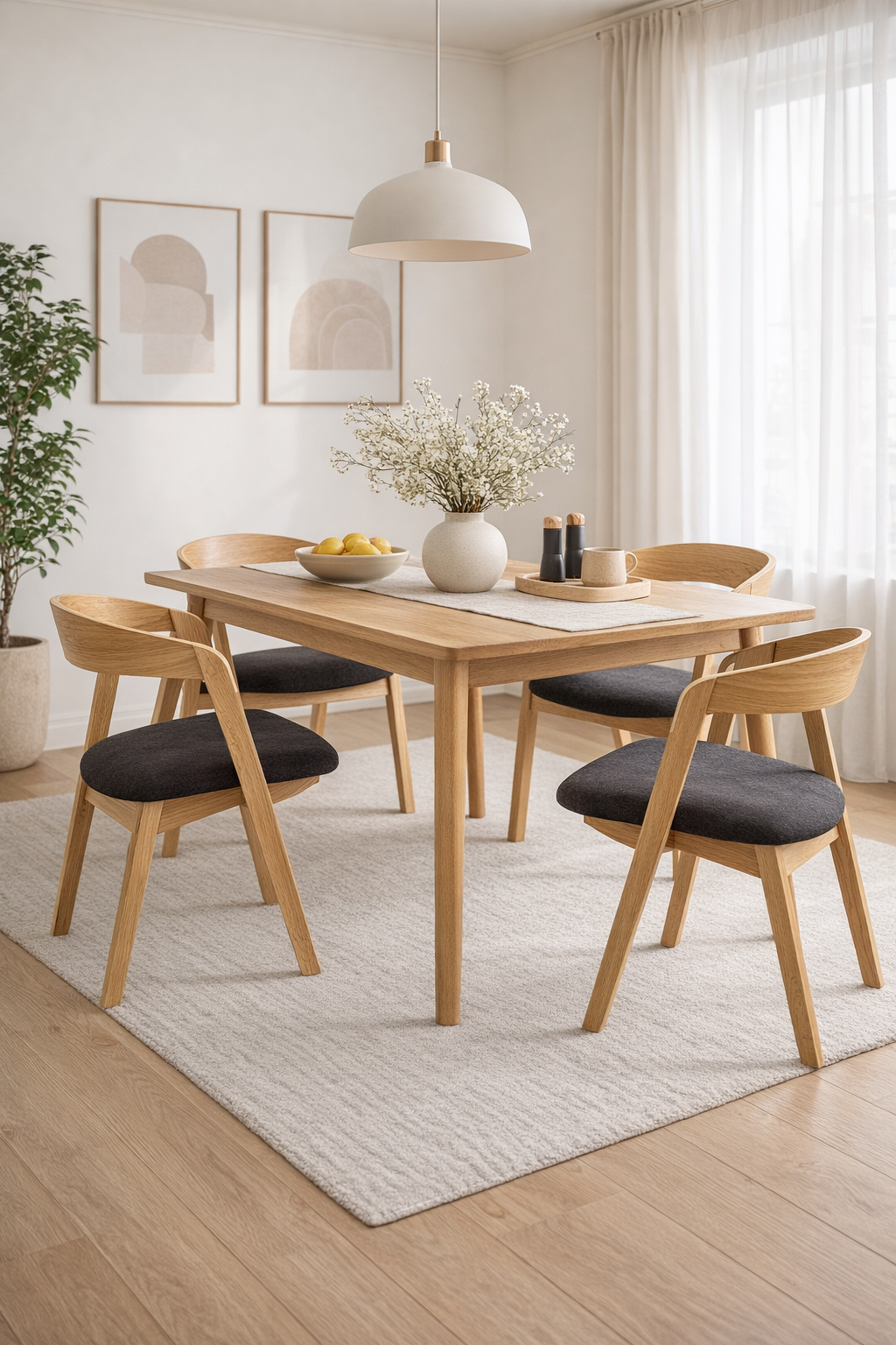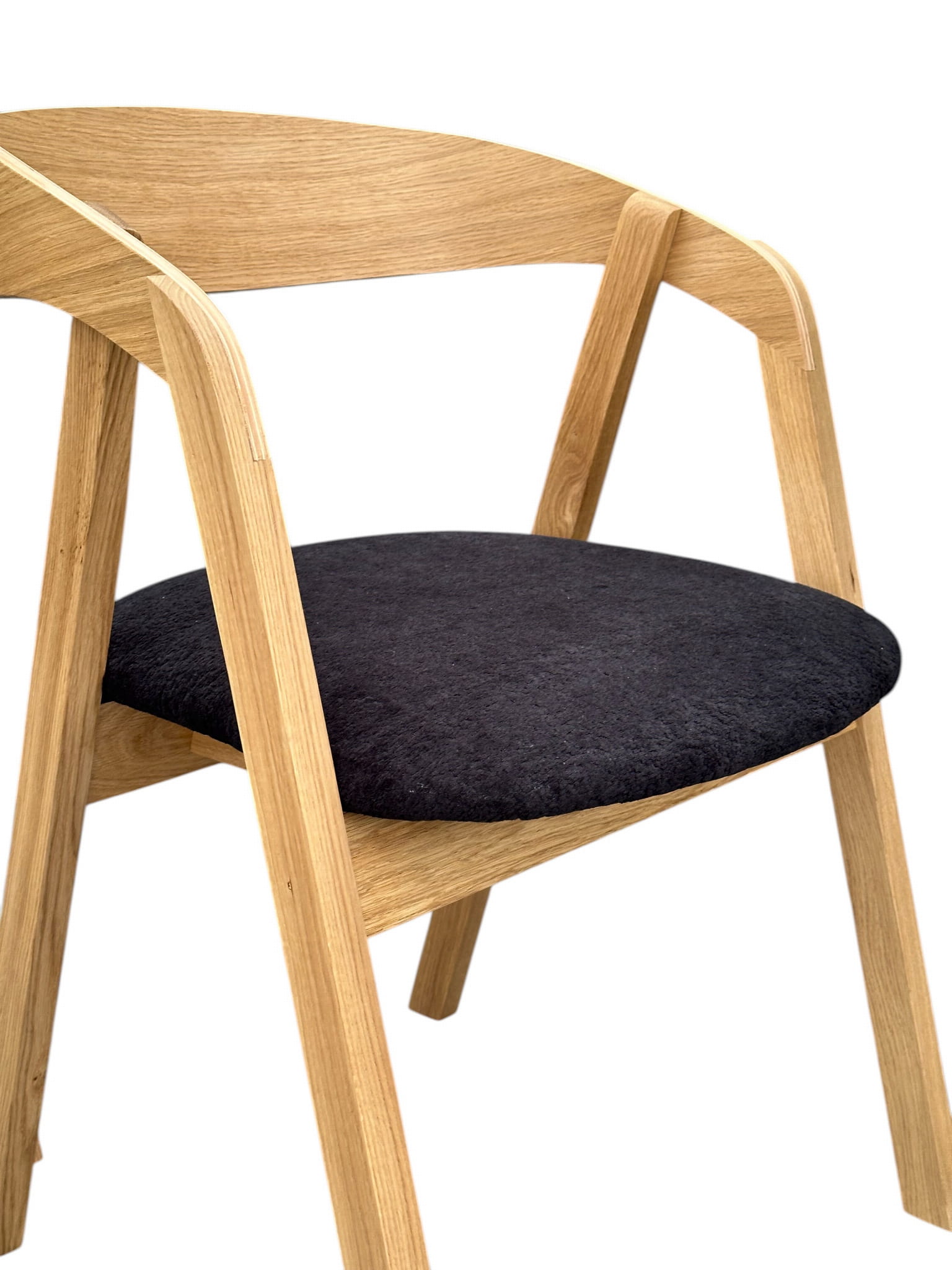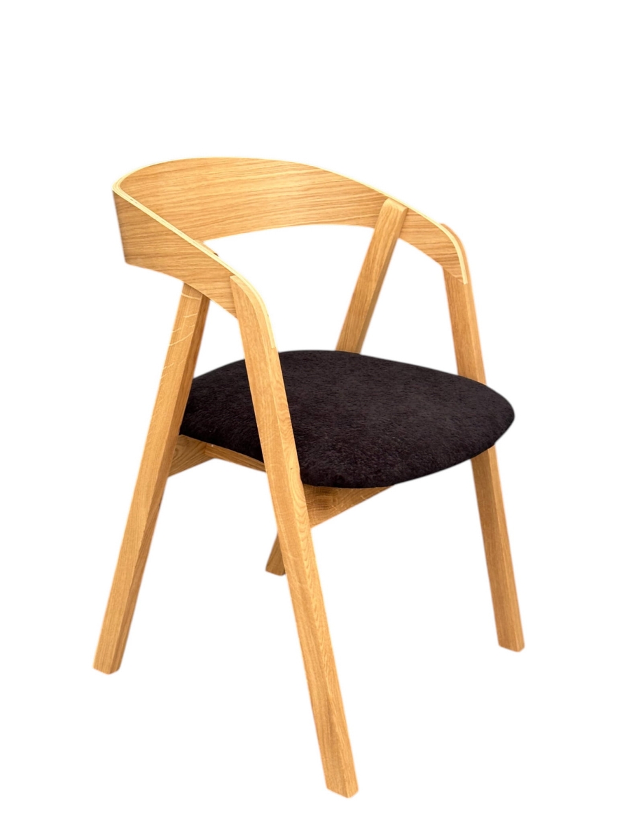 Krzesło Jenny łączy solidny stelaż z drewna dębowego z tapicerowanym siedziskiem, oferując wygodę i ponadczasowy styl.
