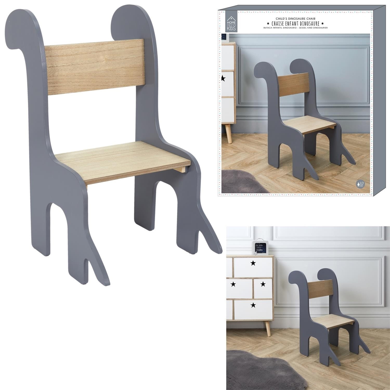 Krzesło dziecięce szare w kształcie dinozaura Dino