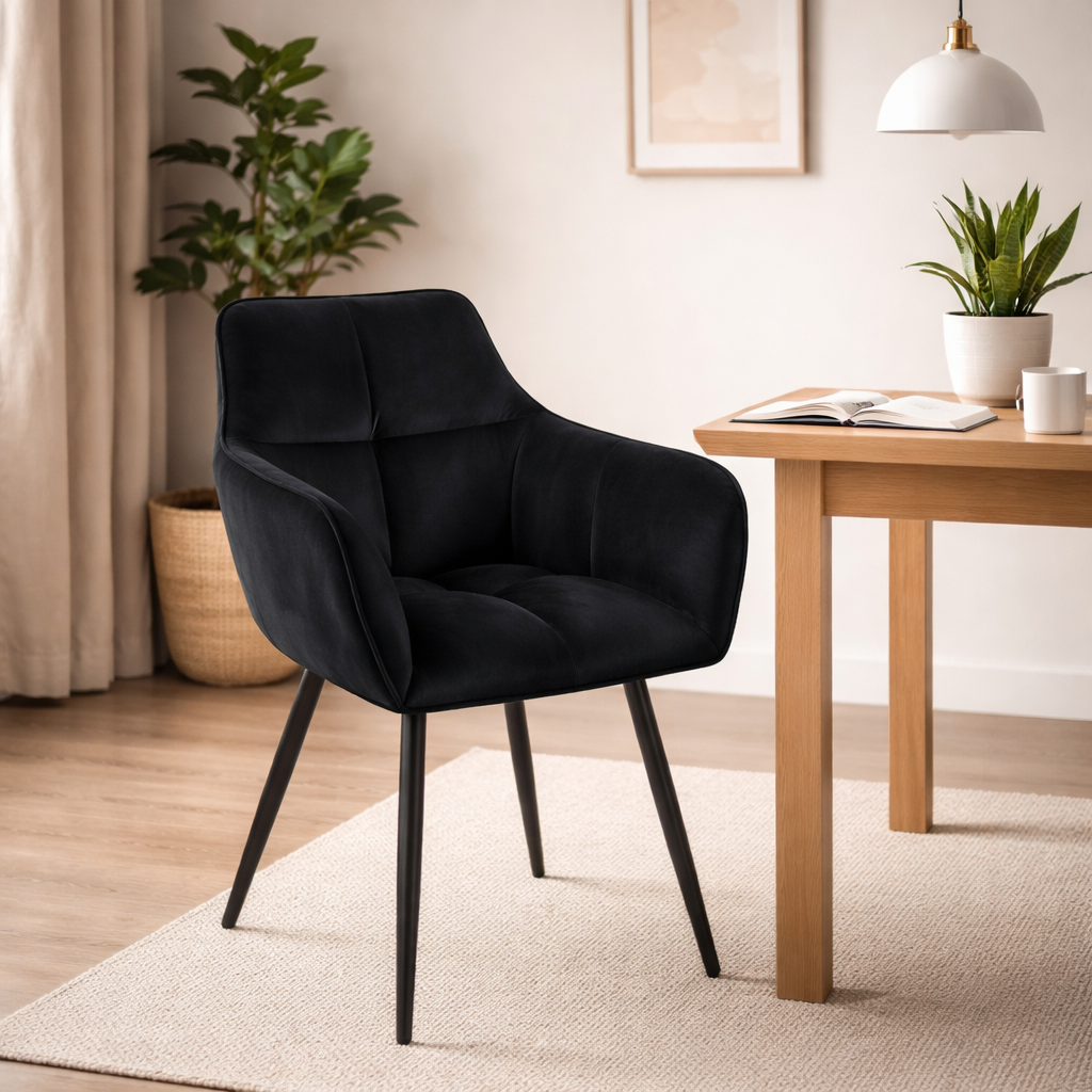Dzięki kompaktowym wymiarom model Kaira sprawdzi się zarówno przy stole, toaletce, jak i jako dodatkowe krzesło do salonu.