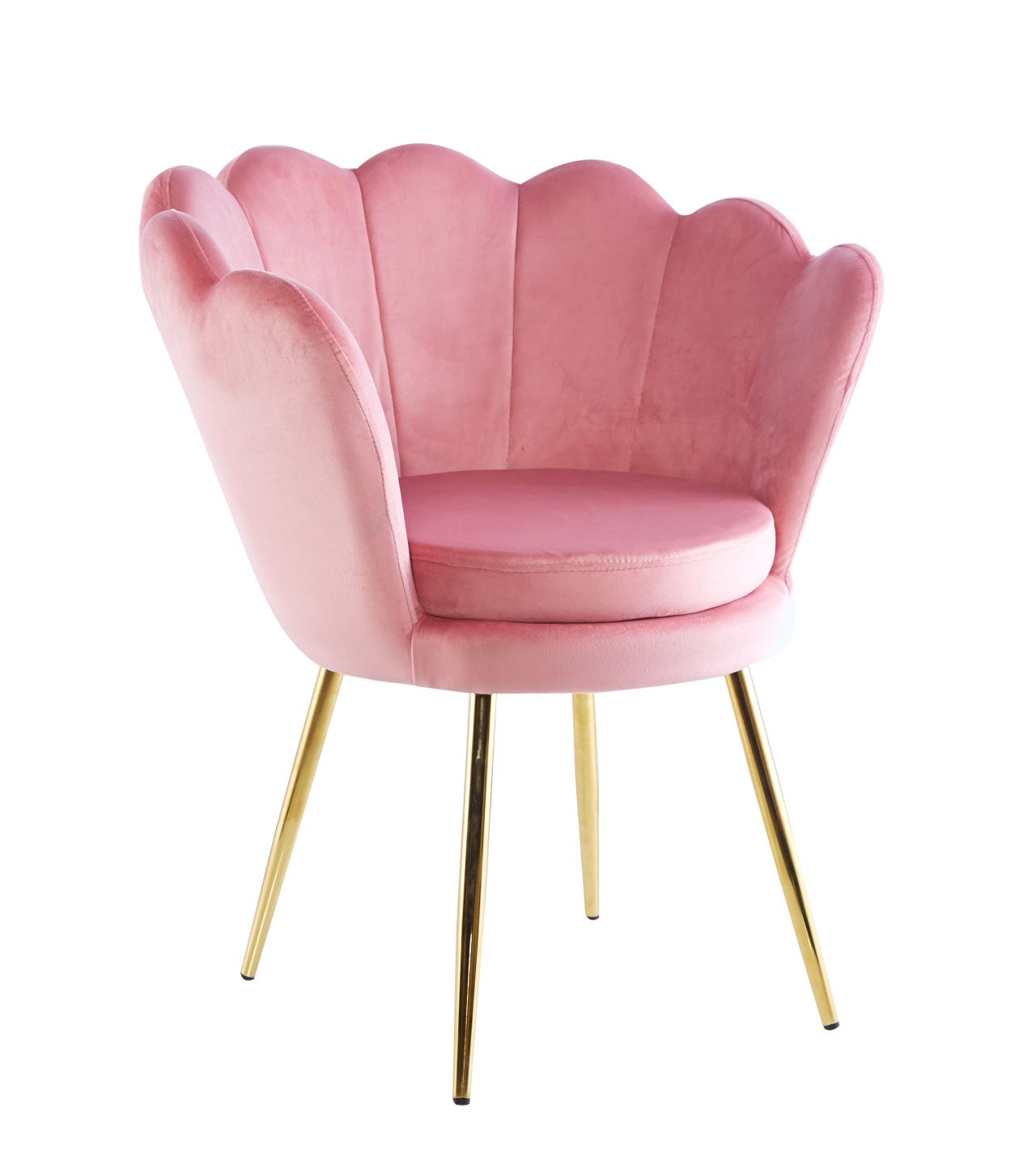 Krzesło muszelka różowe, ze złotymi nogami Shell