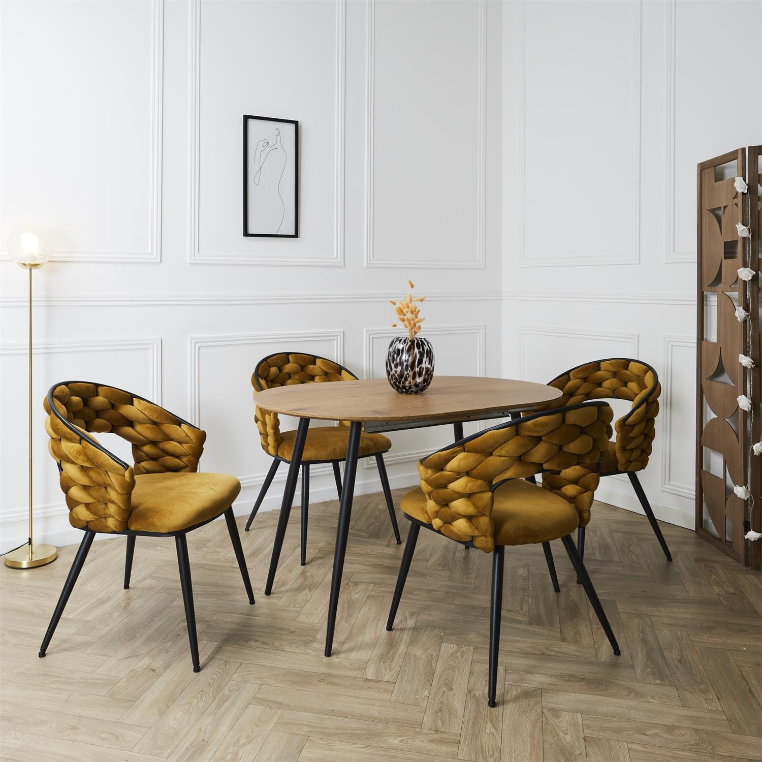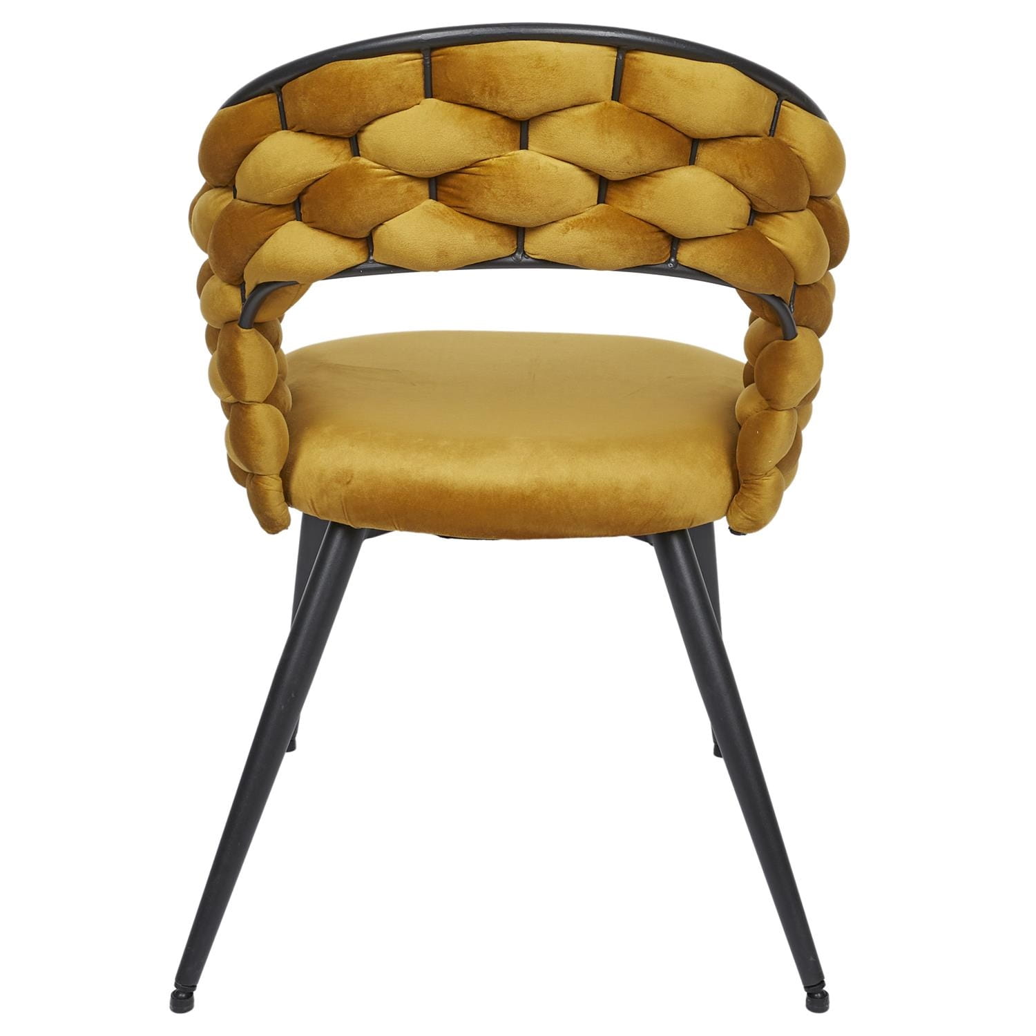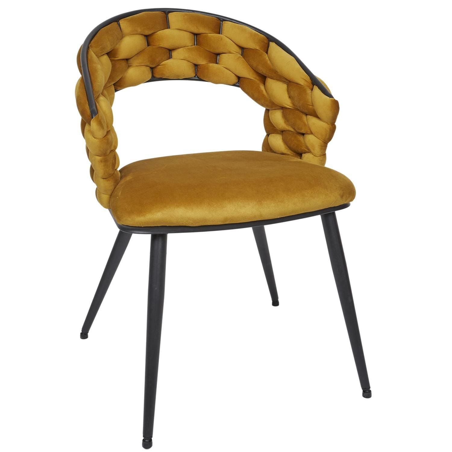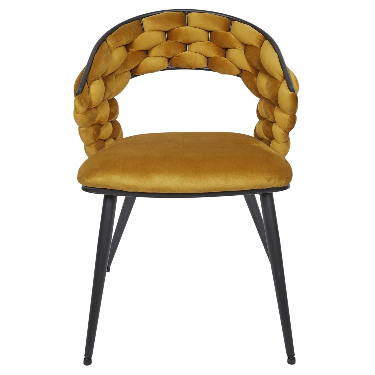 Krzesło musztardowe plecione, z czarnymi nogami do salonu Sawyer
