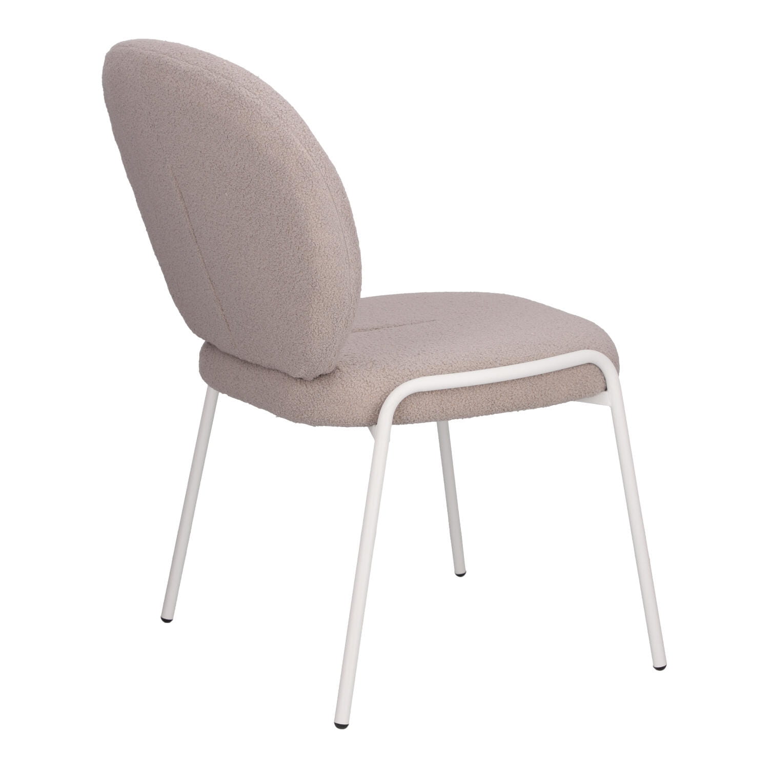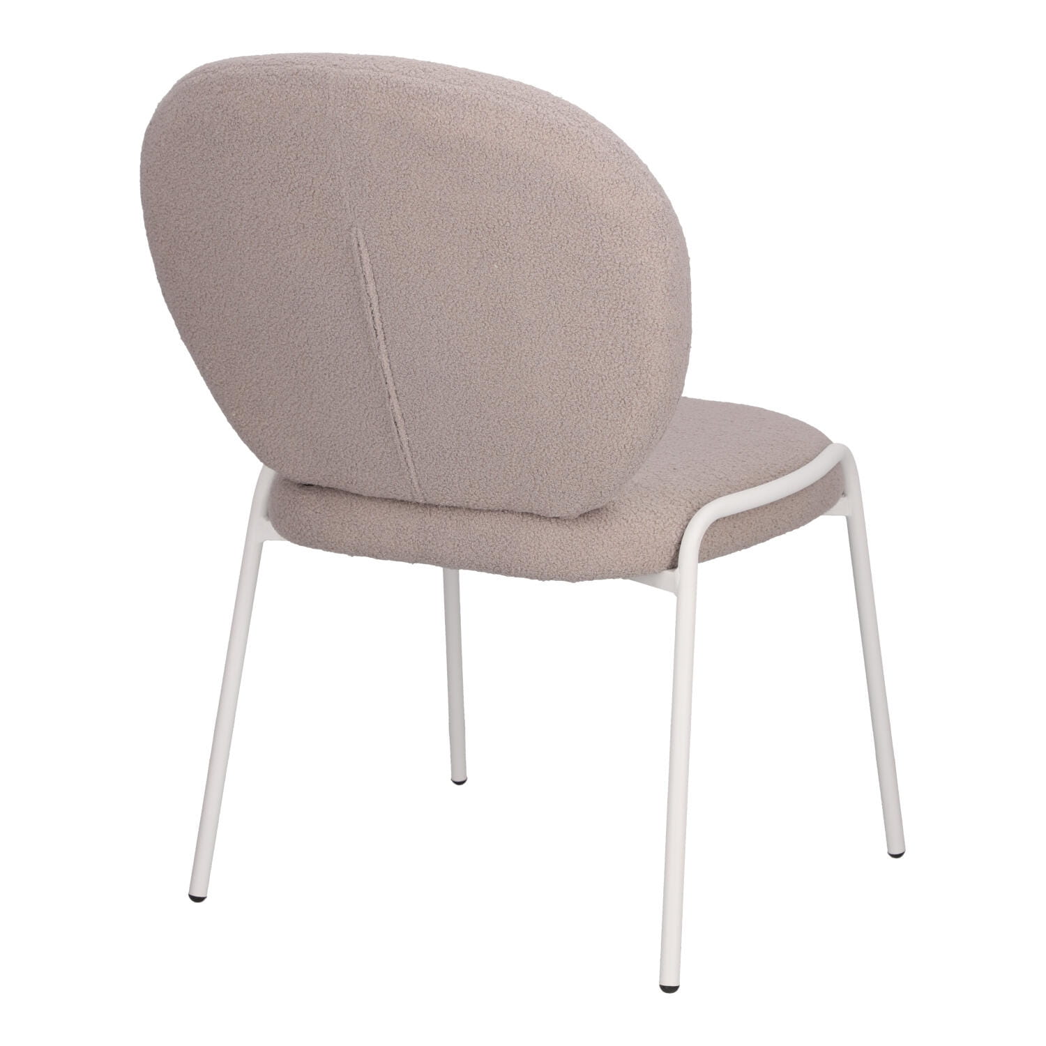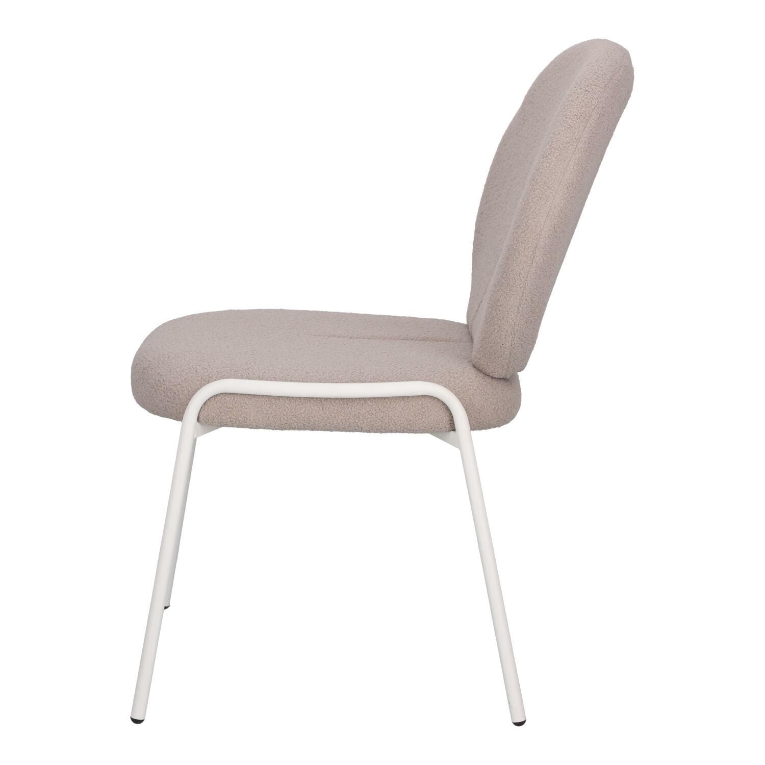 Stylowe krzesło Bianco to elegancki mebel, który wniesie do Twojego wnętrza ciepło i przytulny klimat. Cztery metalowe nogi malowane proszkowo na biało nadają mu lekkości, a tapicerka z miękkiej tkaniny boucle zapewnia komfort oraz modny, naturalny wygląd.