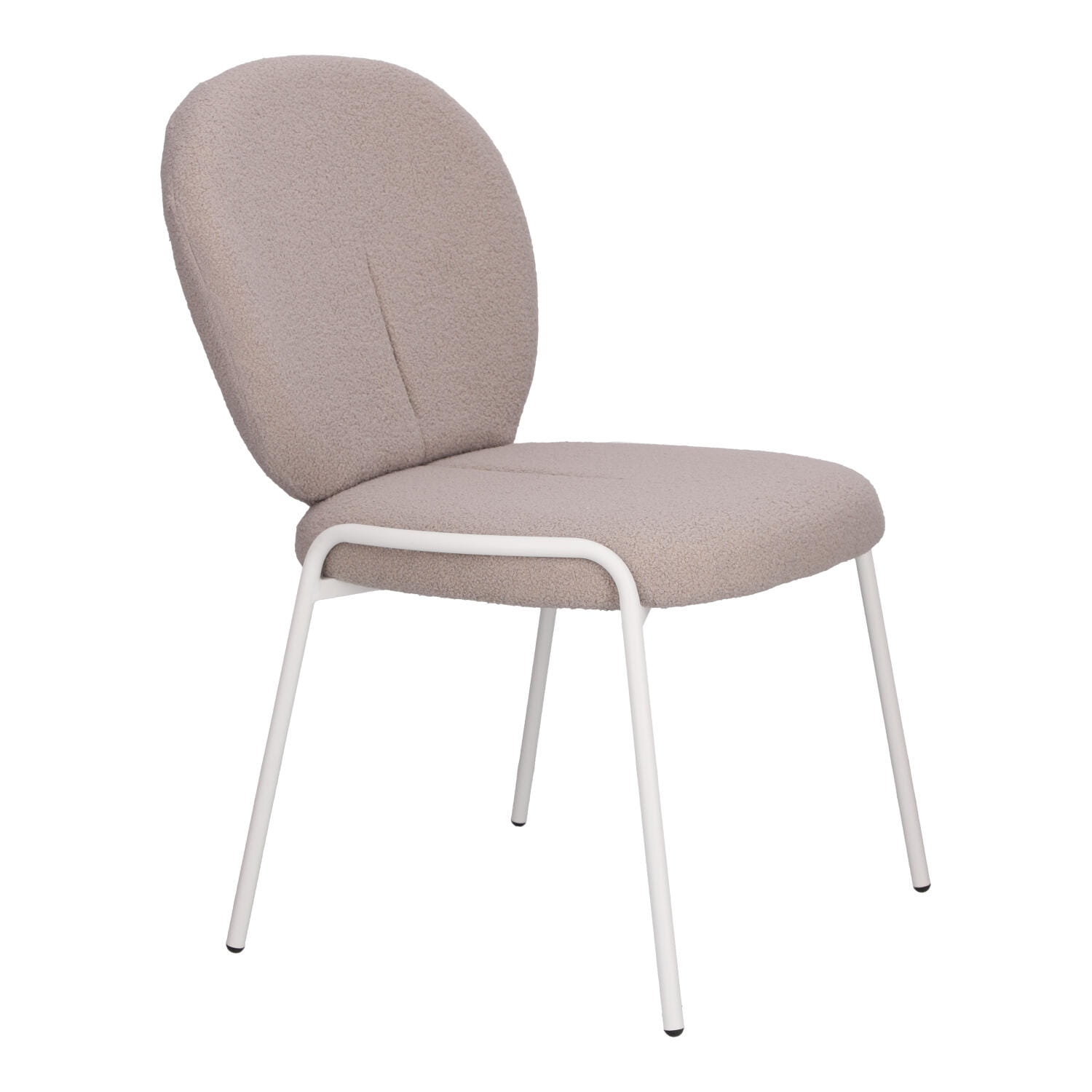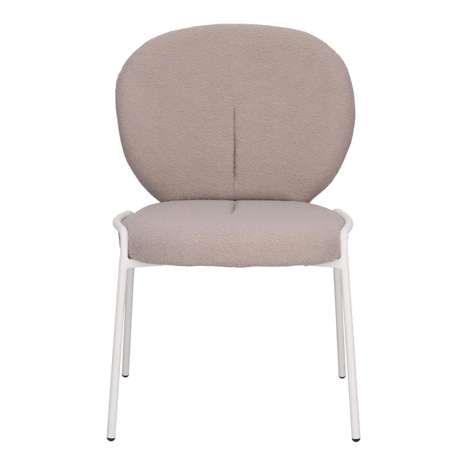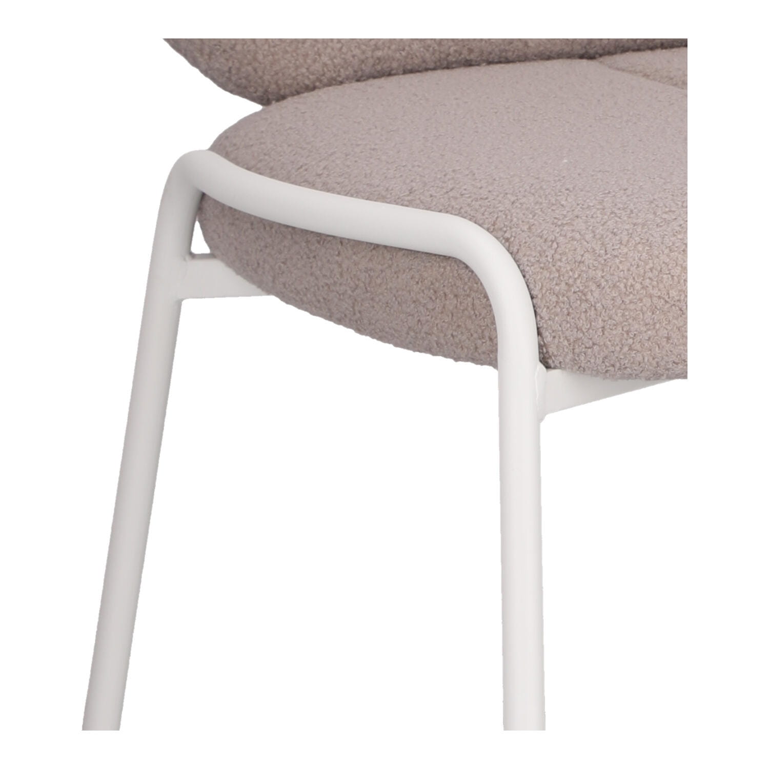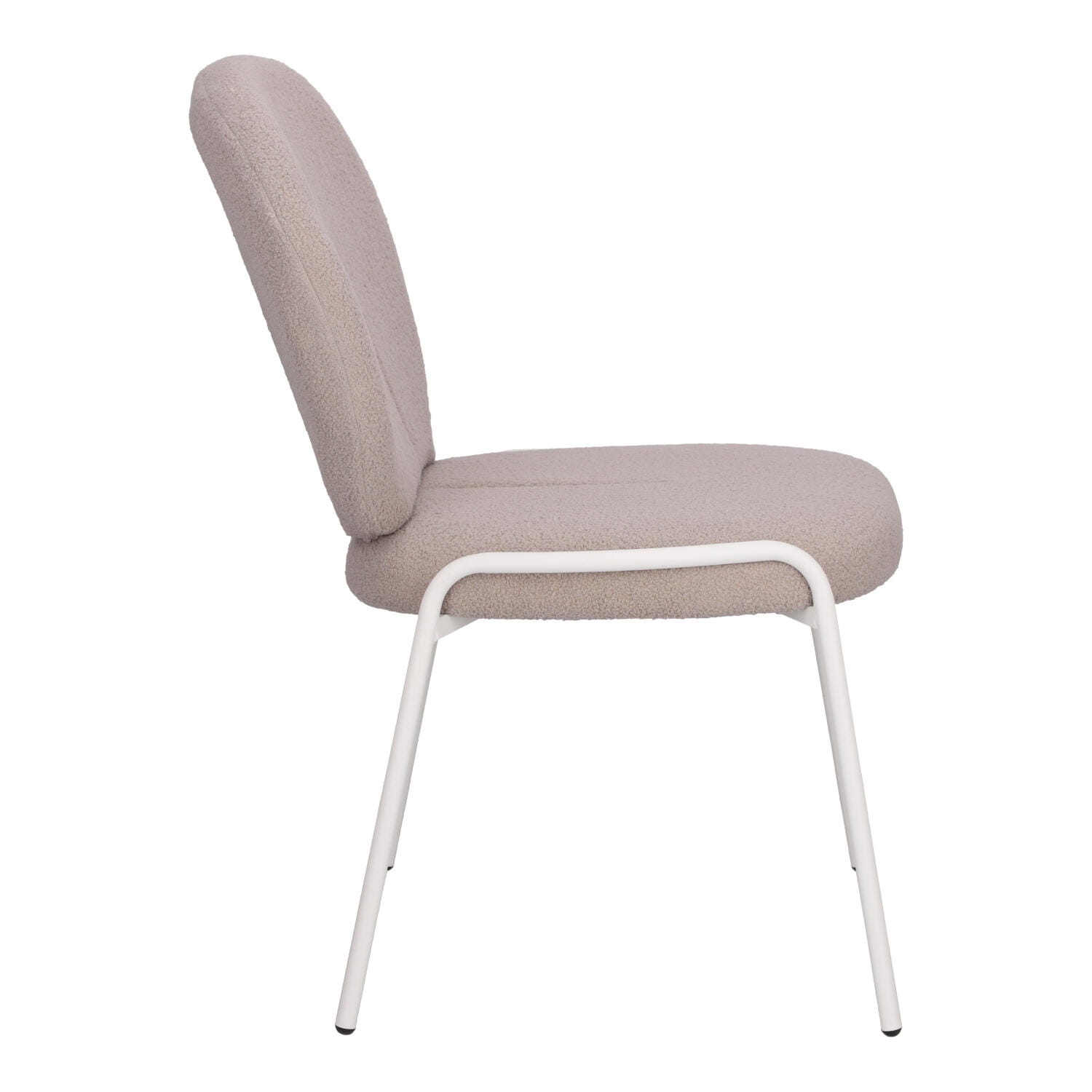 Stylowe krzesło Bianco to elegancki mebel, który wniesie do Twojego wnętrza ciepło i przytulny klimat. Cztery metalowe nogi malowane proszkowo na biało nadają mu lekkości, a tapicerka z miękkiej tkaniny boucle zapewnia komfort oraz modny, naturalny wygląd.