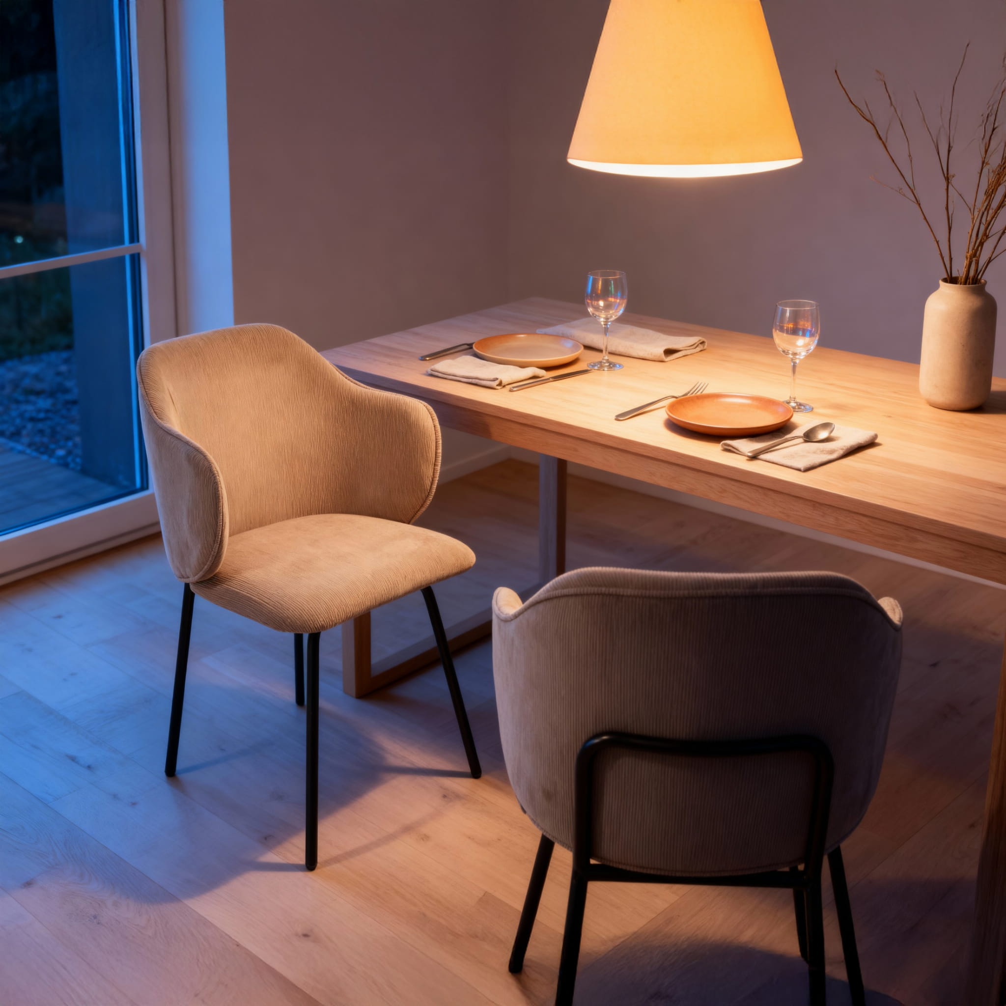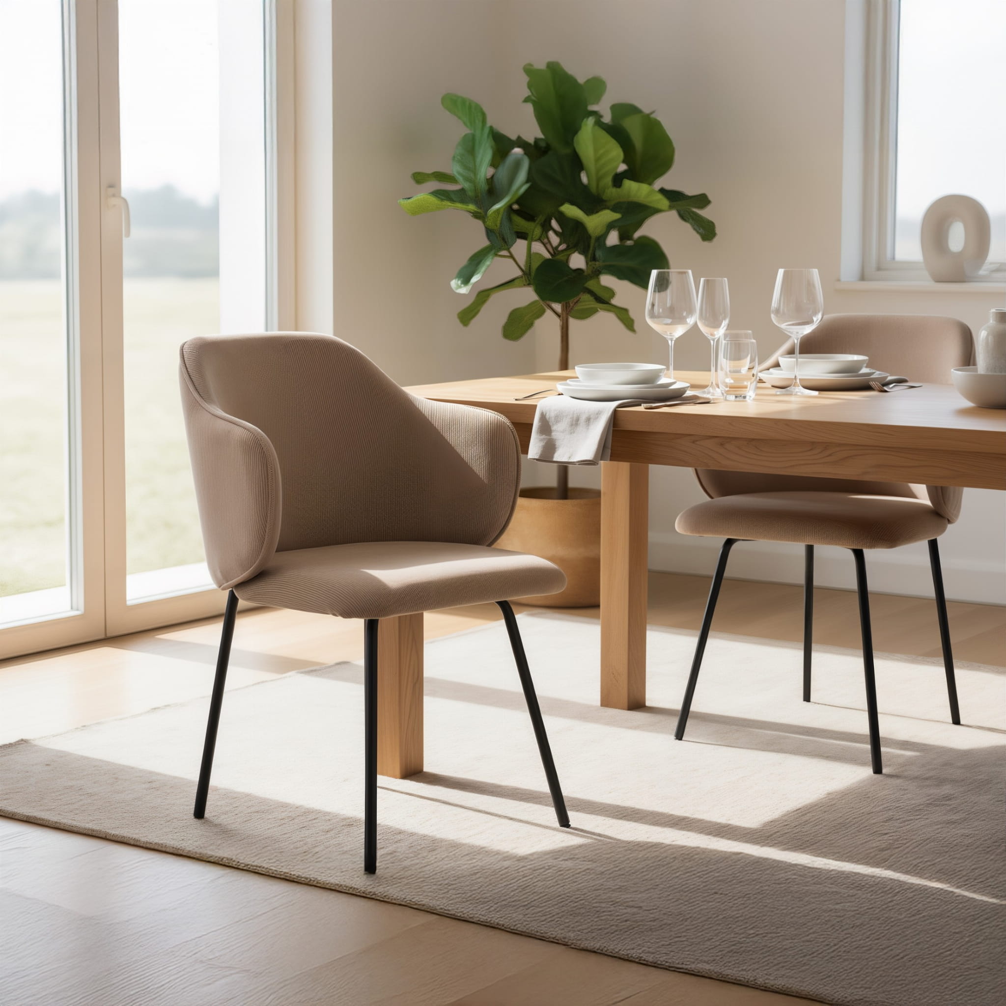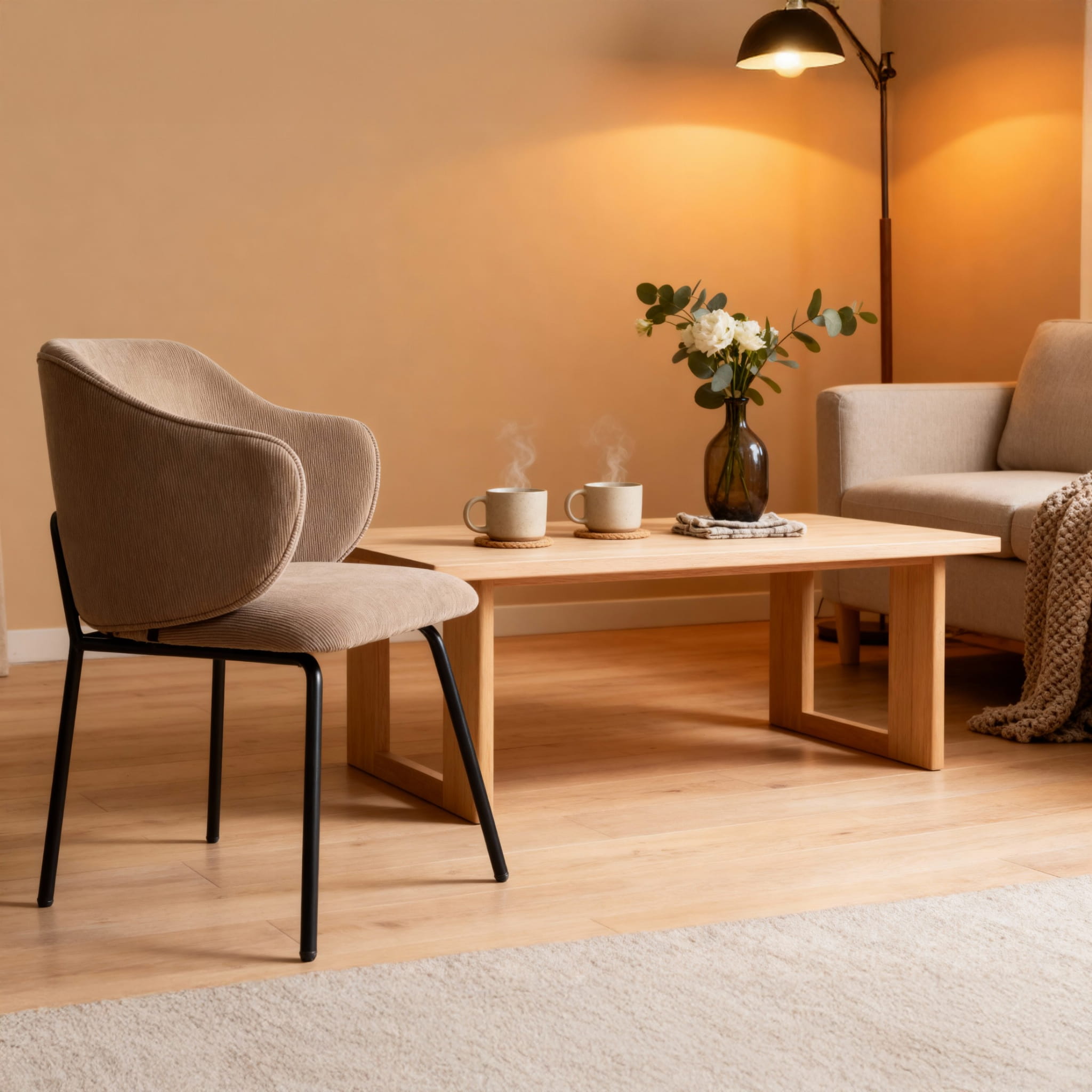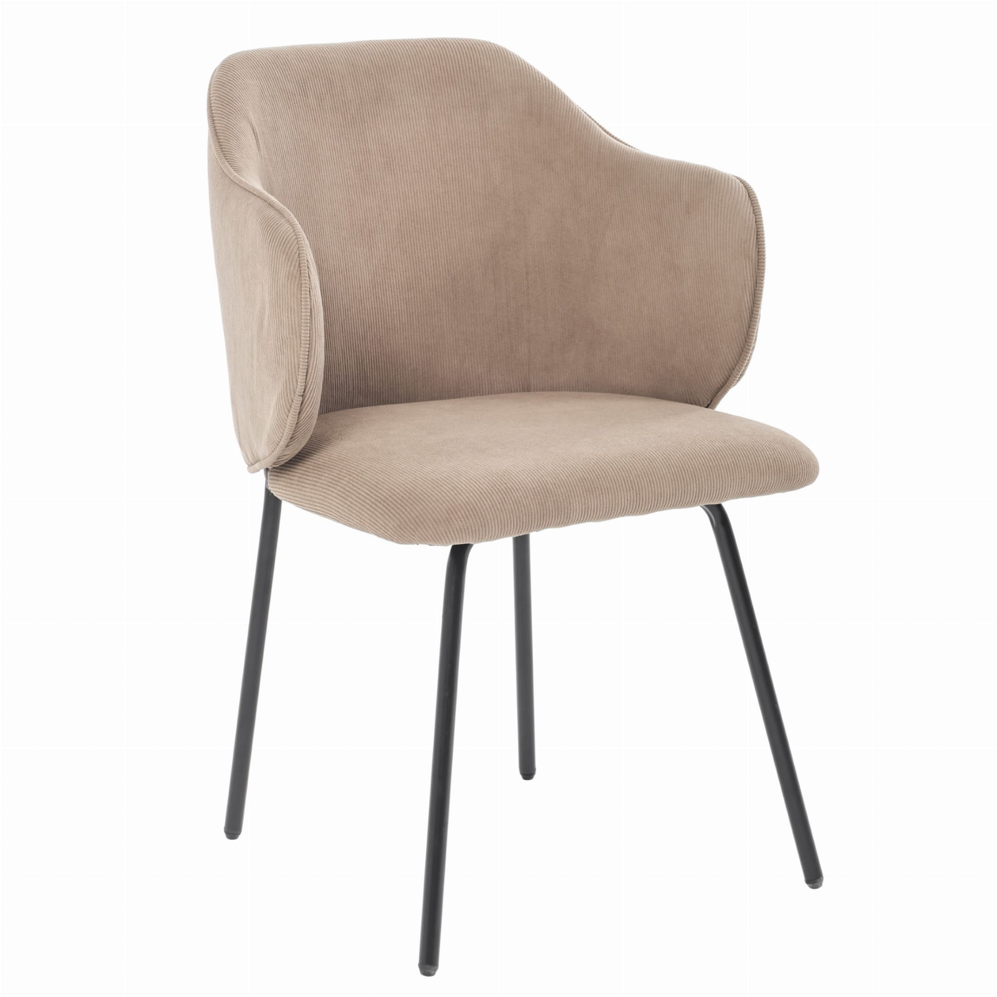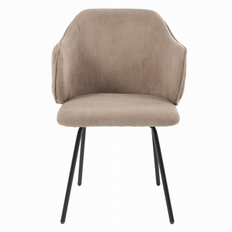To nie jest zwykły mebel, to prawdziwa ozdoba wnętrza, która przyciąga wzrok i nadaje przestrzeni charakteru. Miękka tapicerka o sztruksowej fakturze w modnym beżu sprawia, że każdy kontakt z tym krzesłem to czysta przyjemność. Zintegrowane podłokietniki i perfekcyjnie wyprofilowane oparcie gwarantują wygodę na najwyższym poziomie, a solidne metalowe nogi dodają mu lekkości i stabilności jednocześnie. Cechy produktu: Ergonomiczna konstrukcja - wyprofilowane oparcie i zintegrowane podłokietniki zapewniają wygodę nawet przy dłuższym siedzeniu. Tapicerka z miękkiego sztruksu - przyjemna w dotyku, trwała i łatwa w pielęgnacji. Stabilna podstawa - cztery metalowe nogi malowane proszkowo na czarno, lekko rozchylone dla lepszej stabilności. Uniwersalny styl - pasuje do wnętrz skandynawskich, loftowych, nowoczesnych. Kompaktowe wymiary - idealne do mniejszych przestrzeni bez kompromisu w kwestii komfortu.