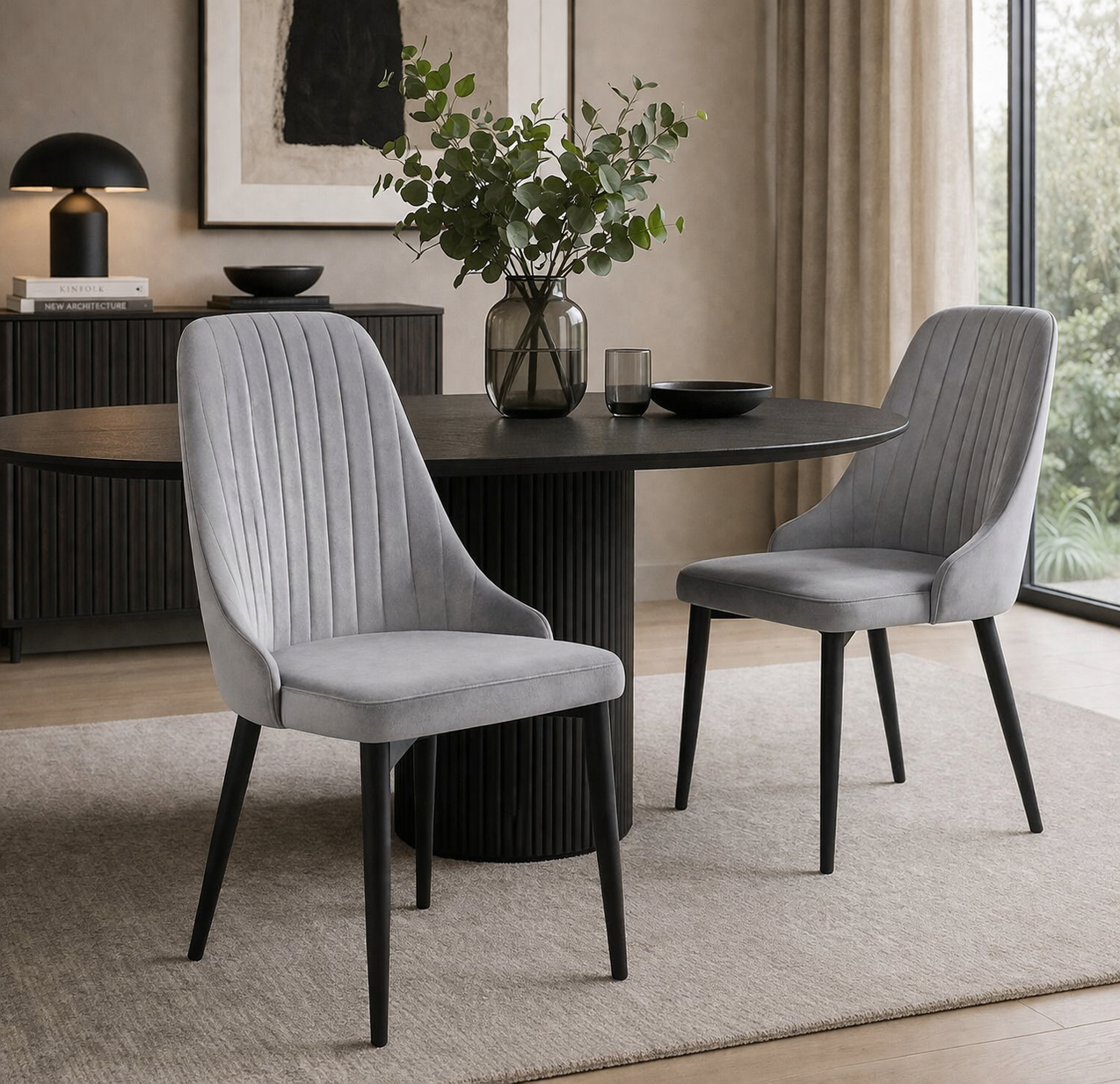 Krzesło tapicerowane River to stylowa propozycja do jadalni, salonu, kuchni oraz nowoczesnych przestrzeni komercyjnych. Subtelna forma, miękka welurowa tapicerka i smukłe czarne nogi tworzą ponadczasowe połączenie, które dobrze wpisuje się w aktualne trendy wnętrzarskie.