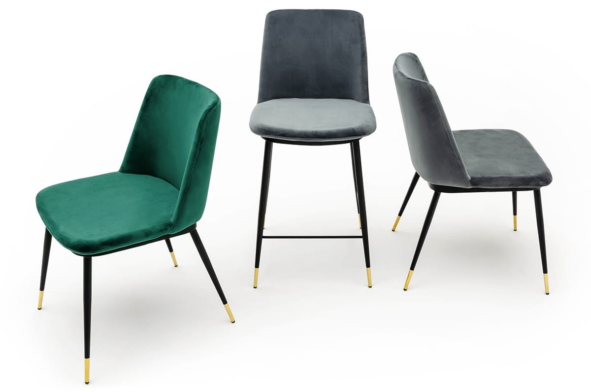 Krzesło welurowe, ciemne szare do jadalni, czarne nogi ze złotymi akcentami Diego